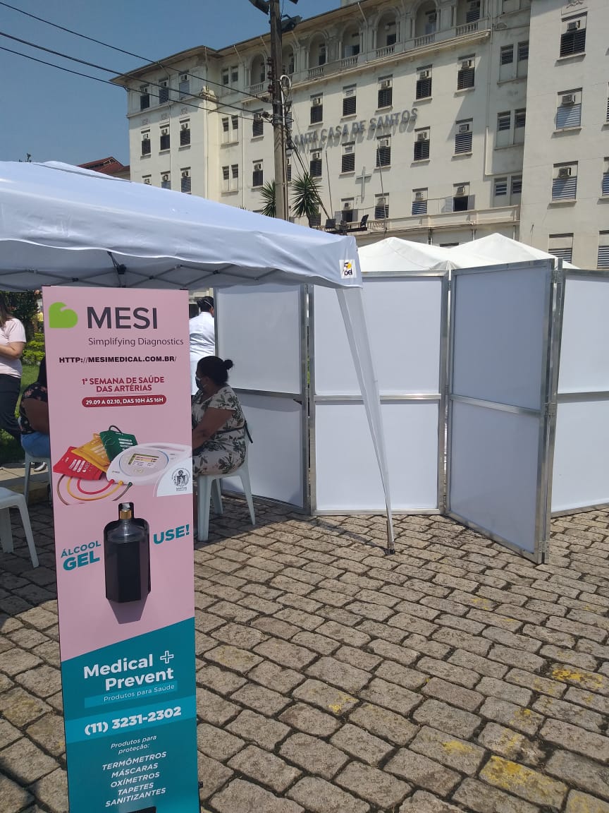 Esta foi a primeira vez que este tema foi abordado em uma campanha no país. Em parceria com a MESI Medical, a Santa Casa de Santos trouxe um equipamento da Eslovênia, inédito no Brasil, e o único que detecta bloqueio de artérias em apenas 1 minuto. Em ação organizada pelo hospital, a população teve a oportunidade de realizar o exame, que consiste na medição do índice tornozelo-braquial, e os resultados foram entregues na hora. Todos que tiveram alguma alteração também receberam orientações da equipe de Cirurgia Vascular da Santa Casa de Santos. Tudo gratuito!