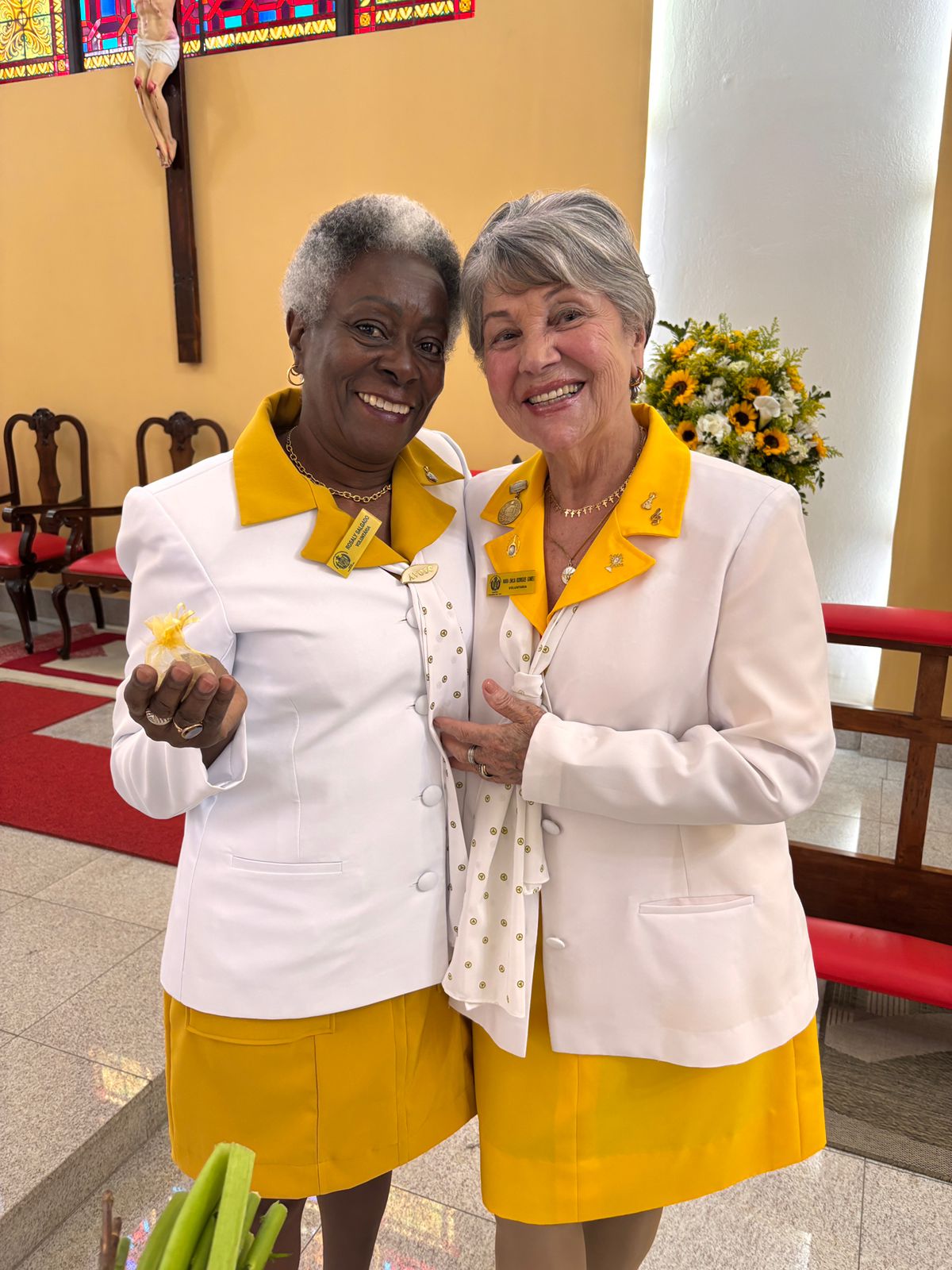 Após a cerimônia, a presidente da AVOSC, Aparecida Regina Ramos Santos, ao lado da voluntária Maria Emília, realizou a entrega das tradicionais estrelas de horas trabalhadas e das homenagens aos voluntários, em reconhecimento à dedicação e ao compromisso de cada um com a causa.