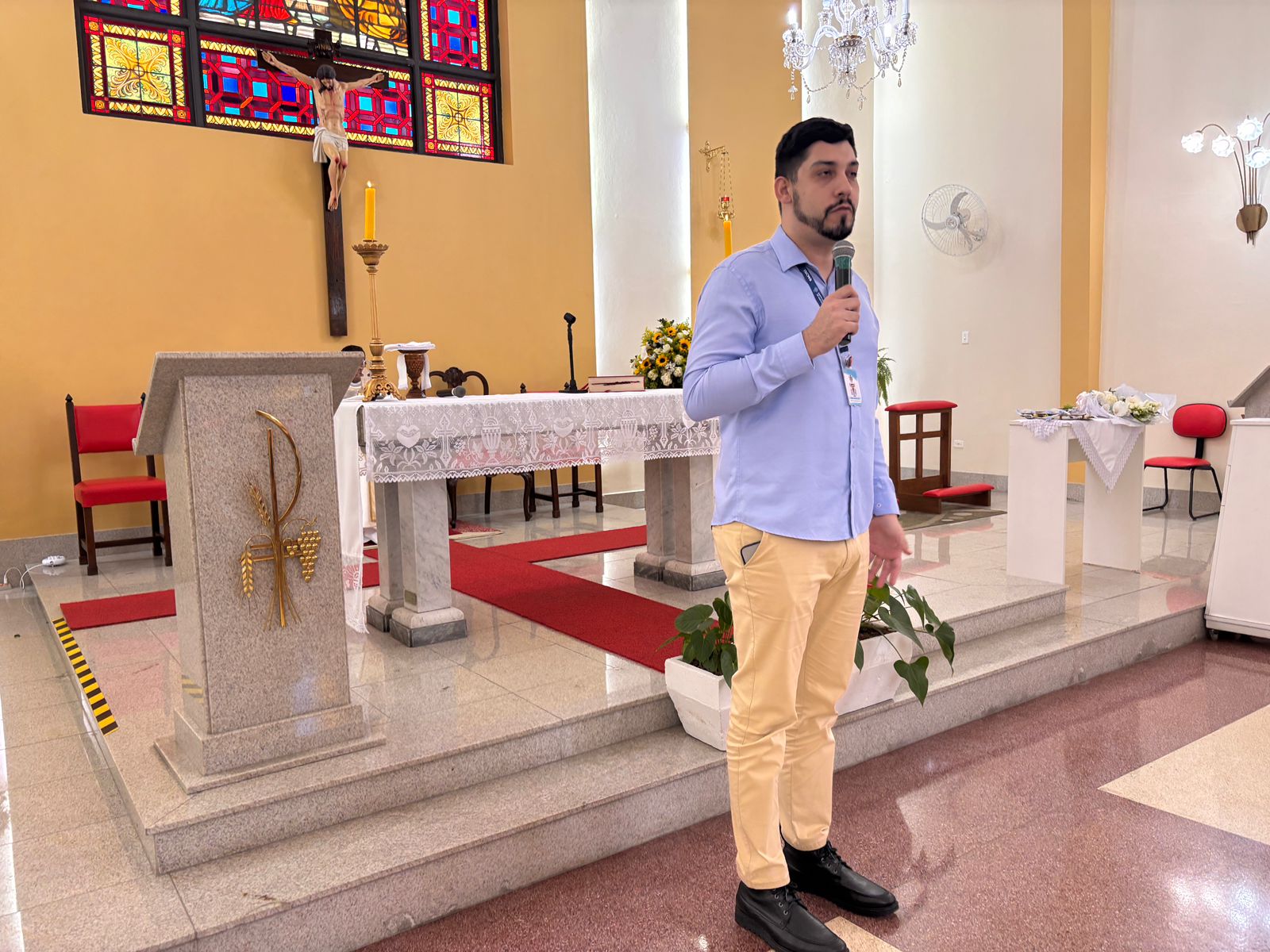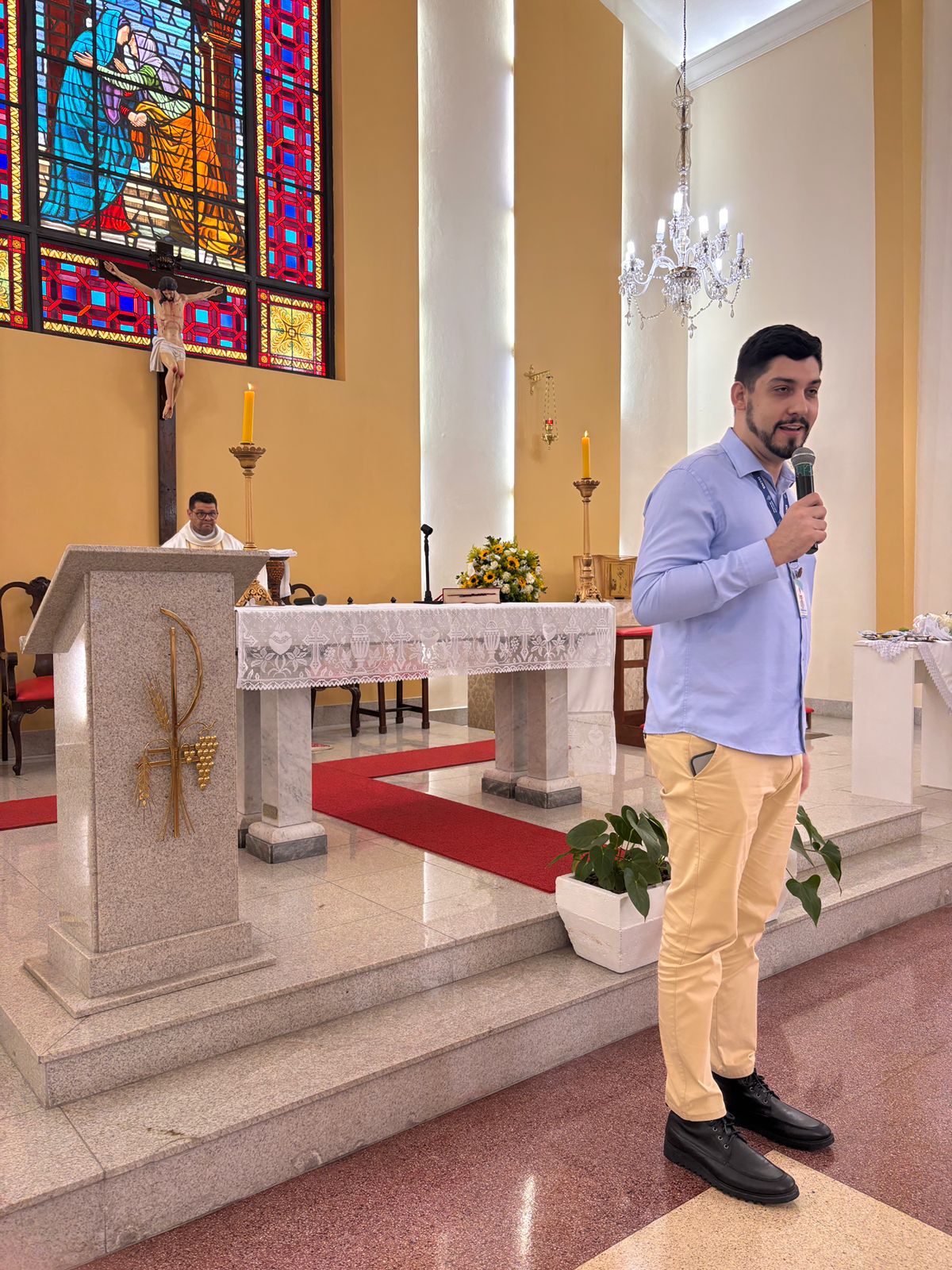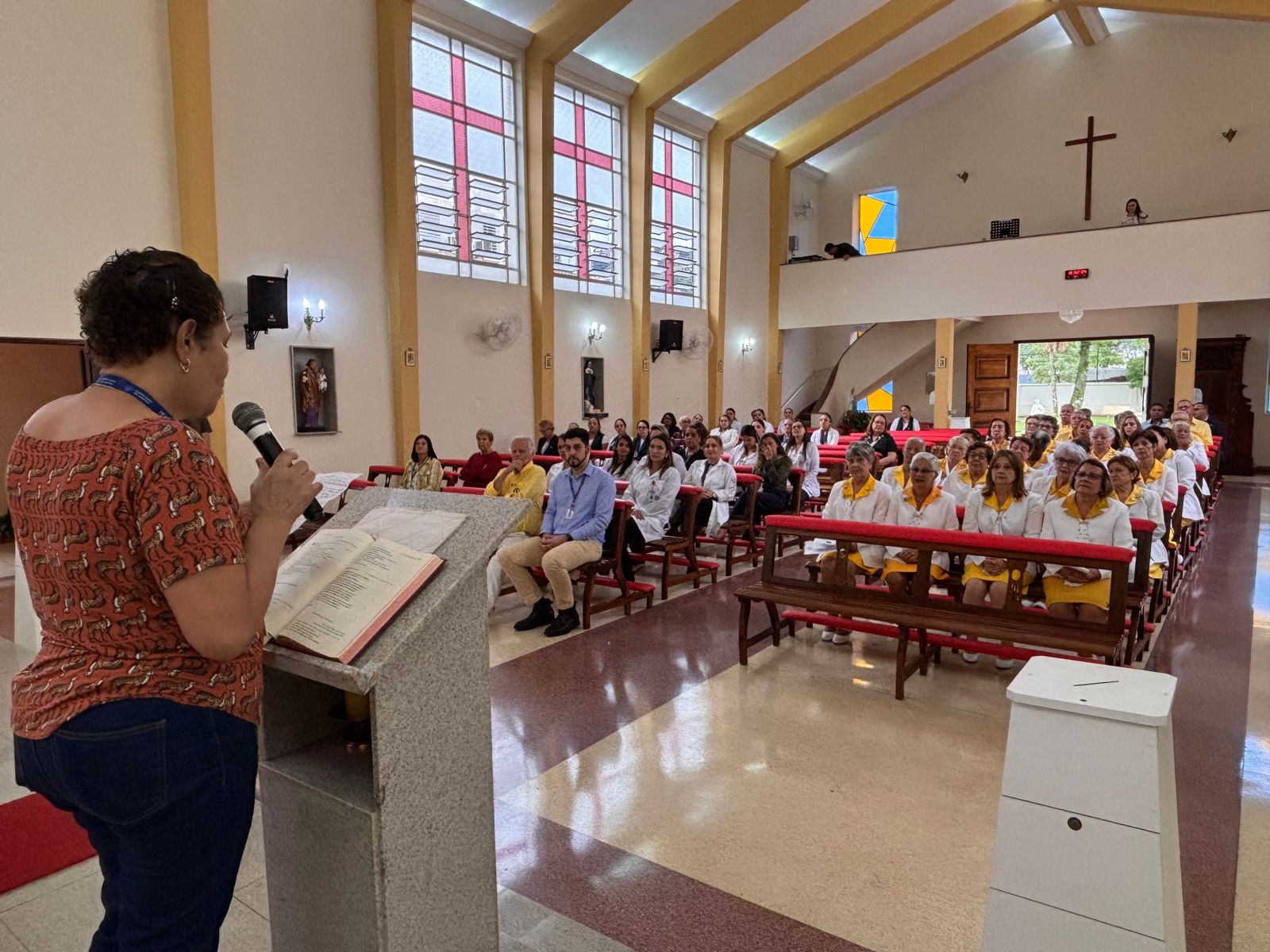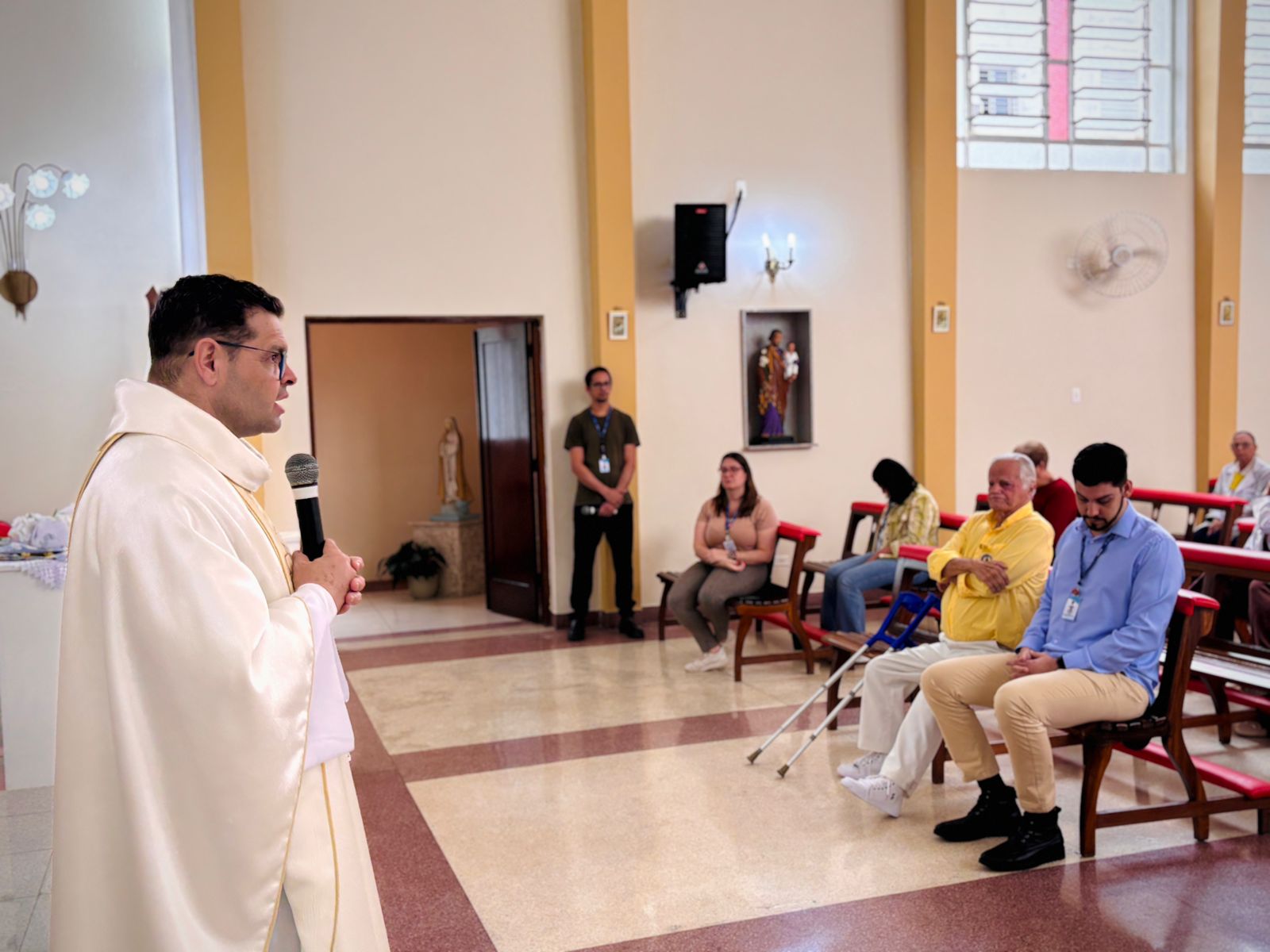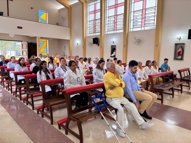 Durante a homilia, Padre Denilson ressaltou o papel essencial dos voluntários no acolhimento aos pacientes e familiares. “Os ‘Amarelinhos’ são parte da história da Santa Casa. Eles estão presentes nos momentos de dor e sofrimento, oferecendo uma palavra amiga ou até mesmo um abraço”, destacou.