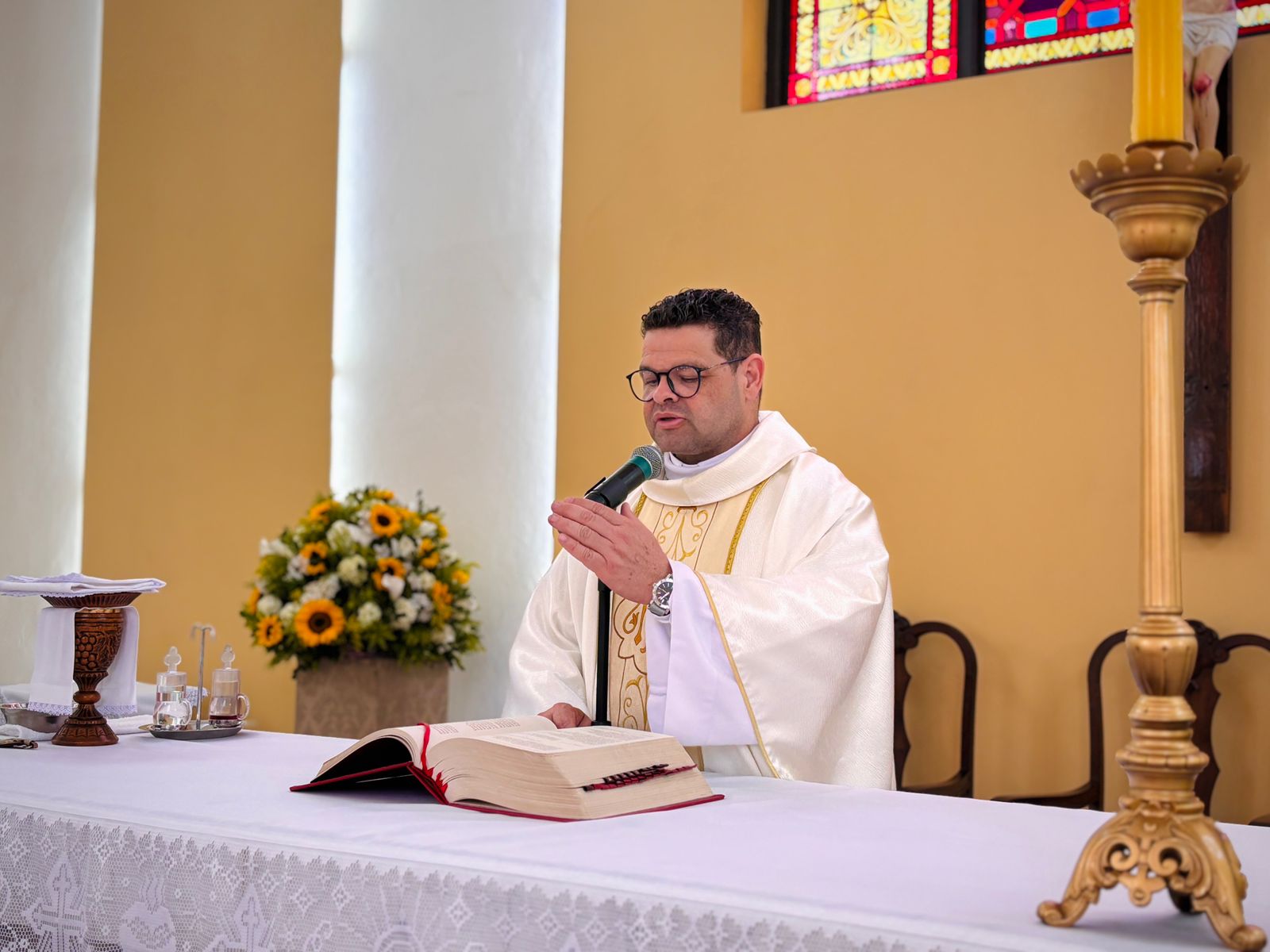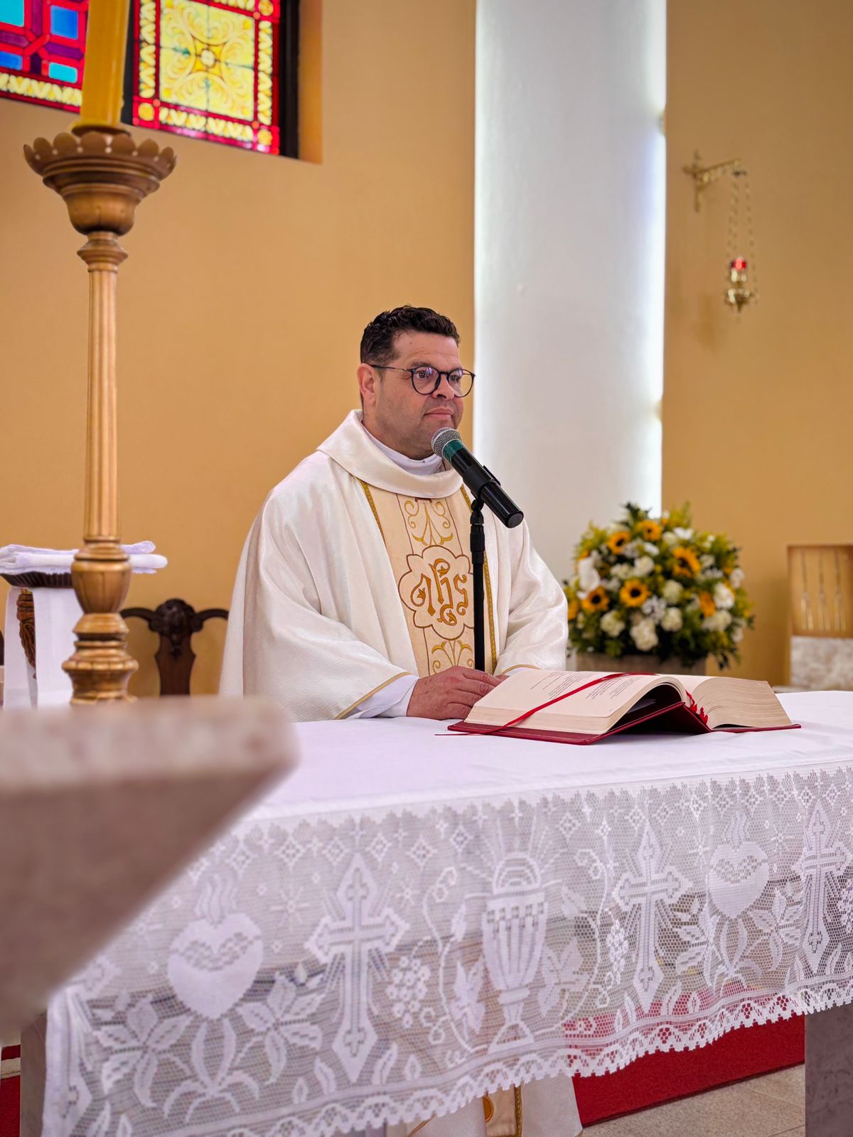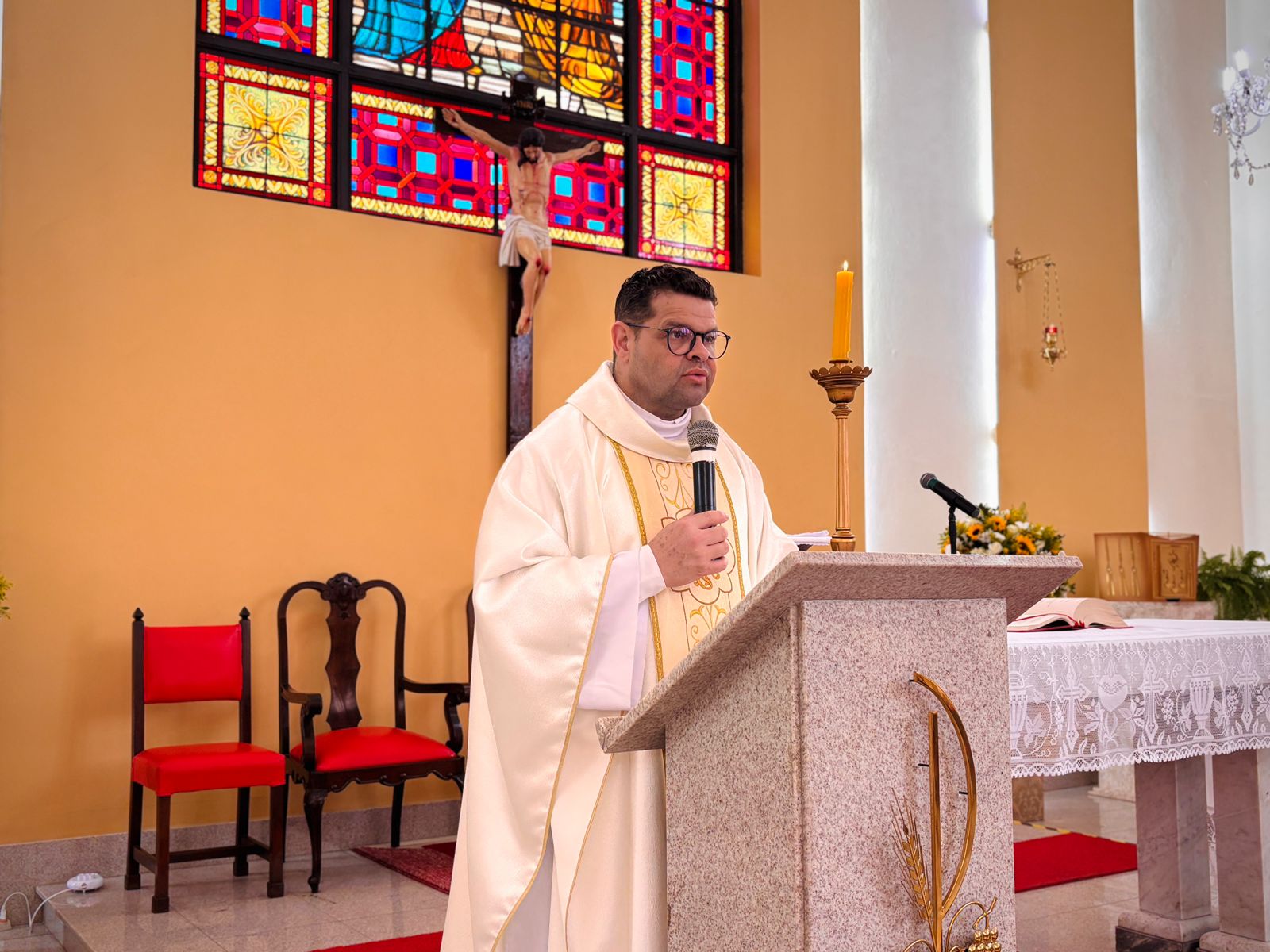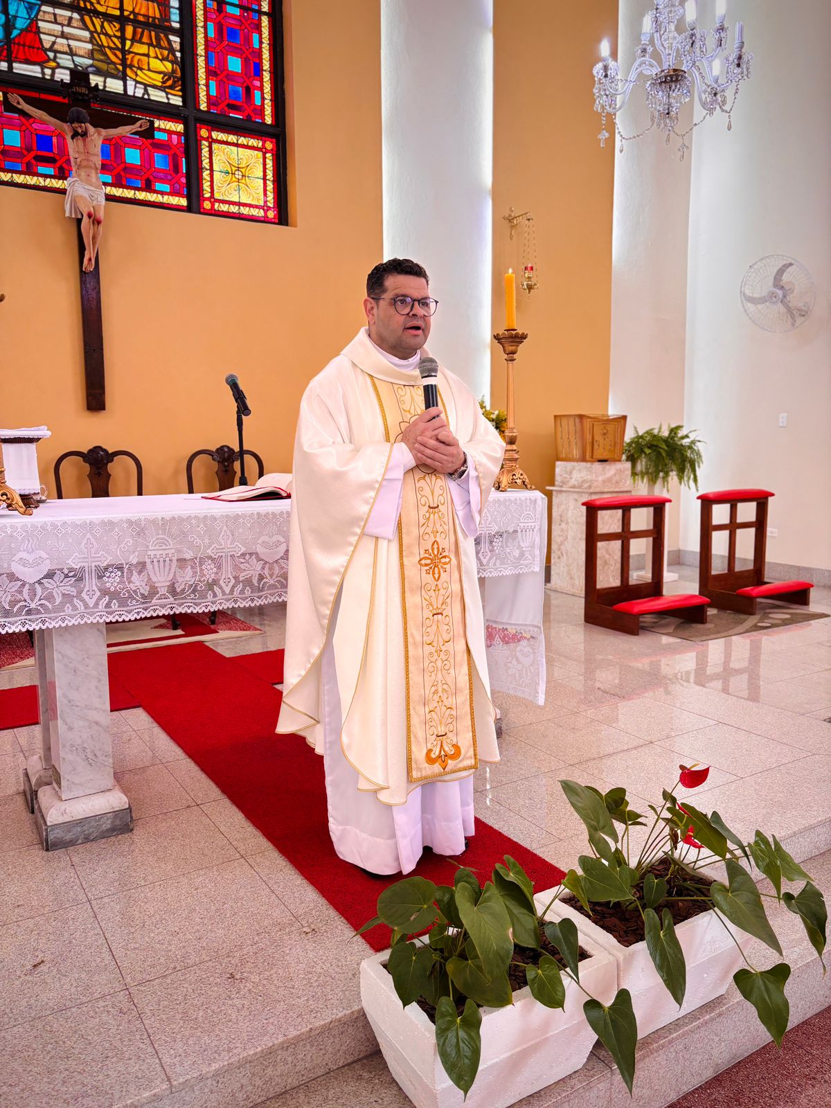 Durante a homilia, Padre Denilson ressaltou o papel essencial dos voluntários no acolhimento aos pacientes e familiares. “Os ‘Amarelinhos’ são parte da história da Santa Casa. Eles estão presentes nos momentos de dor e sofrimento, oferecendo uma palavra amiga ou até mesmo um abraço”, destacou.