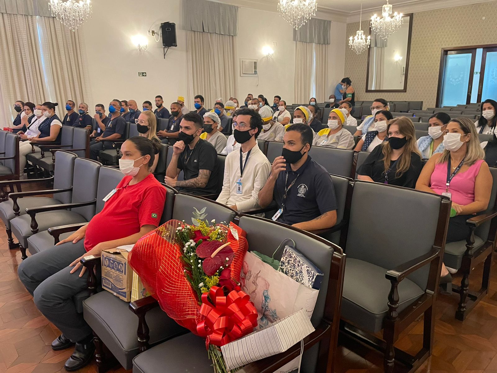 Para encerrar a palestra, Flávio fez uma homenagem aos profissionais de enfermagem e da limpeza, para que recebessem uma salva de palmas pela atuação na pandemia.