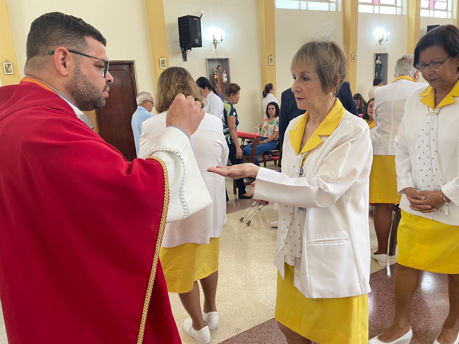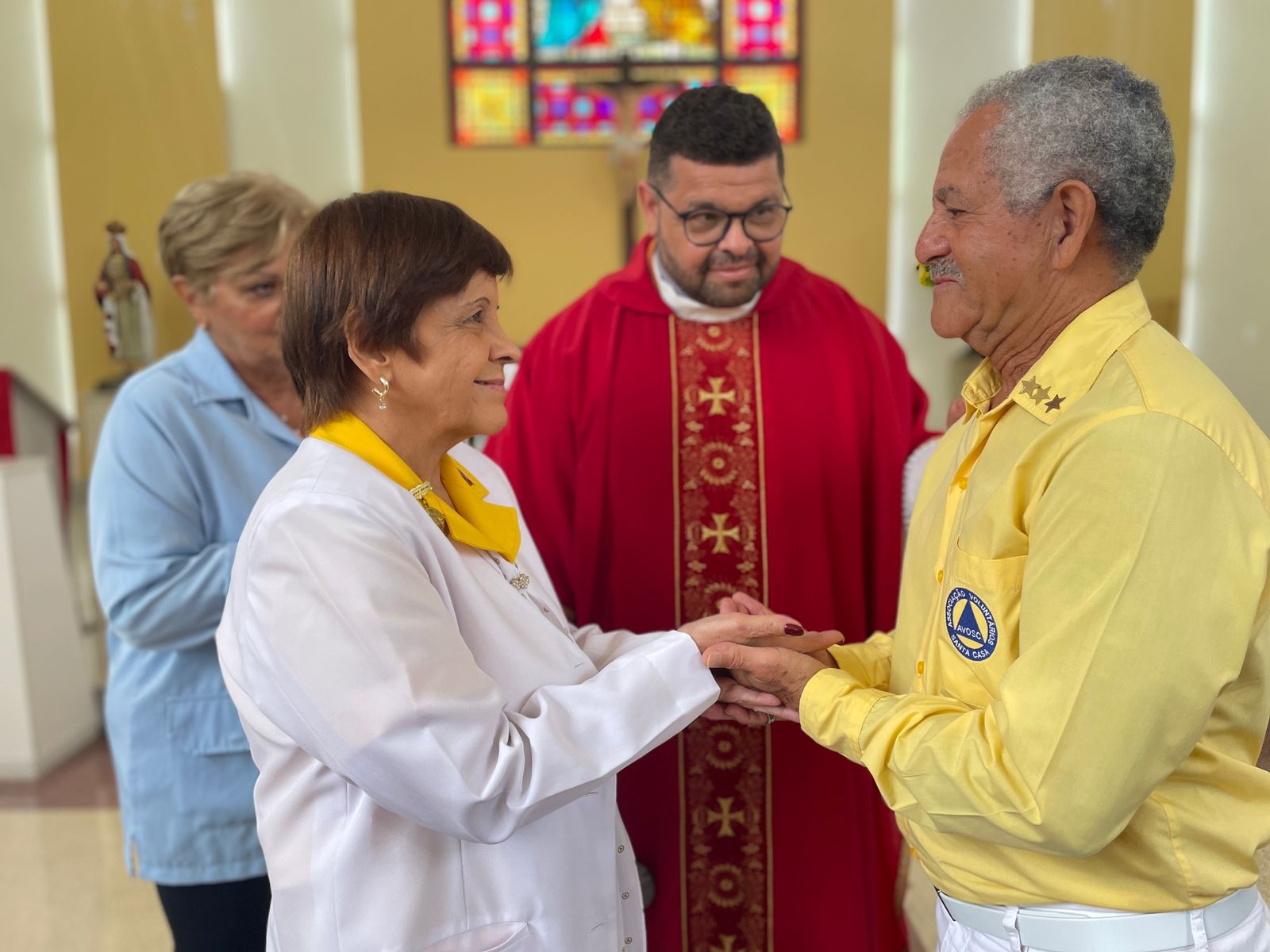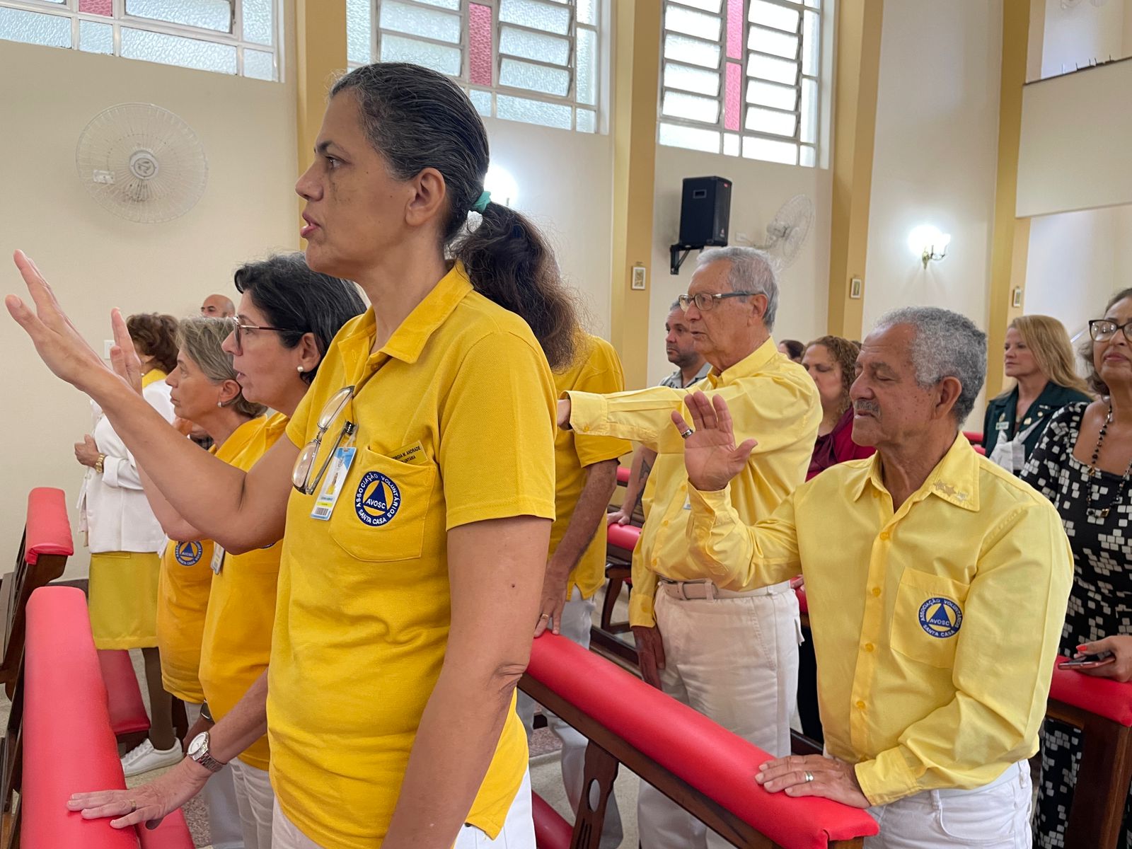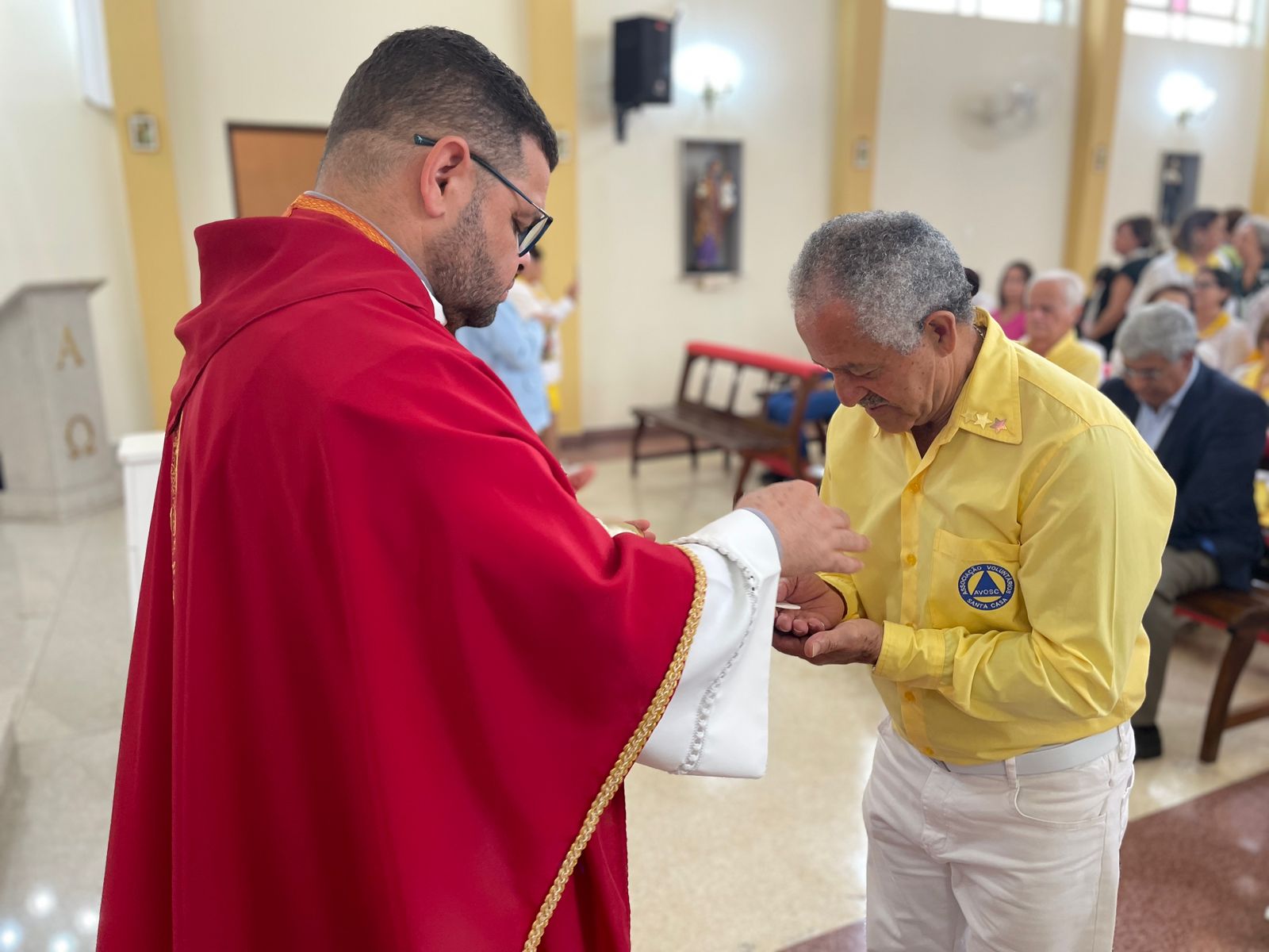 Em uma celebração primorosa, o Padre Denilson destacou a importância da atuação dos “amarelinhos” no amparo aos enfermos e assistência prestada ao hospital de modo geral. “Os amarelinhos são parte da história da Santa Casa”, sintetizou.
