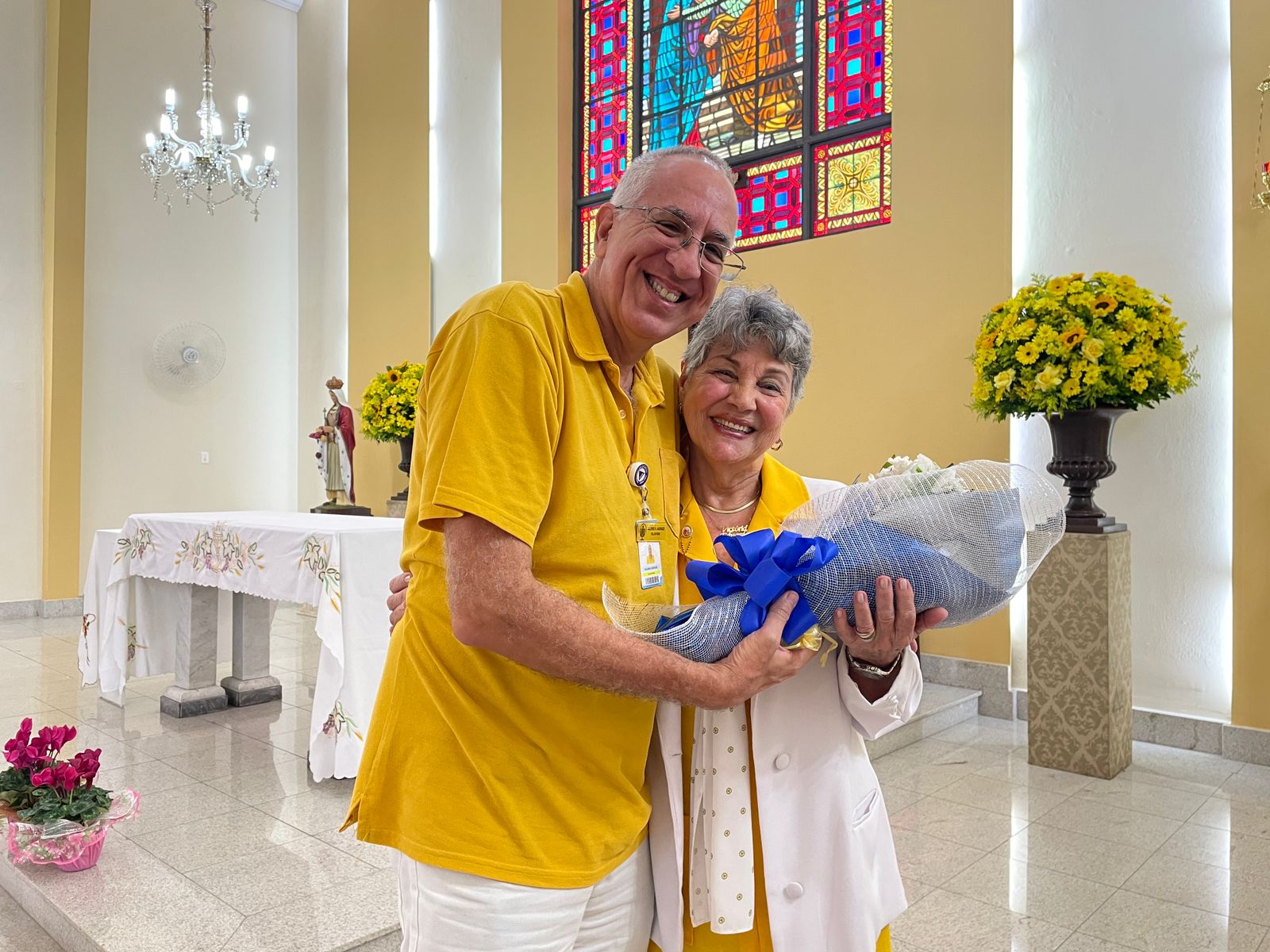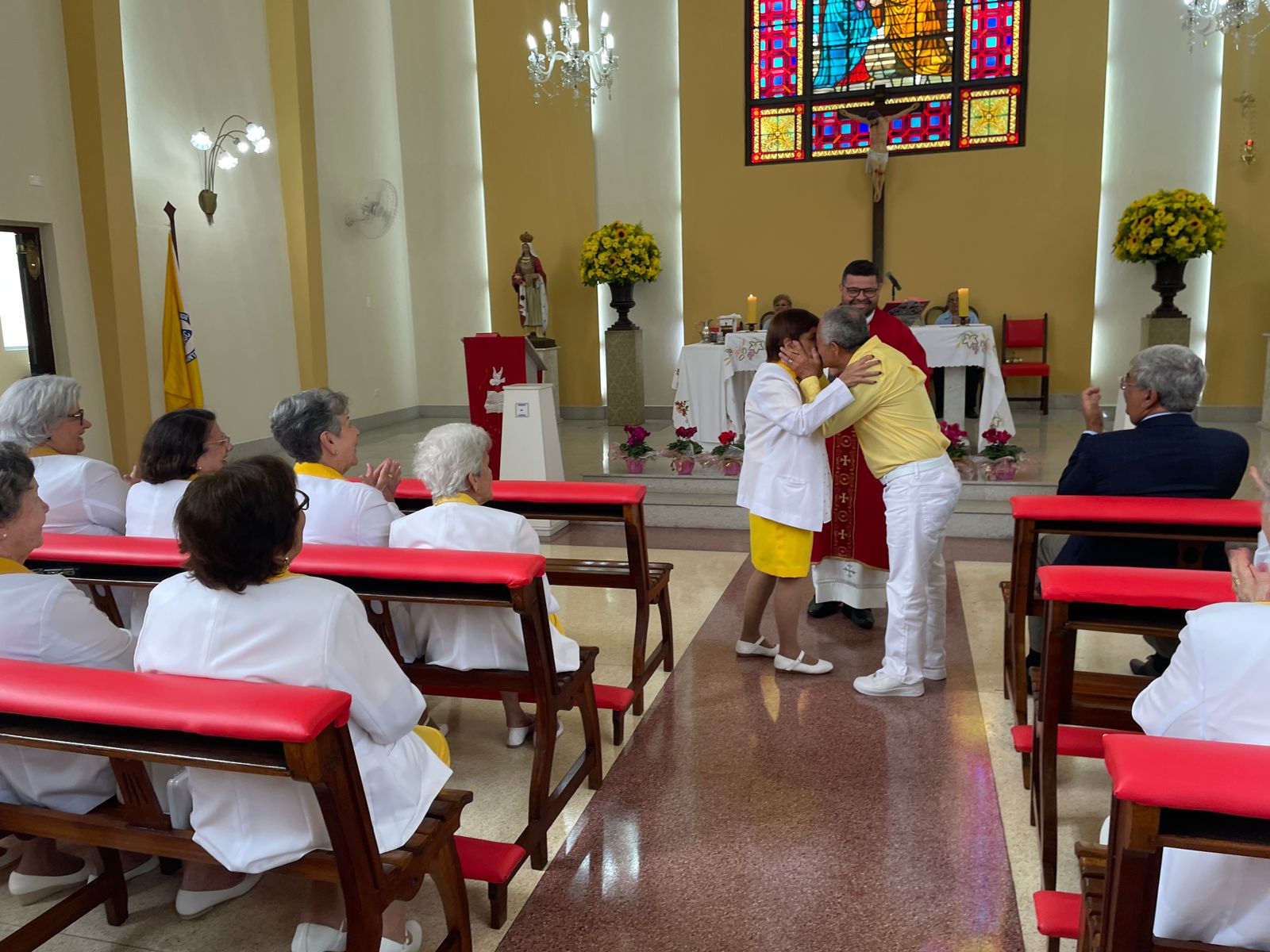 Na missa também foi celebrada as bodas de ouro do casal de voluntários, Hedi e Raimundo, com uma cerimônia que emocionou todos os presentes.