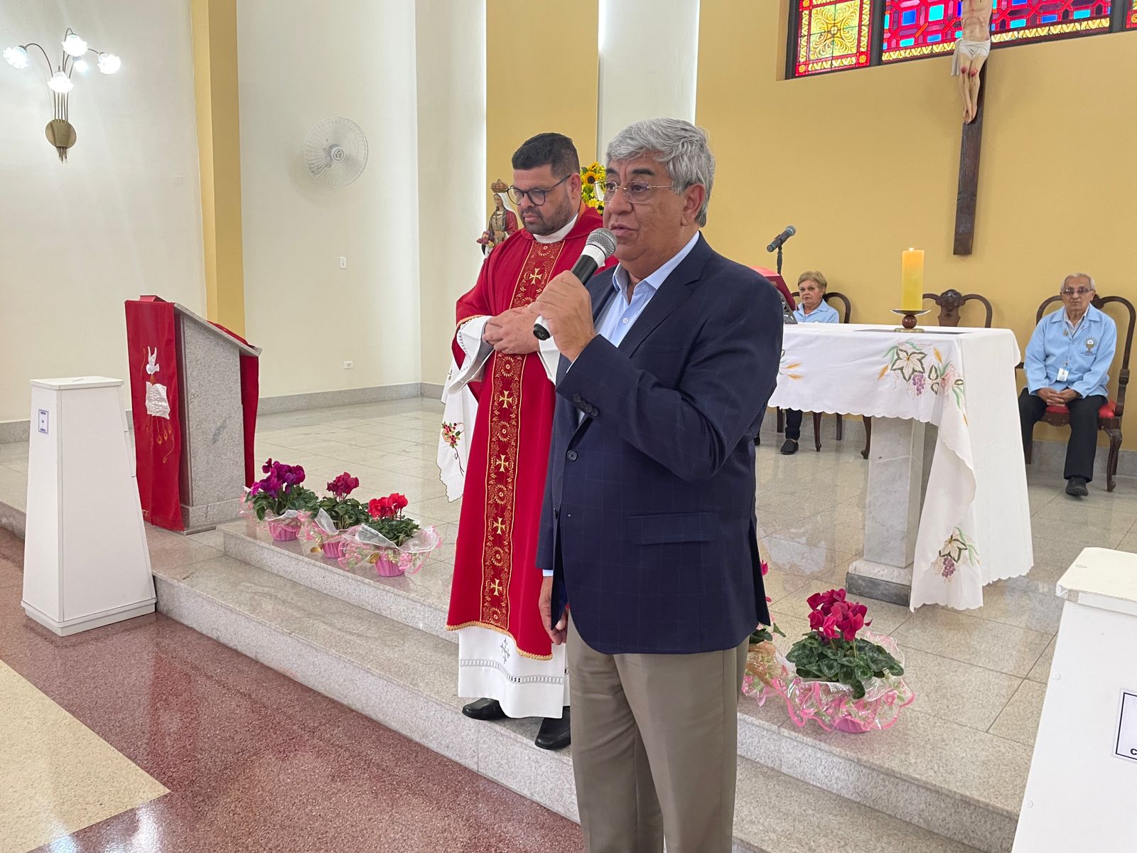 A missa foi celebrada pelo Padre Denilson, do Santuário do Valongo. O vice provedor Carlos Teixeira Filho, representando o provedor Ariovaldo Feliciano marcou presença e fez a primeira leitura.