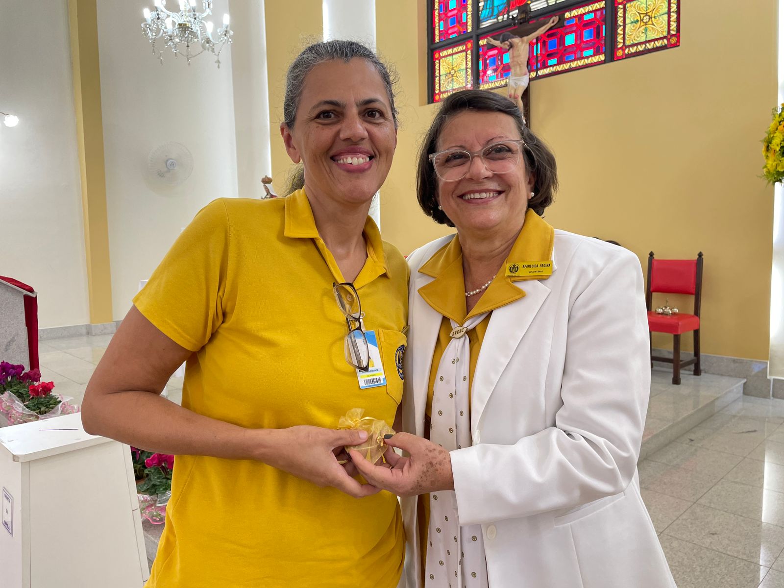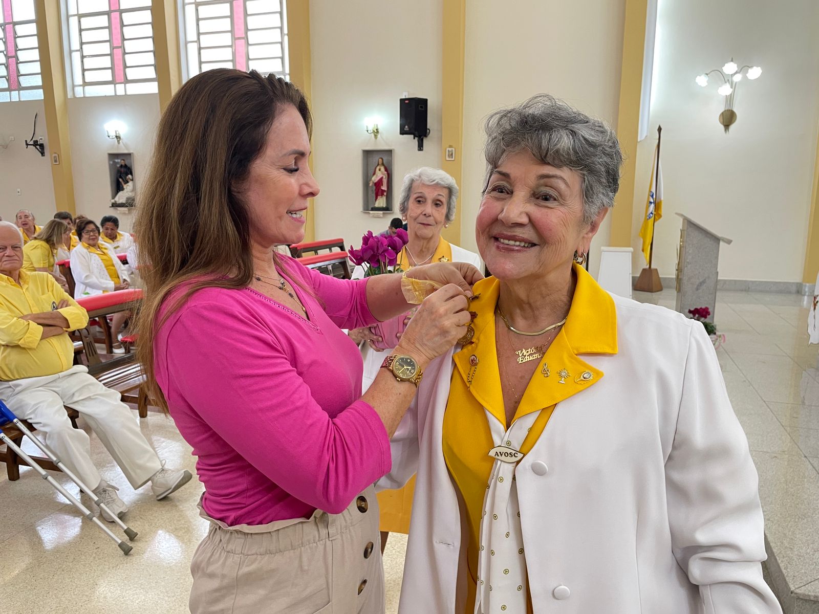 Após a cerimônia, a presidente da AVOSC, Srª Nanci Fernandes Loureiro, e a vice-presidente, Srª Aparecida Regina Ramos Santos, entregaram as estrelas de horas trabalhadas e homenagens aos voluntários (lista com os nomes estão abaixo).