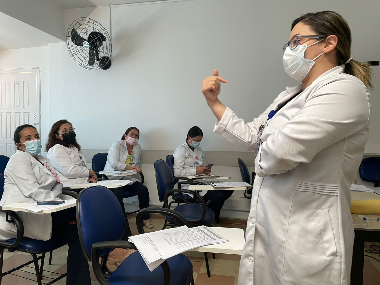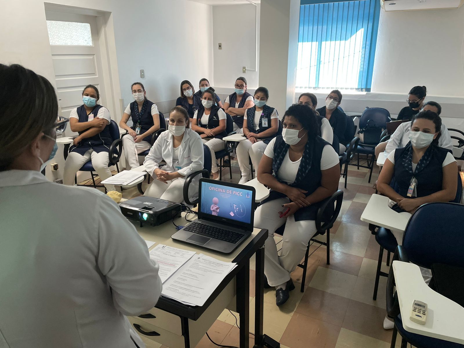 Profissionais participam de curso de capacitação para passagem de Cateter Central de Inserção Periférica - PICC