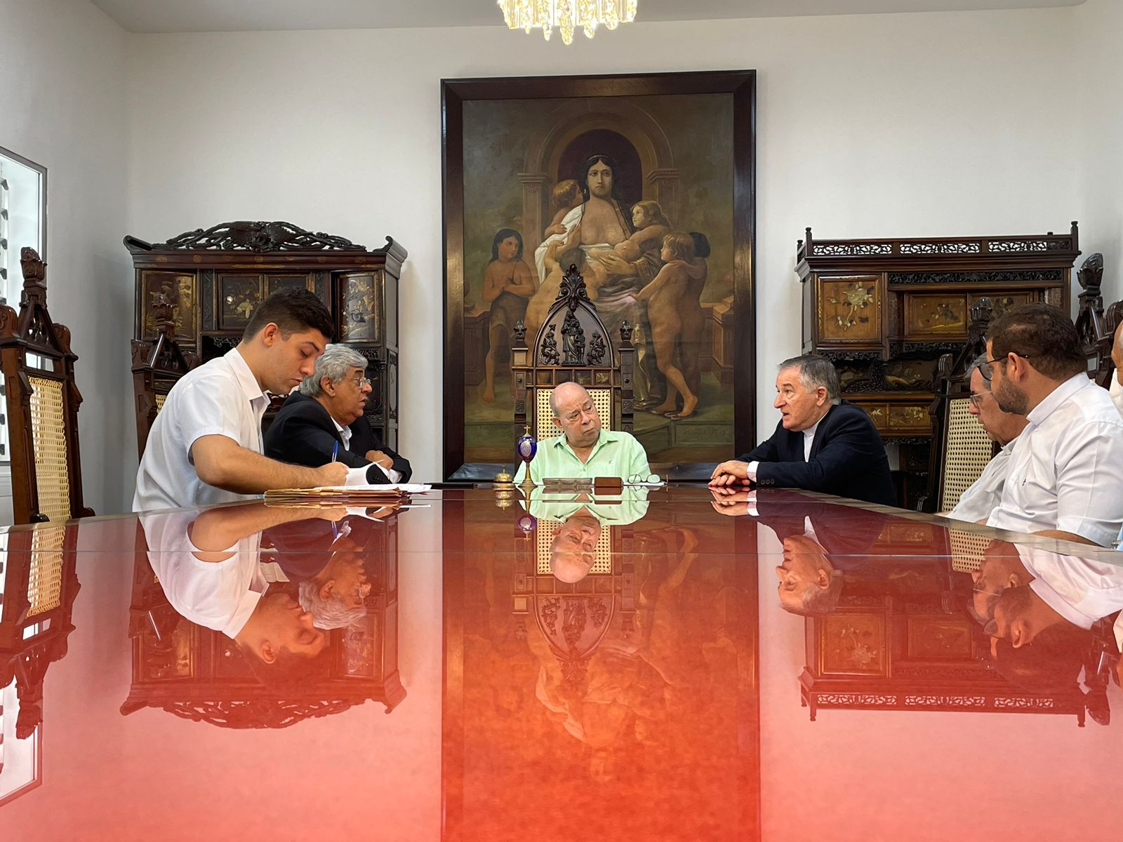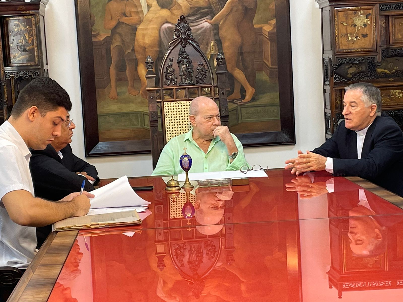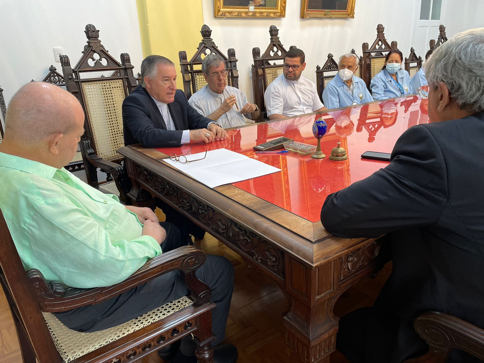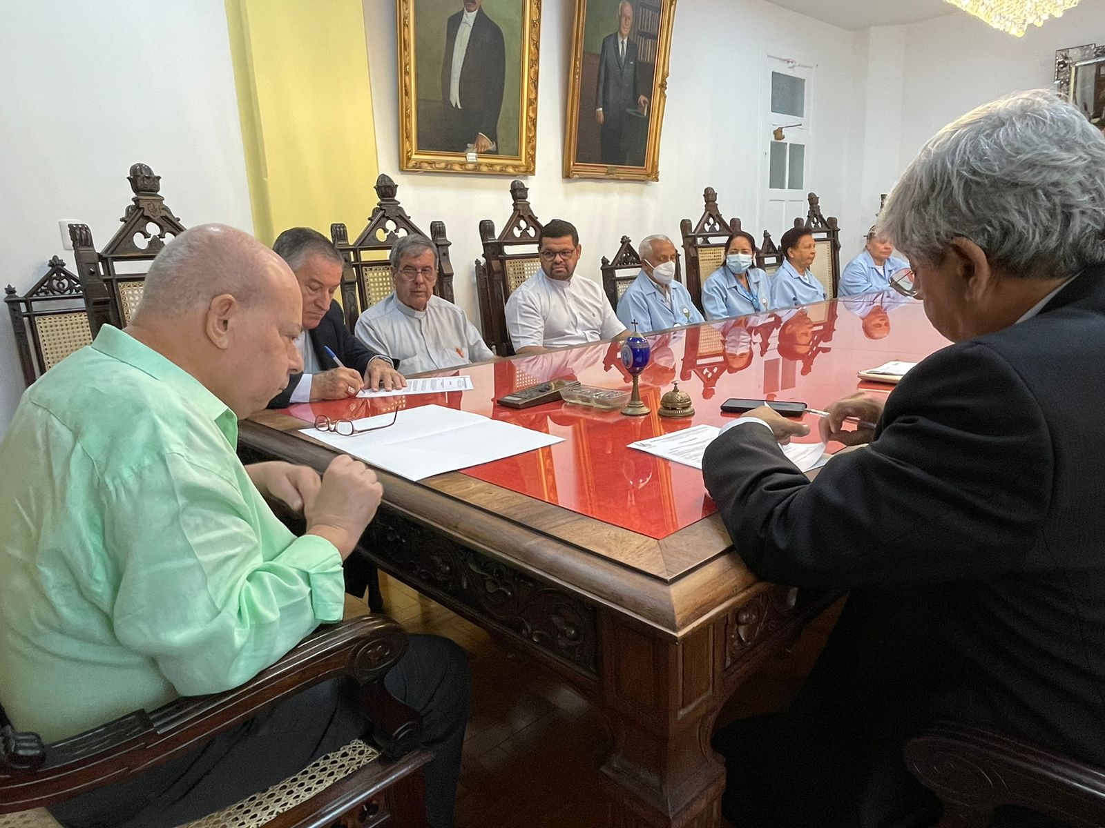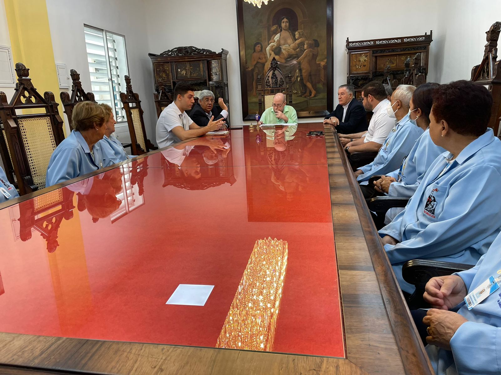 Também participaram da reunião: o vice provedor, Carlos Teixeira Filho, o Frei Denilson, do Santuário de Santo Antônio do Valongo, o capelão Padre Oscar Vasconcelos de Souza Filho, a coordenadora diocesana Dirce José de Lima Souza, o gerente de Obras e assessor da provedoria, Bruno Dantas, e o grupo de voluntários da Pastoral da Saúde.