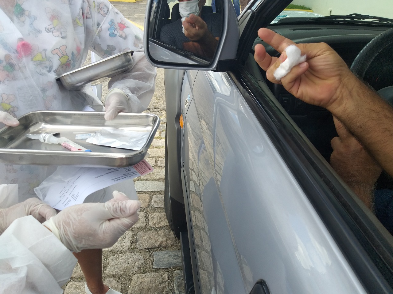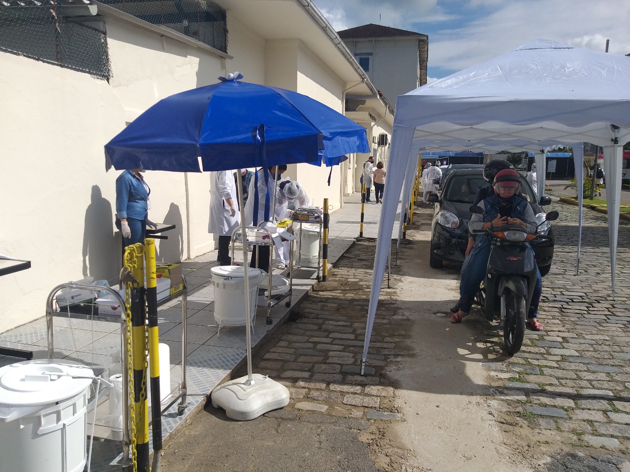 A fila de veículos para o drive thru da Santa Casa de Santos já era grande às 8h da manhã desta sexta, dia 6/11. Professores e profissionais da educação compareceram ao hospital para aproveitar a oportunidade de realizar os testes rápidos para Covid-19 gratuitamente. Os resultados, com laudo, serão disponibilizados pela internet. Ao todo, foram realizados 600 testes rápidos para Covid-19.