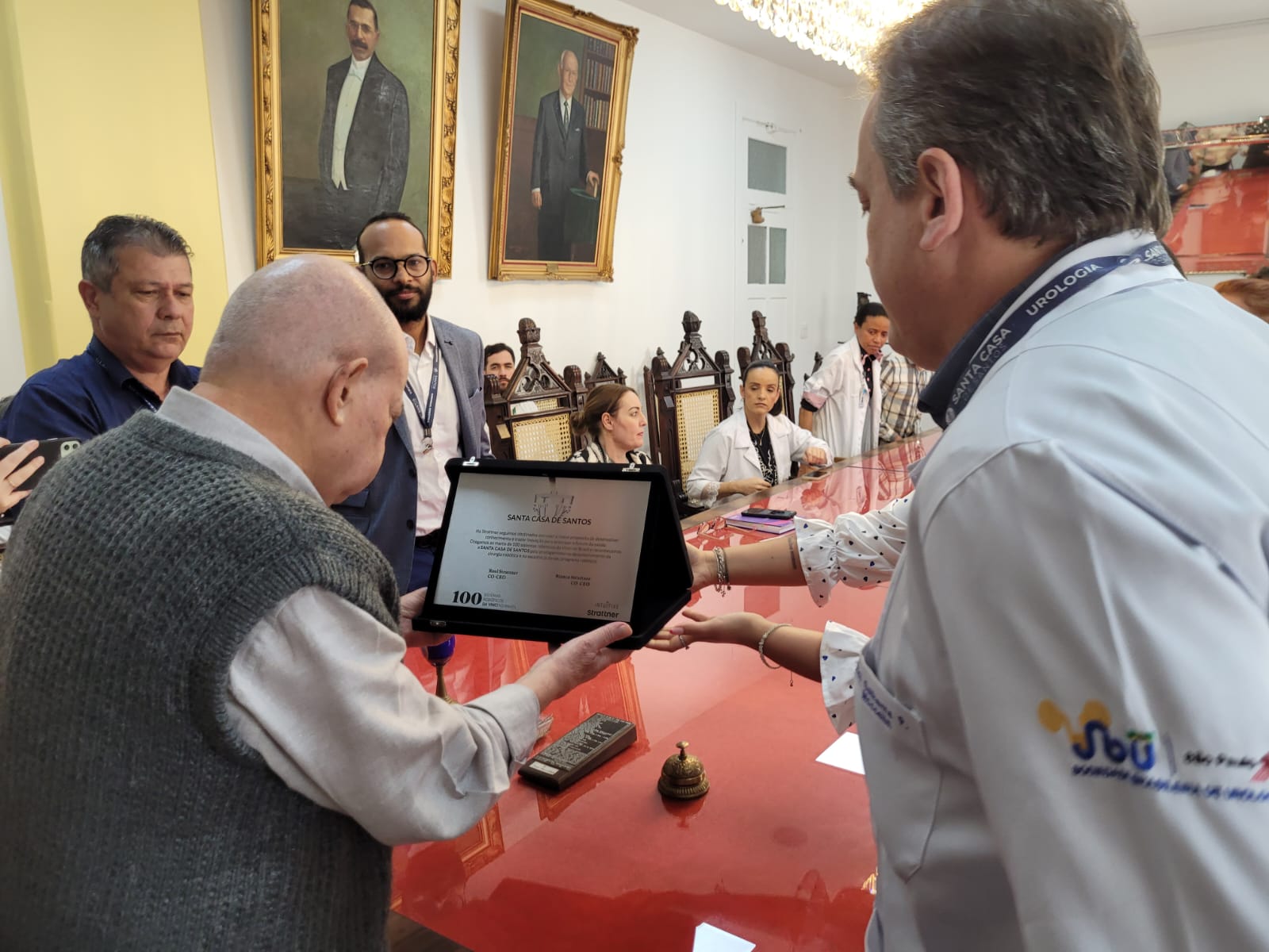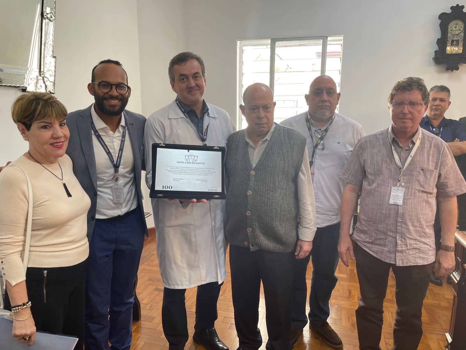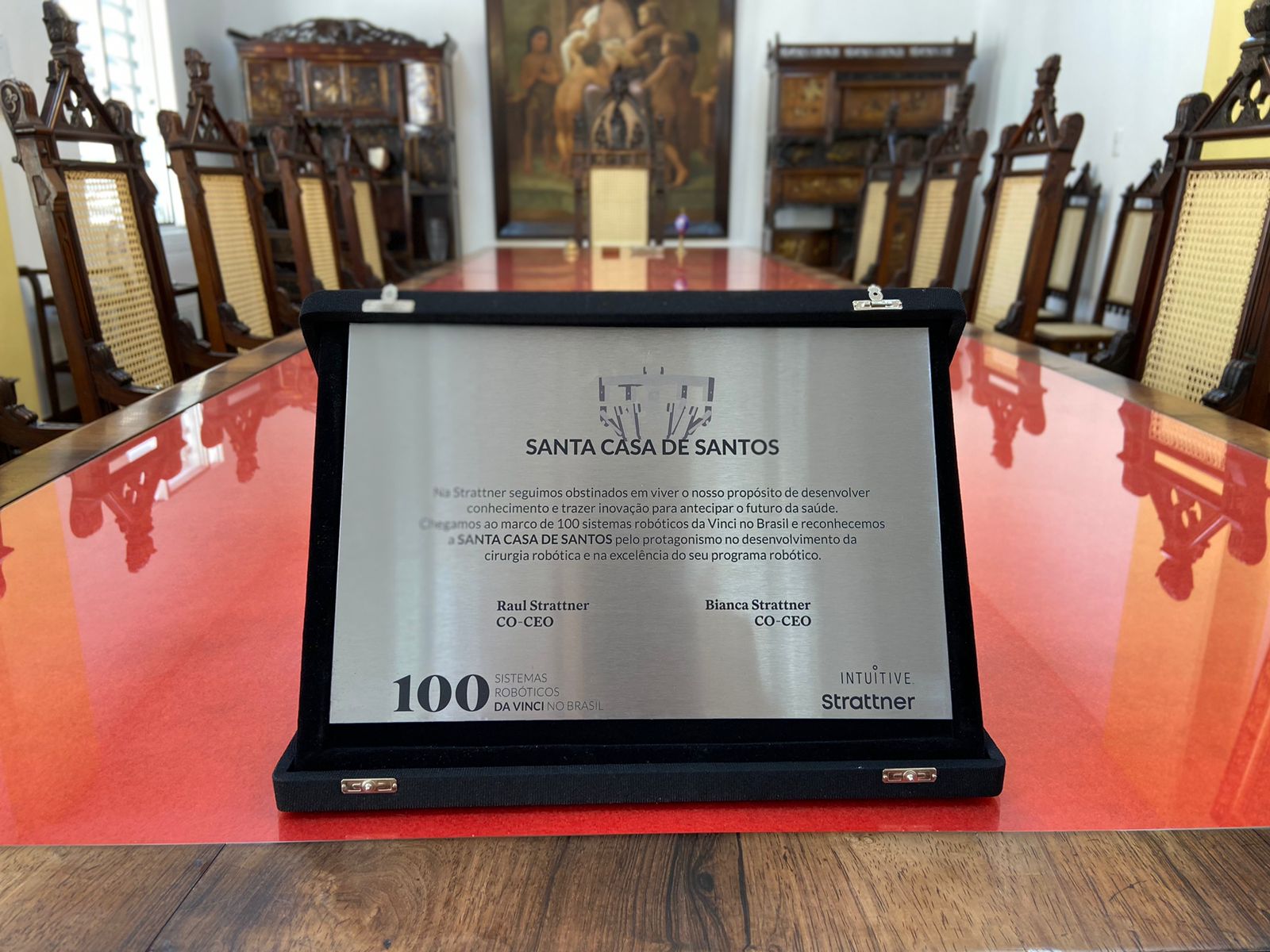 A empresa Intuitive Strattner, líder no segmento de robótica assistida, fez a entrega de uma placa de homenagem à Santa Casa de Santos, como forma de reconhecimento pelo protagonismo da instituição no desenvolvimento da cirurgia robótica e na excelência do programa robótico.