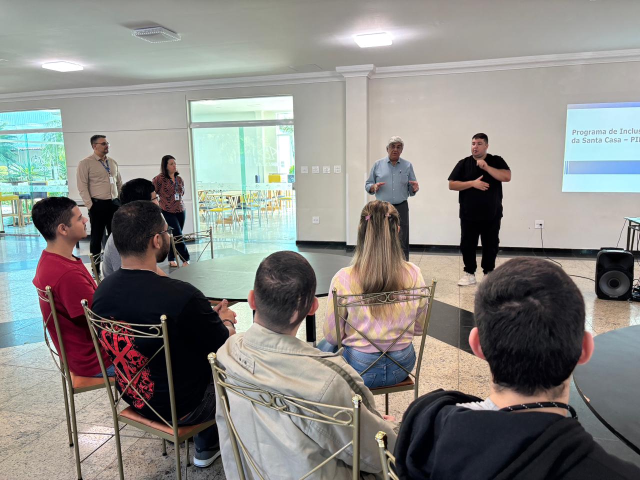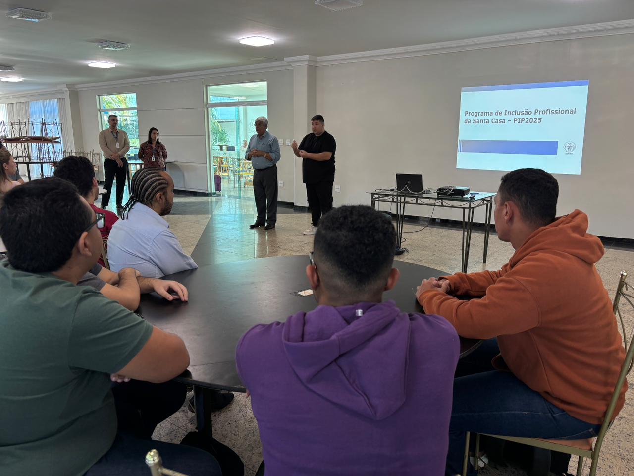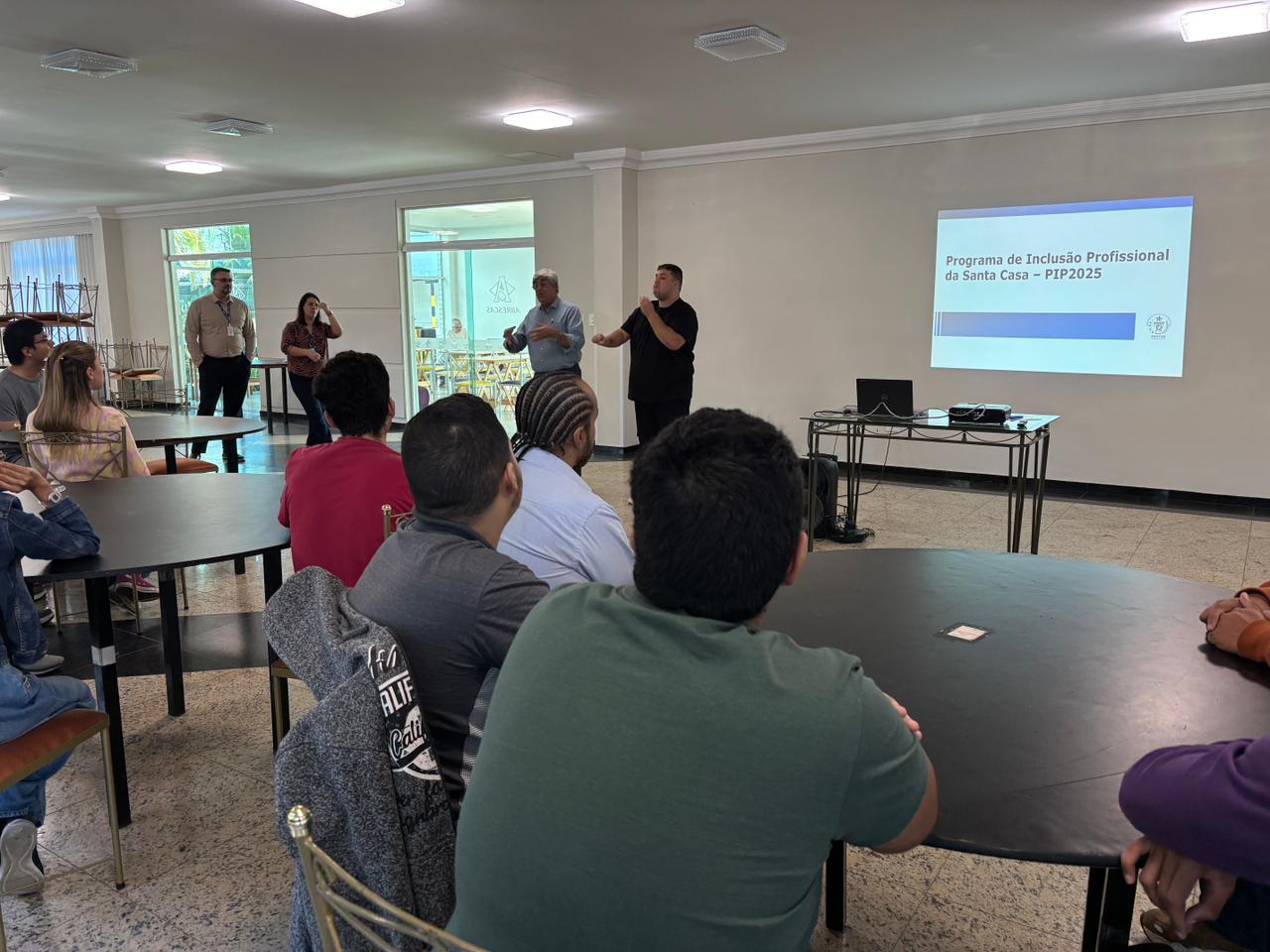 Na última terça-feira, 15 de julho de 2025, foi realizada a abertura da 5ª turma do PIP (Programa de Inclusão Profissional) para PcD, na Santa Casa de Santos. O curso deste ano é composto por um plano de ensino focado em apresentar e explorar as principais rotinas do ambiente hospitalar e desenvolver habilidades comportamentais e técnicas exigidas em ambientes organizacionais.