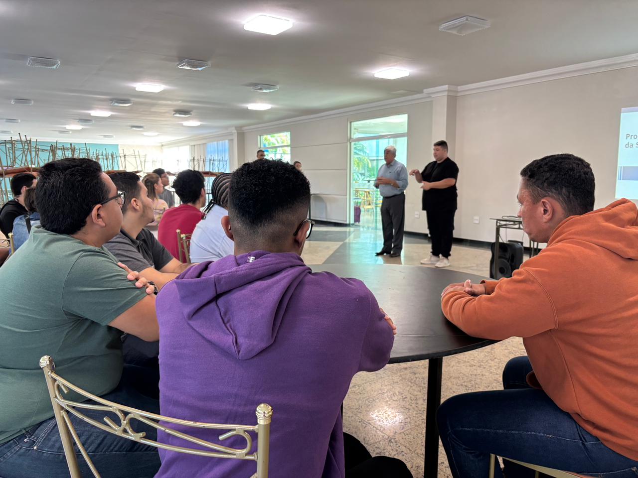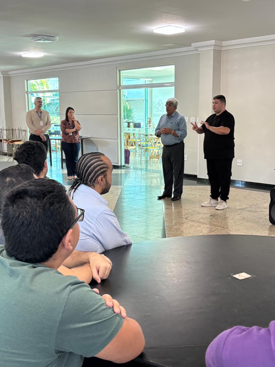 O Analista de Treinamento e Desenvolvimento do Departamento de Recursos Humanos, Luiz Onofre Silva Lima, apresentou aos alunos como funciona o programa, regras, horários e o cronograma do curso.