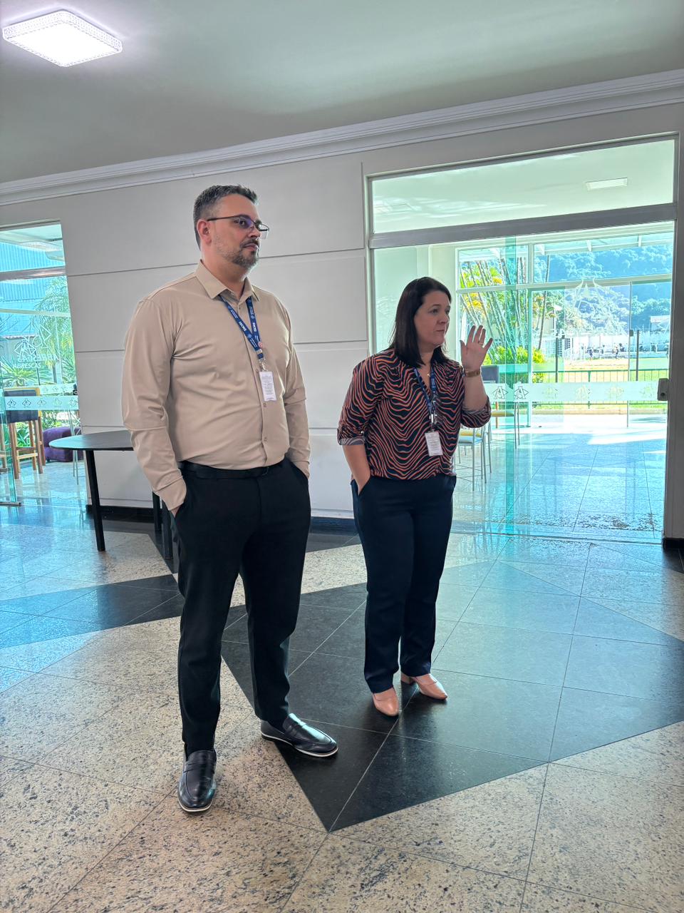 Estavam presentes na abertura, o Diretor Administrativo Eduardo Pimentel e a Coordenadora de Consultoria de Recursos Humanos, Andreia Soares Alves de Siqueira.