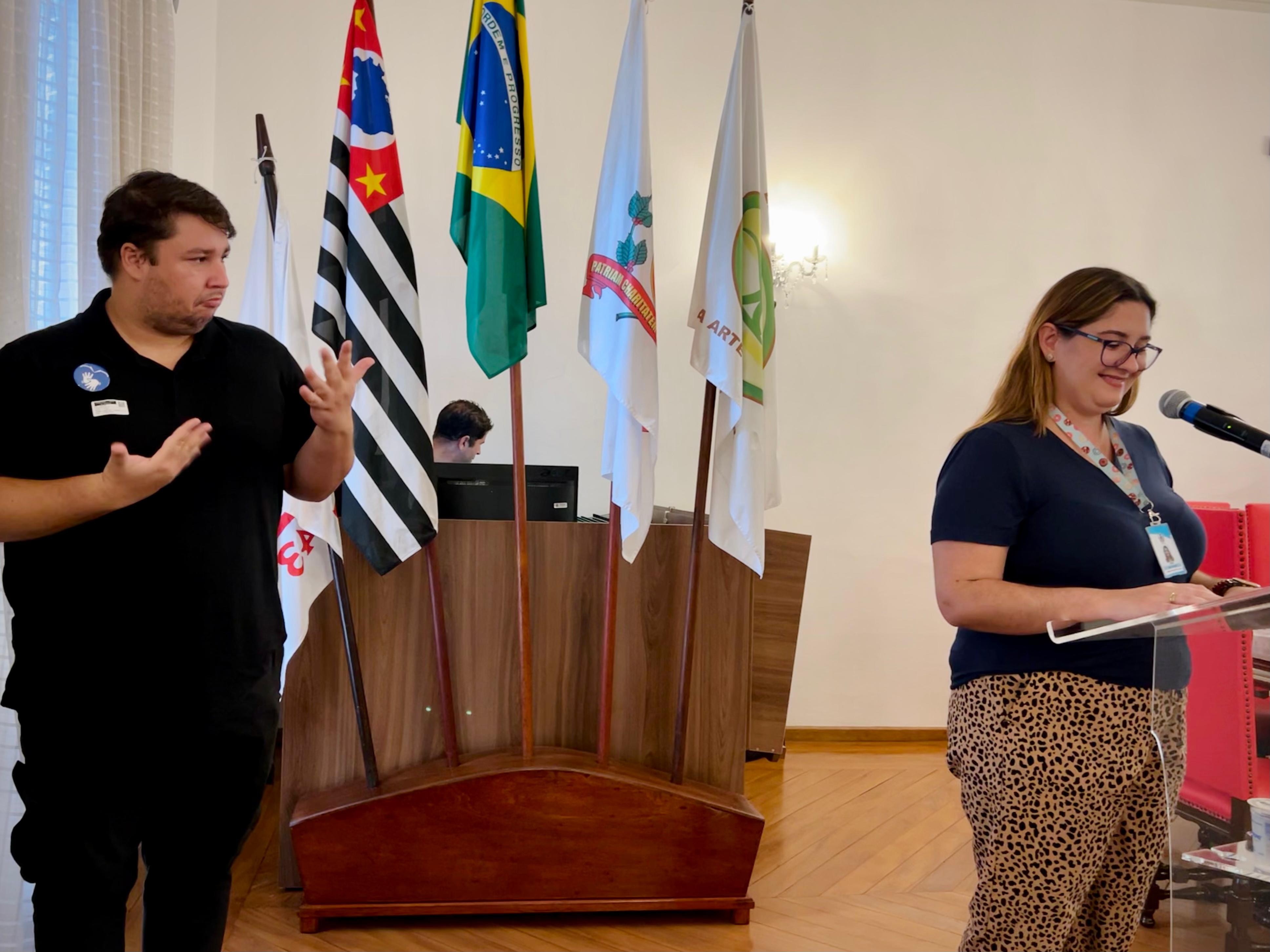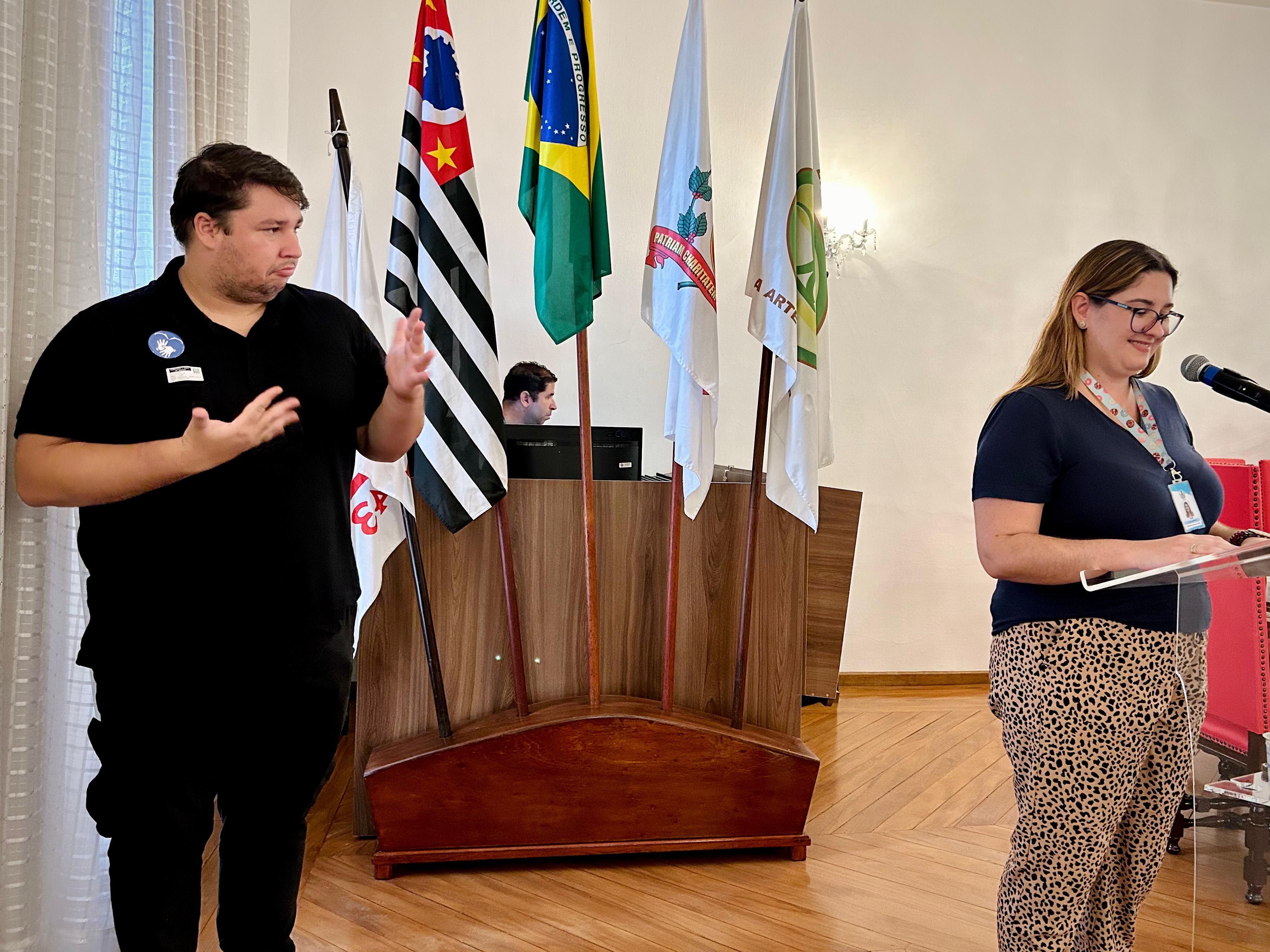A palestra de abertura da SIPAT 2024 foi justamente sobre “PcD e Inclusão”, ministrada pelas professoras do CECAP-DA (Centro de Capacitação Profissional e Apoio Pedagógico para Deficientes Auditivos de Cubatão e Região), Márcia Benício e Maria de Fátima. Importante ressaltar que, durante todo o evento, o Intérprete de Libras, Ruann Aparecido Soares, atuou transmitindo a palestra para os deficientes auditivos presentes.