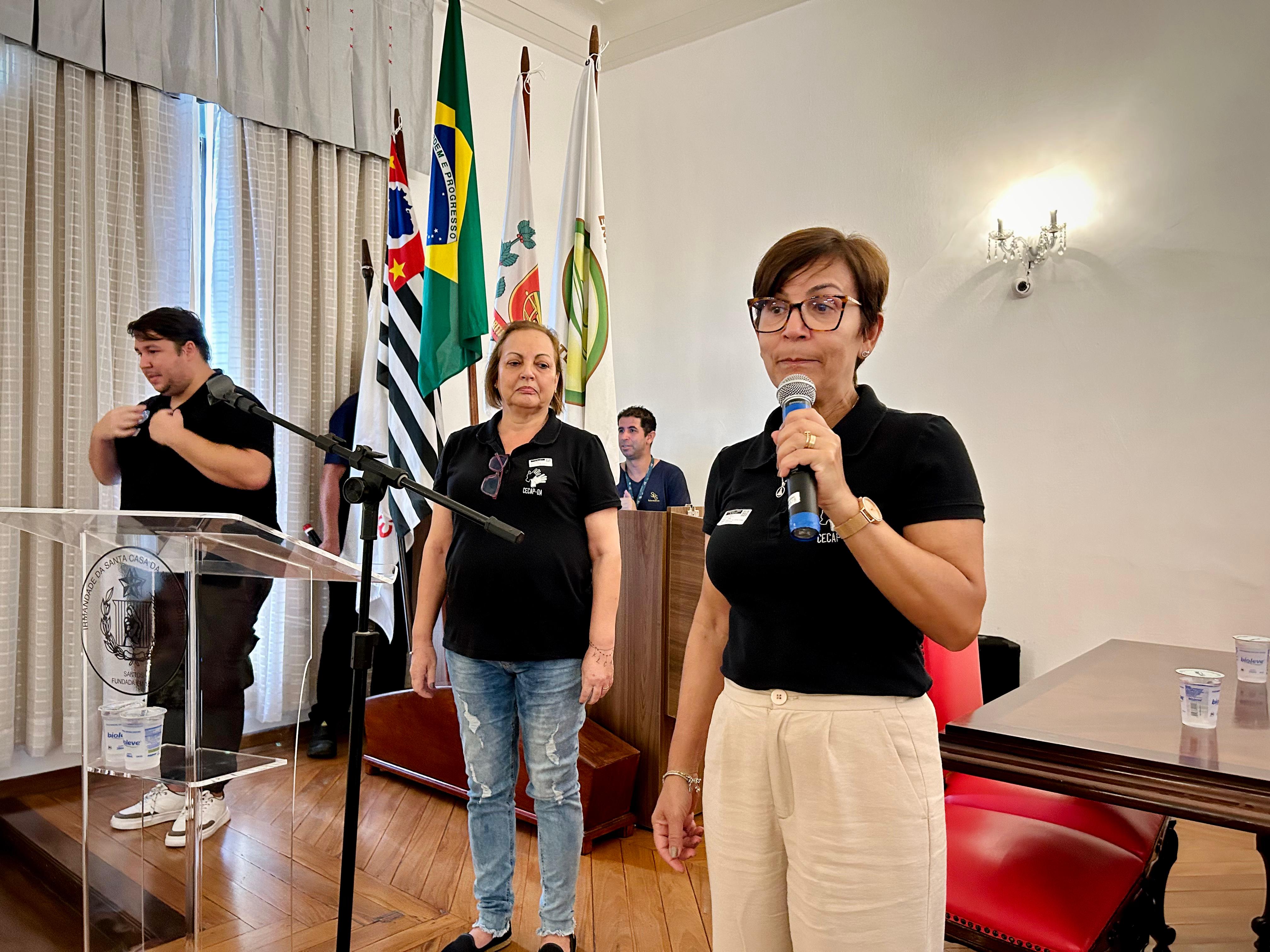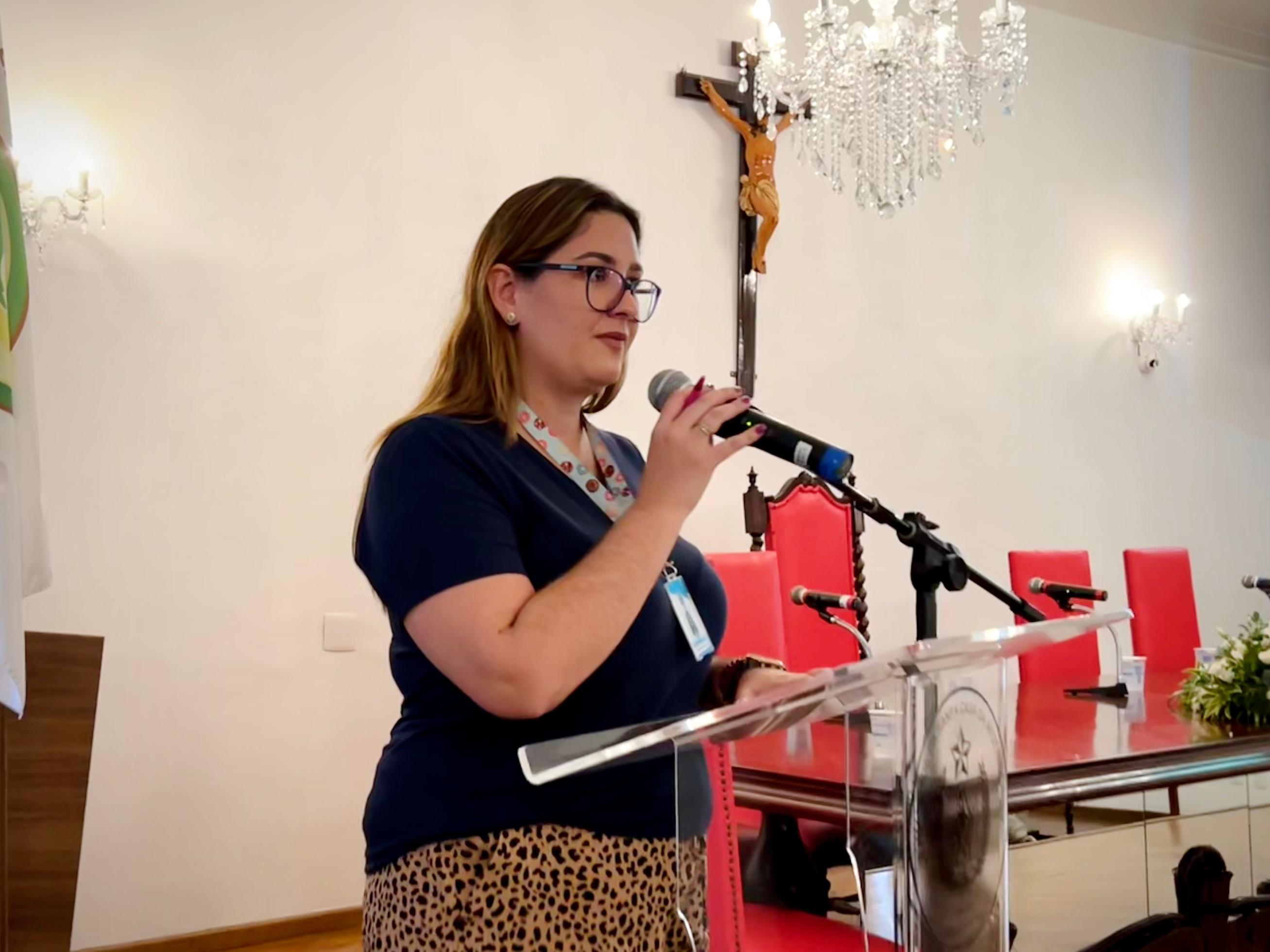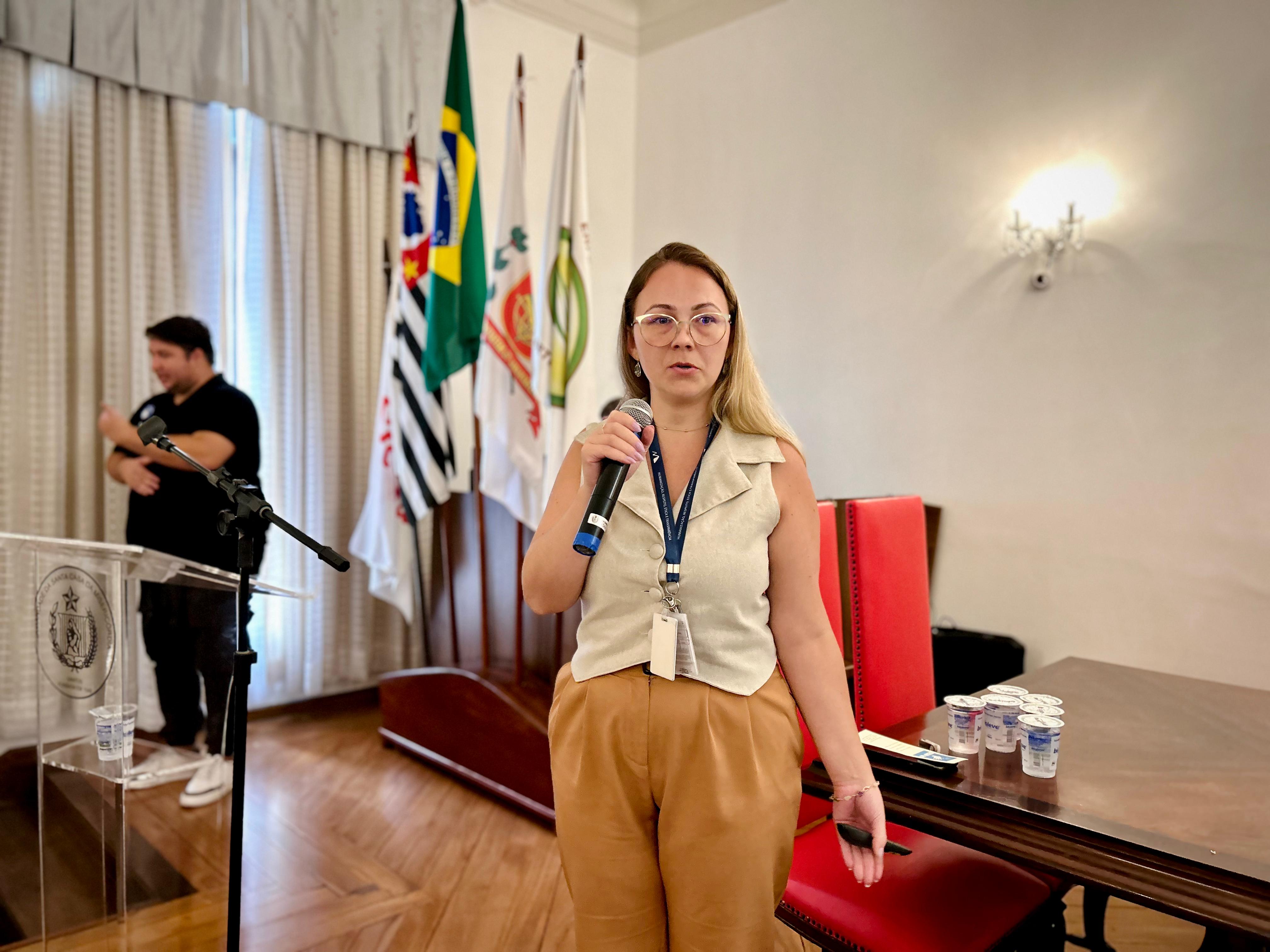 Em seguida, a representante da Science Valley, empresa de Inteligência em Pesquisa Clínica, Danielle Komar, apresentou os estudos que estão em andamento no hospital e falou sobre os benefícios de participar das pesquisas. Danielle destacou que funcionários da Santa Casa podem fazer parte dos estudos, caso se enquadrem nos pré-requisitos das pesquisas. Atualmente, a Science Valley está recrutando candidatos para pesquisas sobre menopausa, asma e varizes. Os interessados devem entrar em contato pelo whatsapp https://l1nk.dev/WhatsAppAsma ou https://l1nk.dev/WhatsAppMenopausa