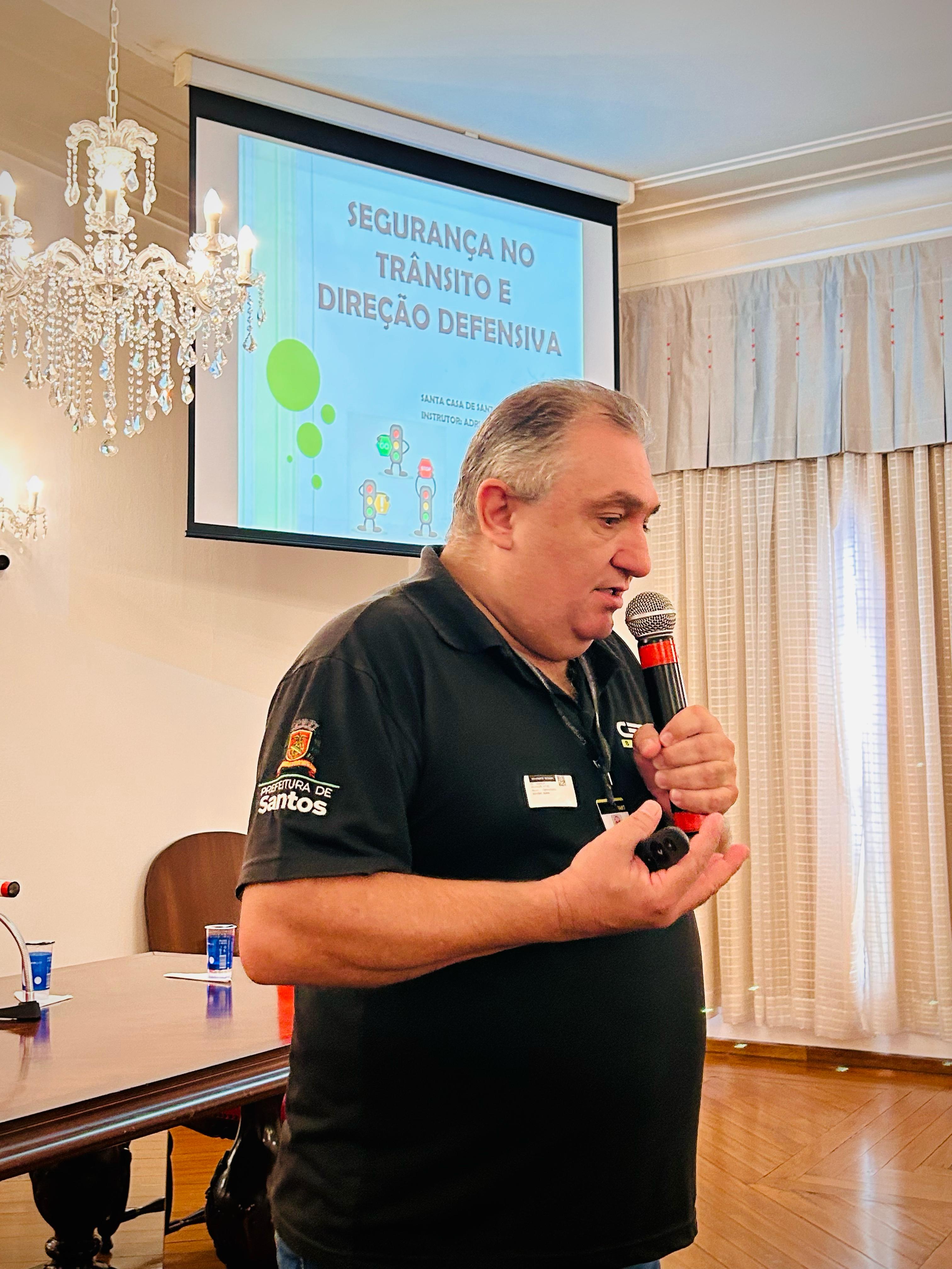 A primeira palestra foi com o especialista em Educação para o Trânsito e Direção Defensiva da CET – Santos, Adriano Mosna, que fez uma apresentação ampla sobre diversas situações e comportamentos no trânsito. Adriano Mosna também mostrou muitos vídeos de acidentes e condutas de risco, prendendo a atenção do público durante toda a palestra.