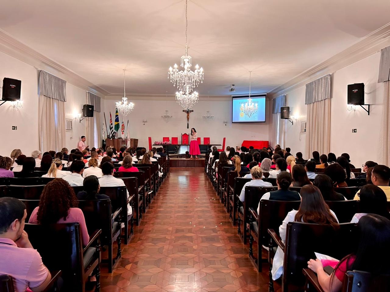 A Santa Casa de Santos promoveu, no dia 21 de outubro, no Consistório, o Dia ‘D’ Outubro Rosa, uma manhã dedicada à conscientização sobre a prevenção do câncer de mama e temas relacionados à saúde da mulher. O evento reuniu colaboradores e equipe multiprofissional em uma programação especial com palestras, música e momentos de integração.
