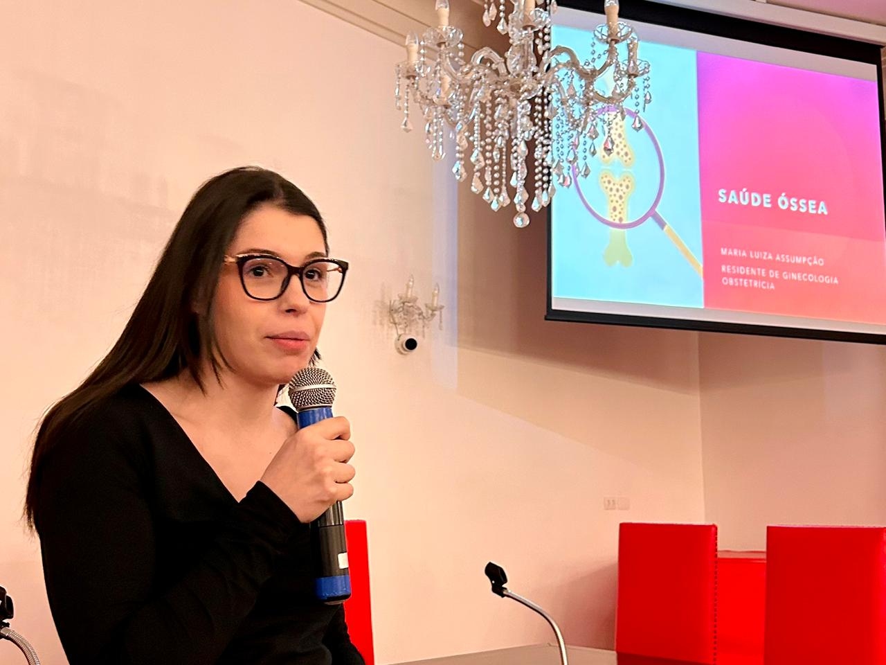 Após um coffee break, a manhã foi encerrada com a palestra da residente em Ginecologia e Obstetrícia Dra. Maria Luiza Assumpção, que abordou temas essenciais sobre a prevenção, diagnóstico e tratamento da osteoporose.