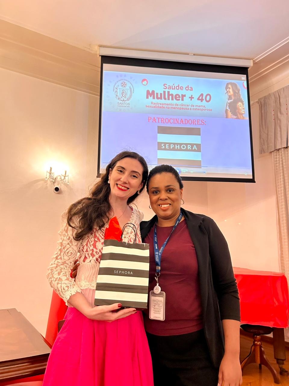 A programação seguiu com uma série de palestras informativas. A primeira abordou o tema “Outubro Rosa: Conscientização Câncer de Mama e Menopausa”, com a Mastologista Dra. Mariana Baraldi, que abordou desde a história da doença até dados atuais sobre sua incidência no Brasil. Durante a apresentação, a médica destacou que o câncer de mama é o tipo mais comum entre as mulheres, representando um importante desafio para a saúde pública.