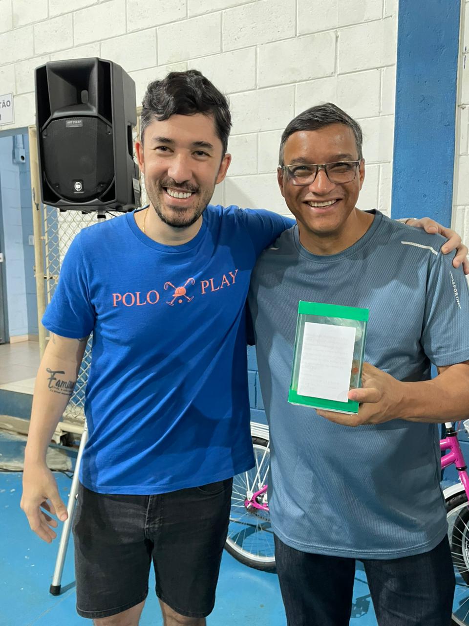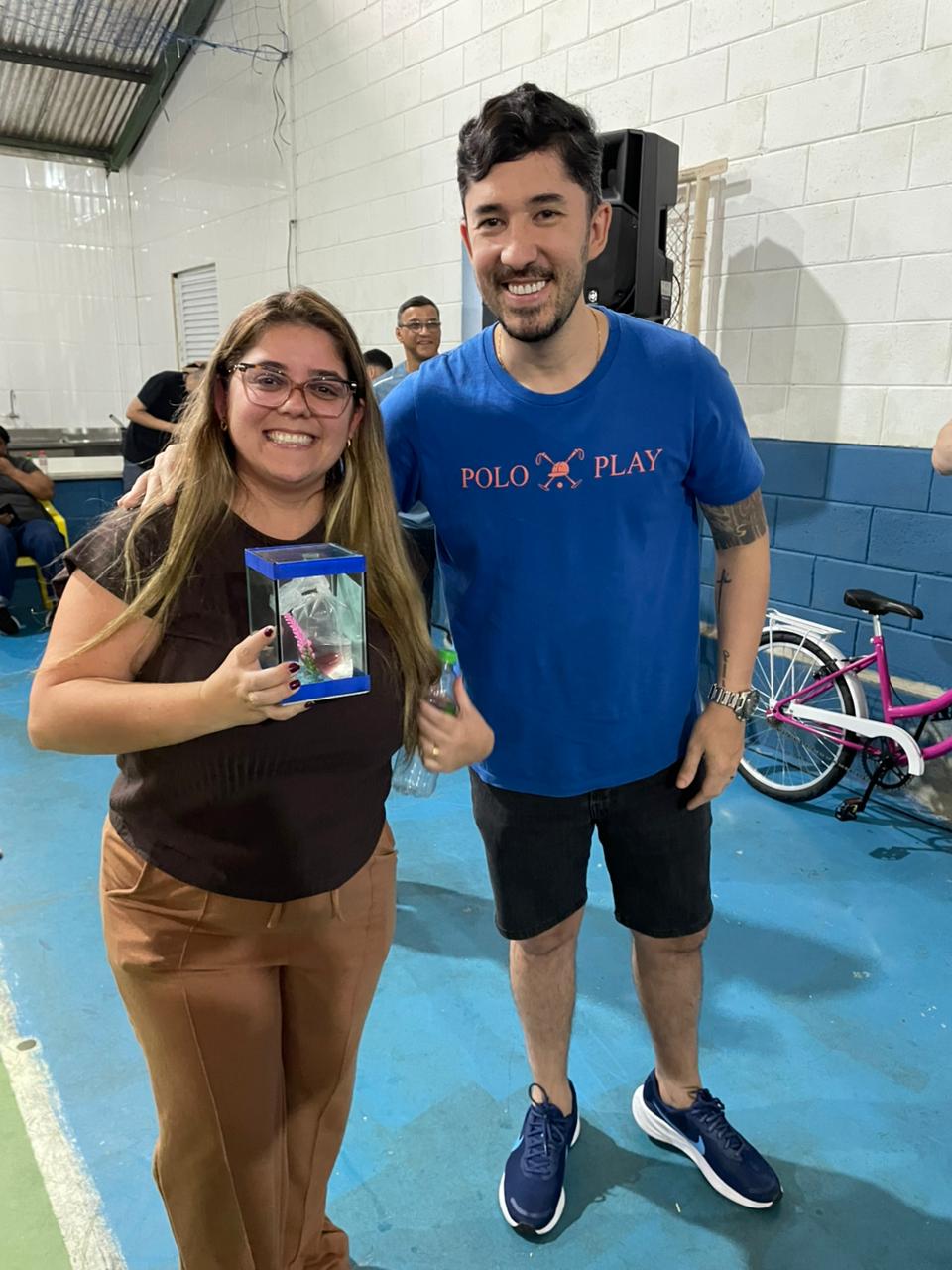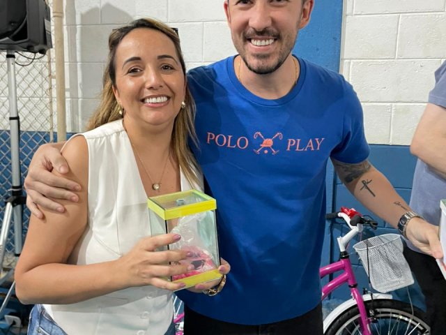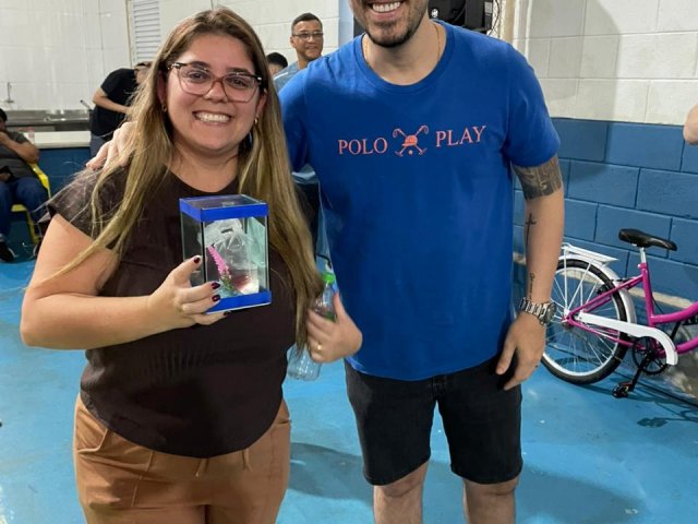 Foram sorteadas 2 bicicletas, cerca de 20 aquários com peixe beta e outros diversos brindes.
