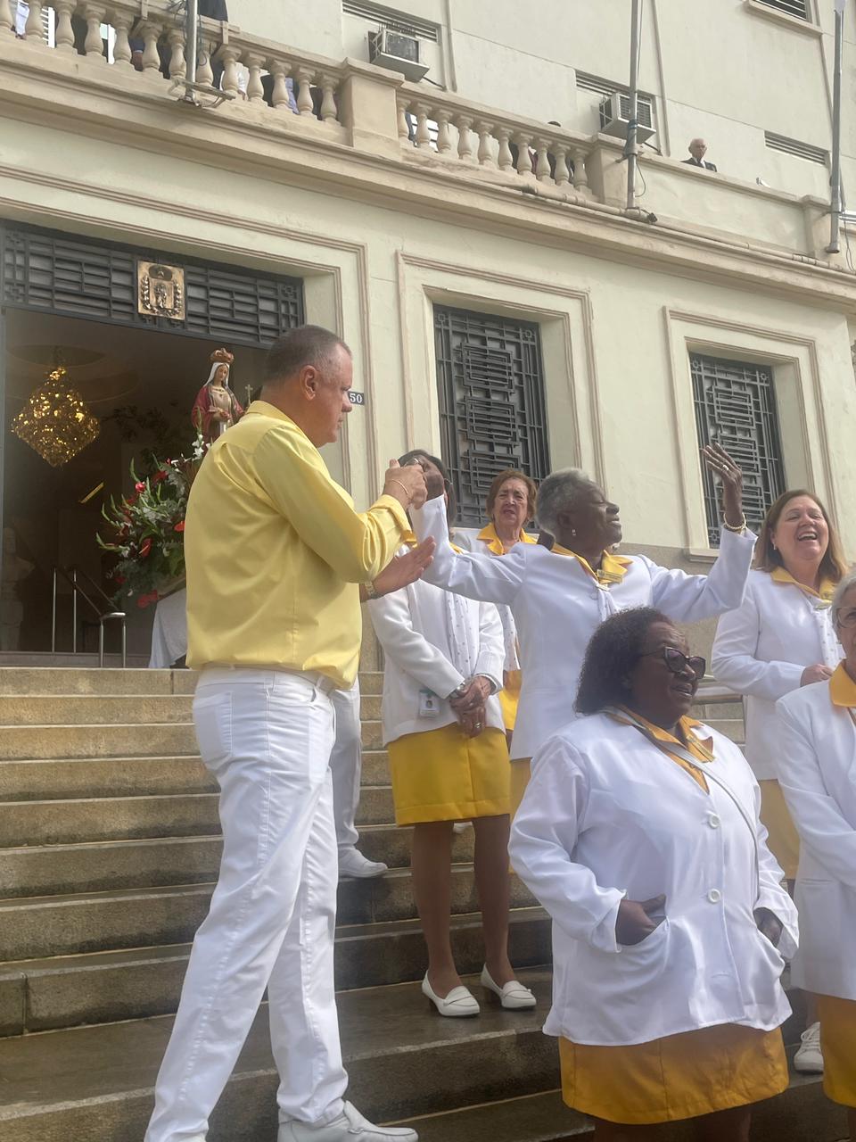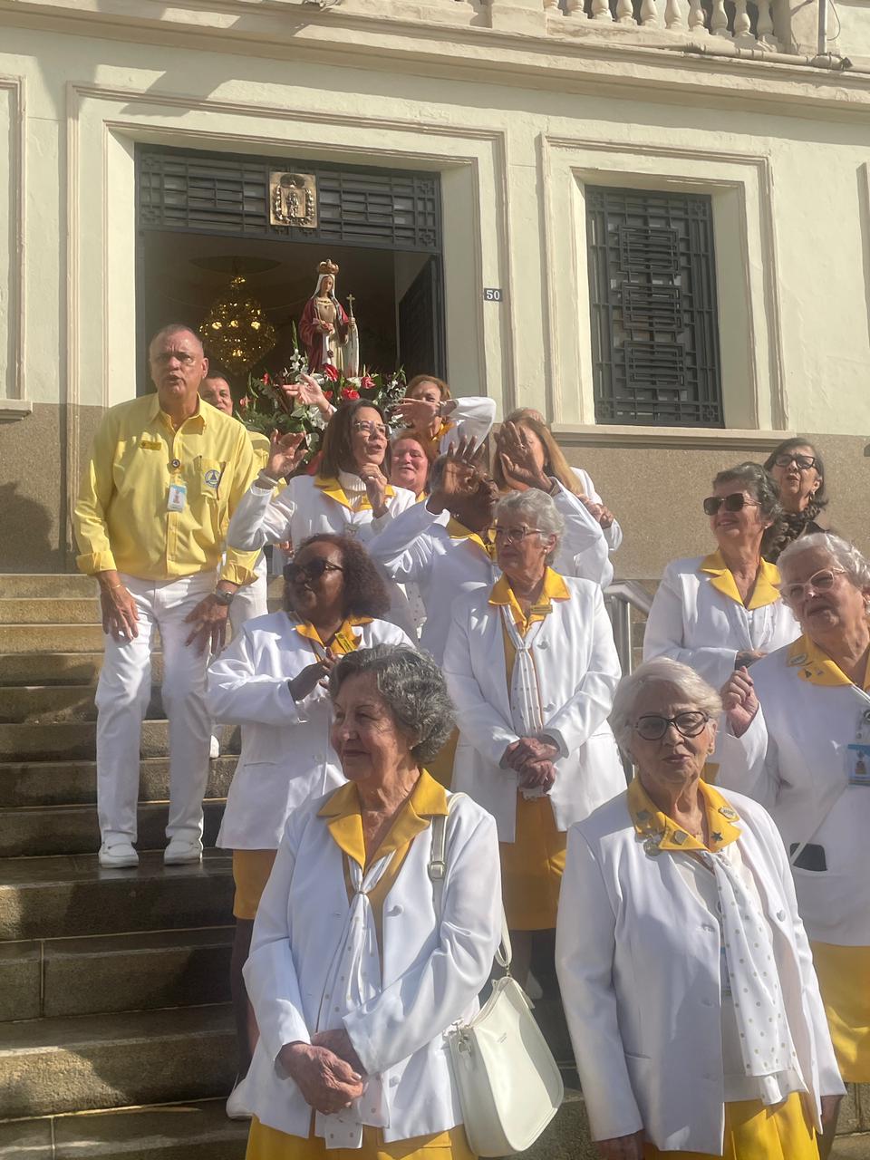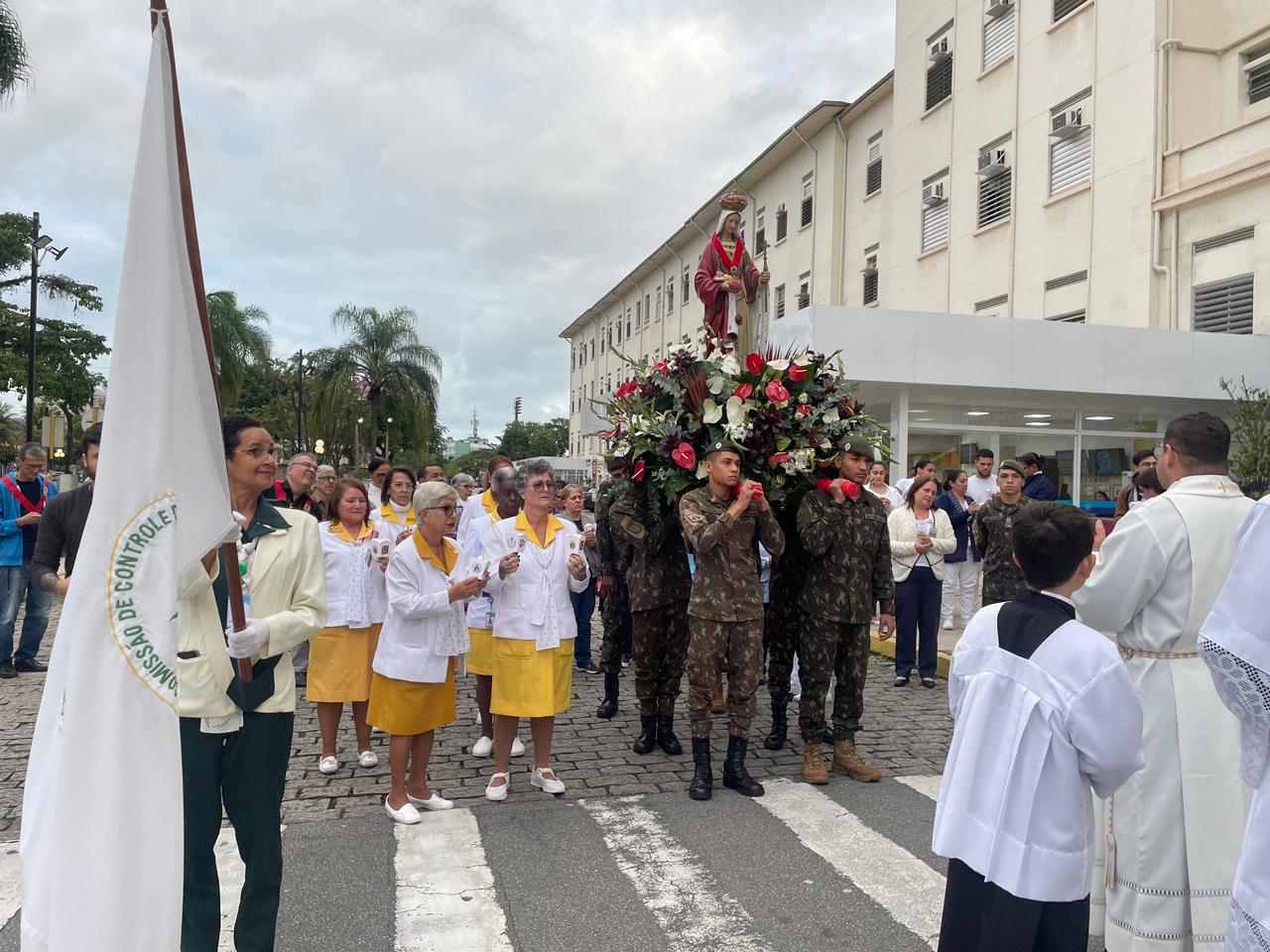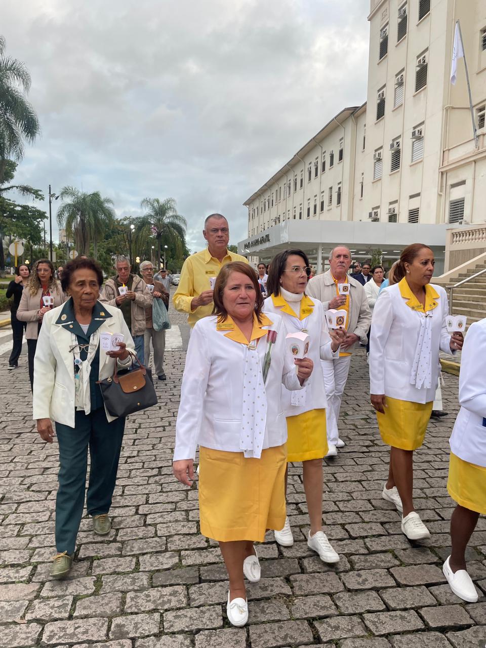 No período da tarde, os voluntários amarelinhos e verdinhos fizeram a distribuição de rosas aos enfermos e, às 16h30, aconteceu a procissão luminosa, saindo da frente da Santa Casa de Santos rumo à Capela Santa Isabel.