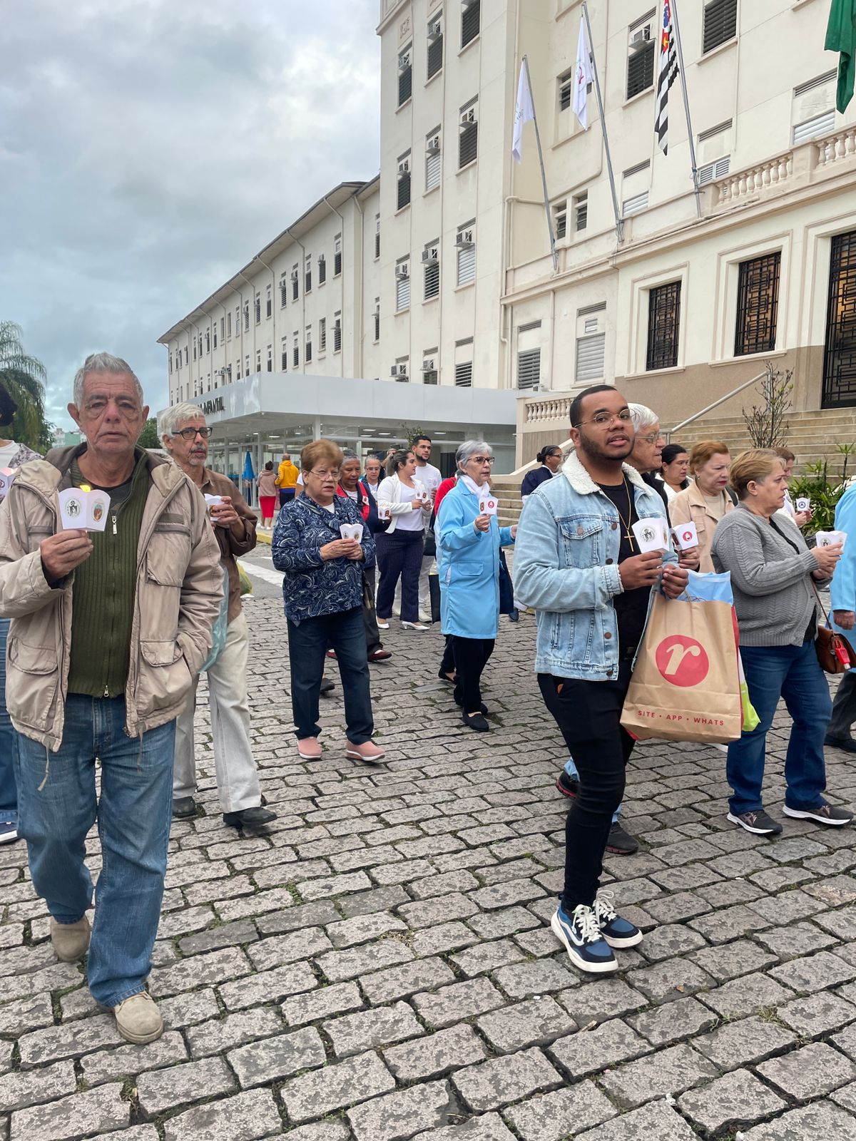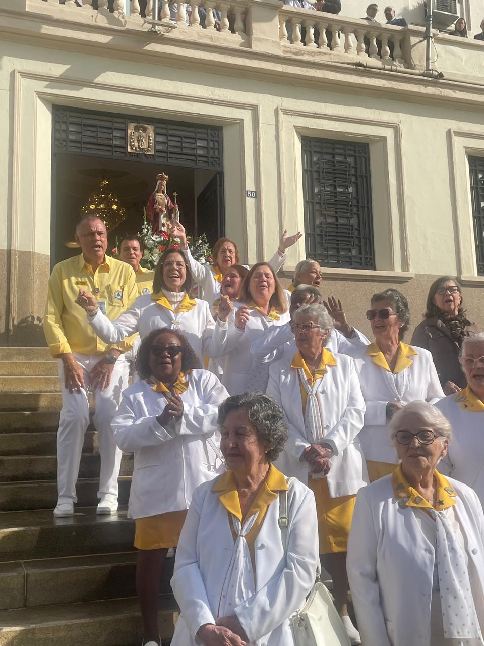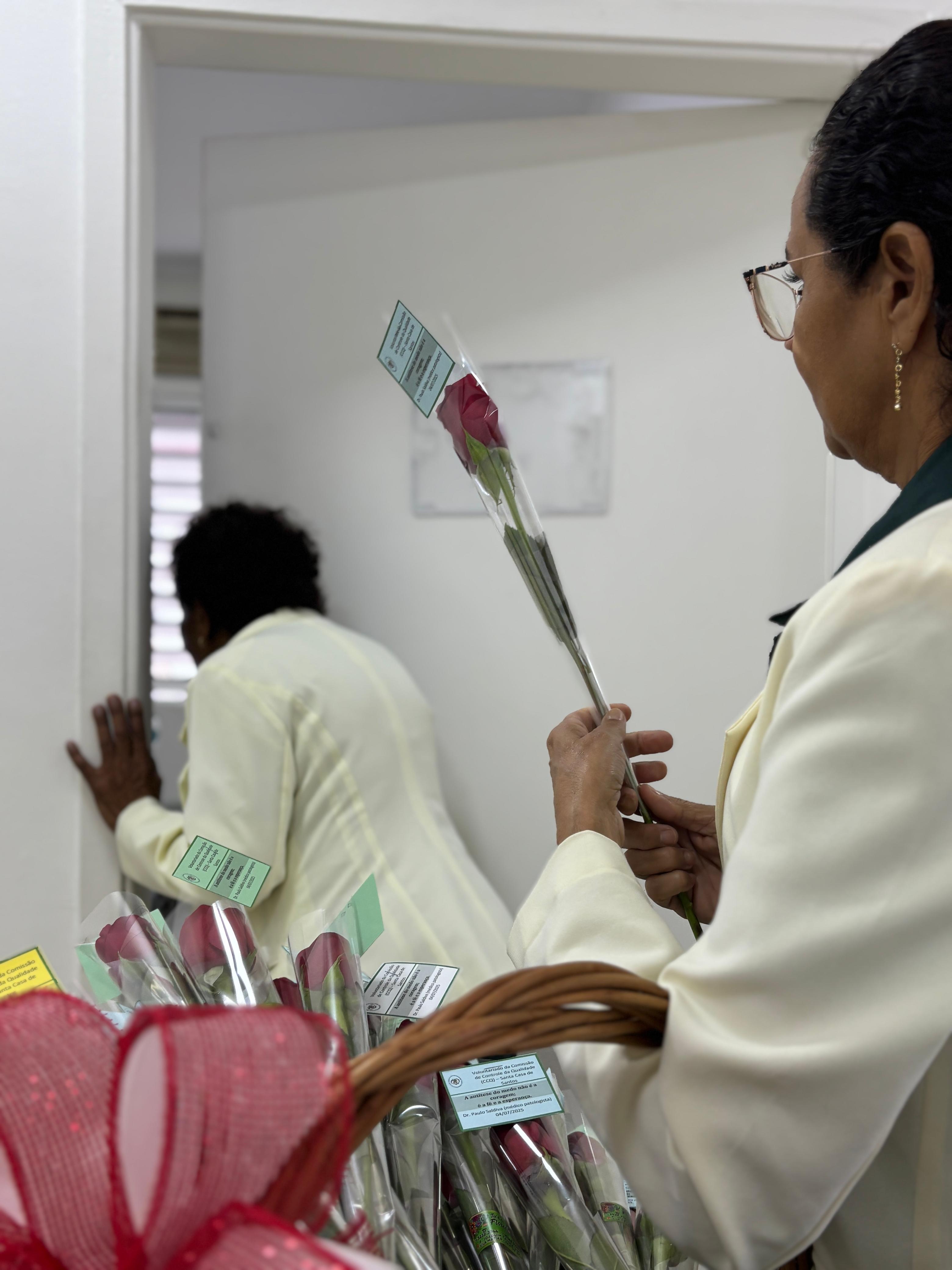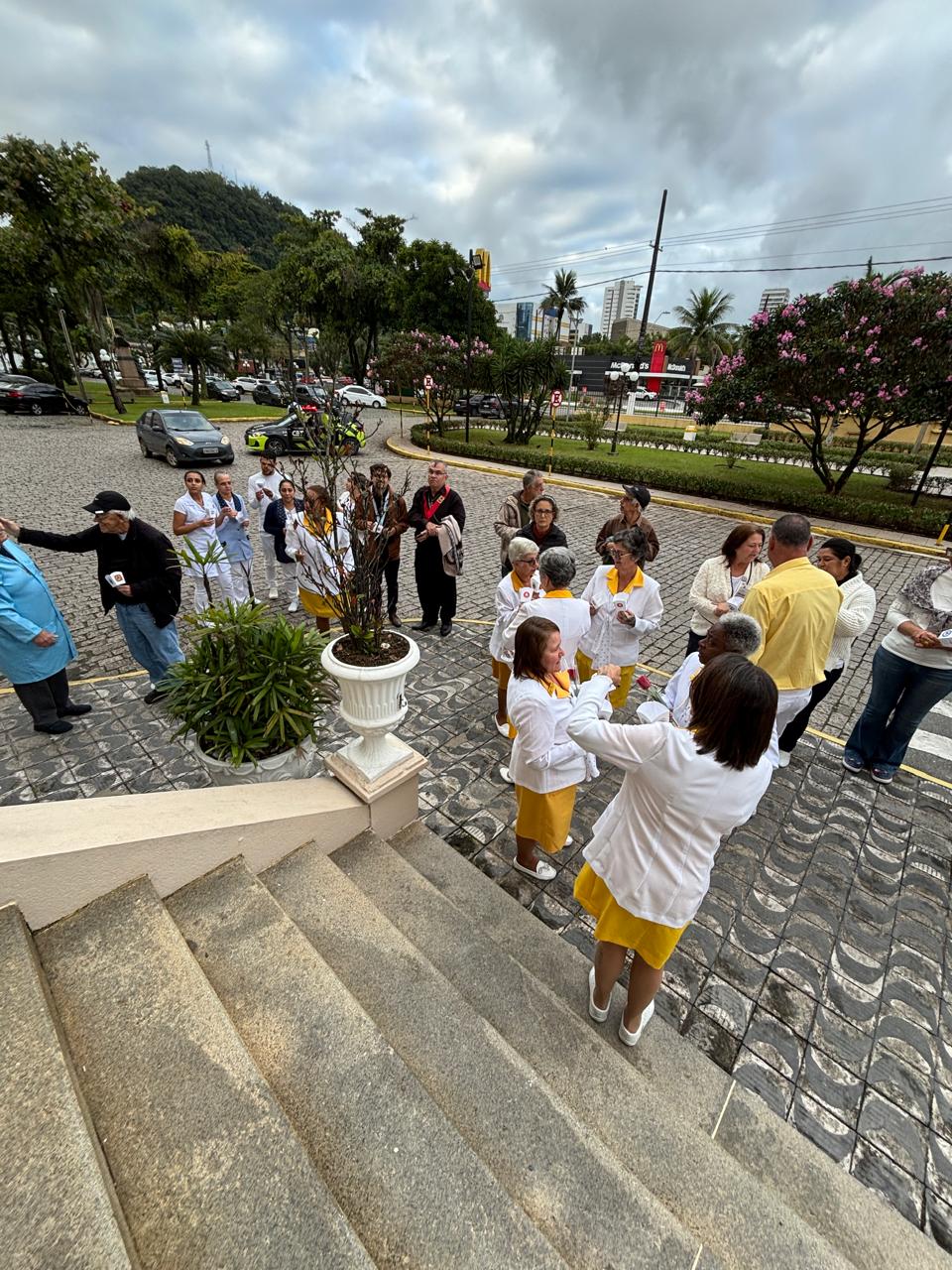 No período da tarde, os voluntários amarelinhos e verdinhos fizeram a distribuição de rosas aos enfermos e, às 16h30, aconteceu a procissão luminosa, saindo da frente da Santa Casa de Santos rumo à Capela Santa Isabel.