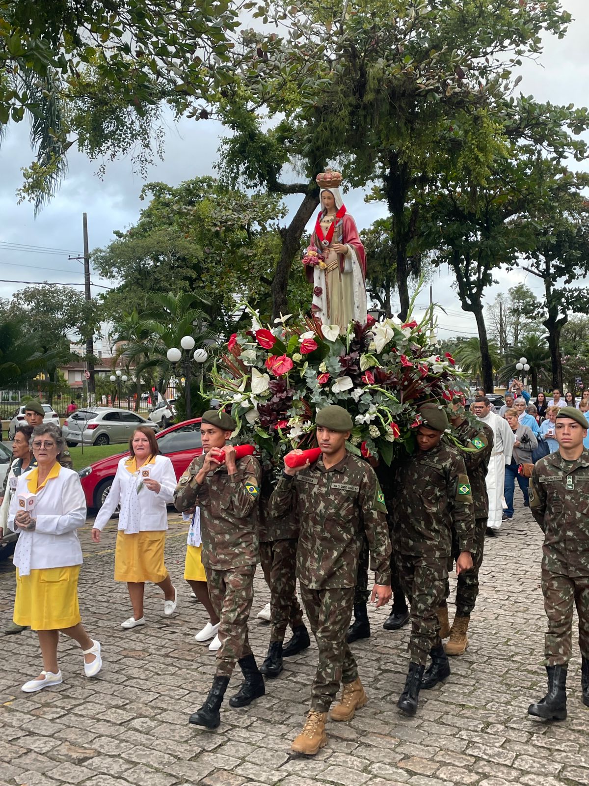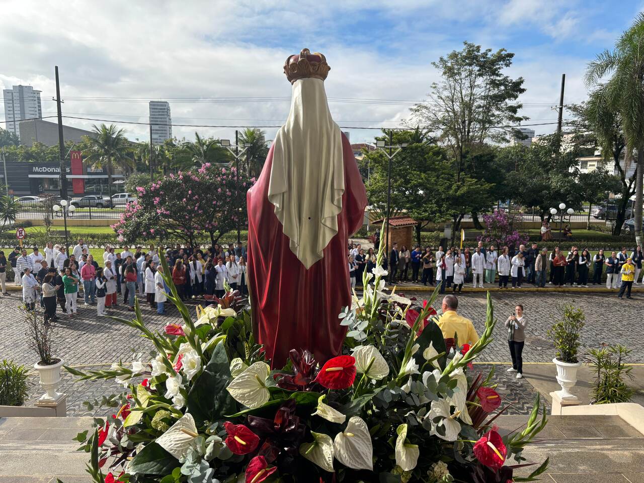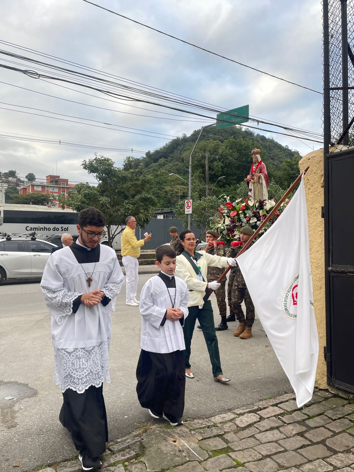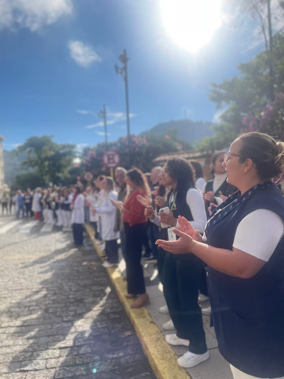 No período da tarde, os voluntários amarelinhos e verdinhos fizeram a distribuição de rosas aos enfermos e, às 16h30, aconteceu a procissão luminosa, saindo da frente da Santa Casa de Santos rumo à Capela Santa Isabel.