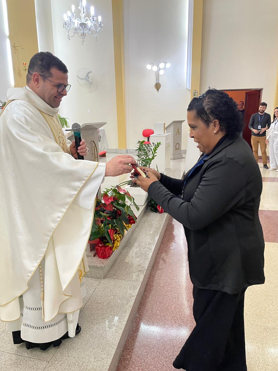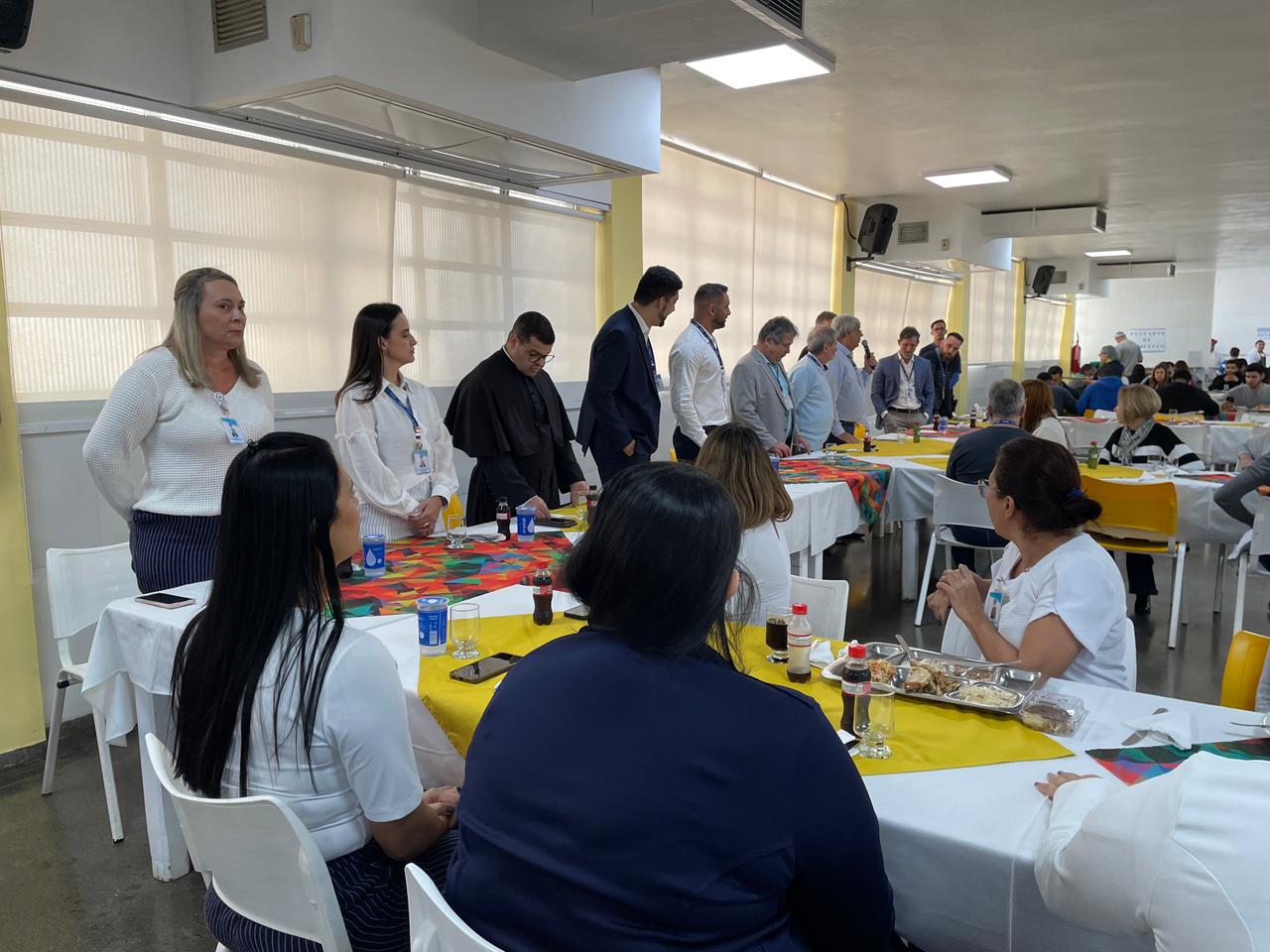 O vice provedor Carlos Teixeira Filho fez um discurso destacando o envolvimento dos colaboradores no crescimento da instituição. O Padre Denilson abençoou a hora da refeição.