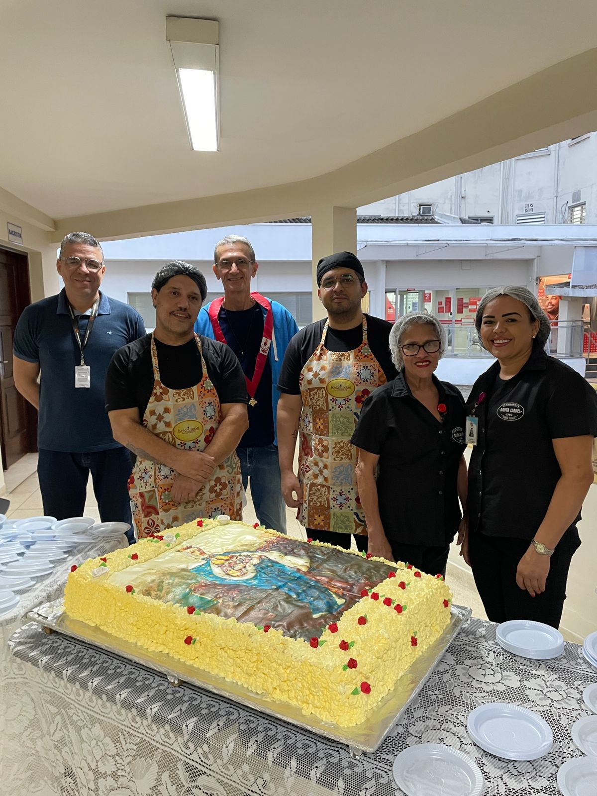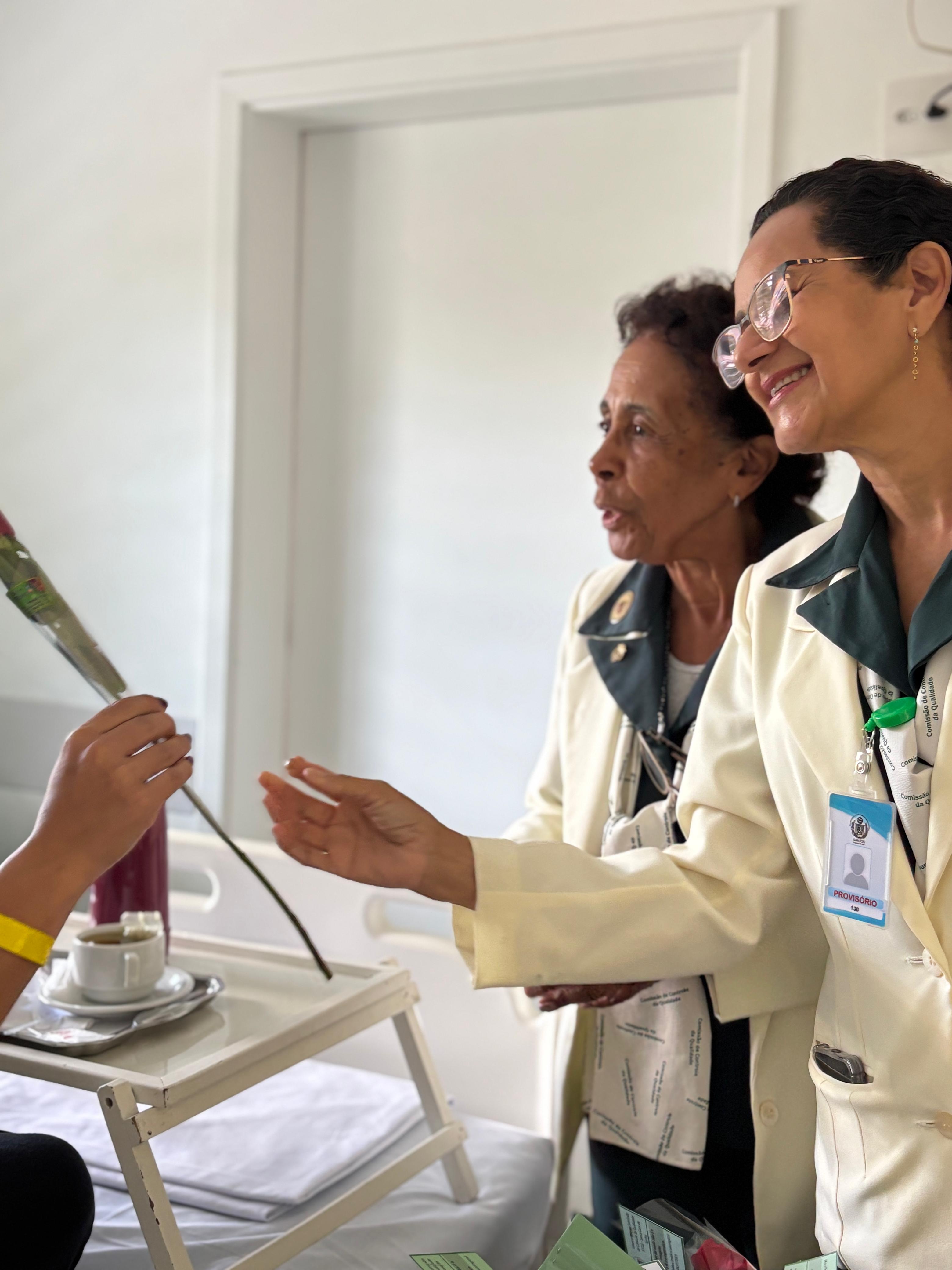 Na mesa principal do almoço estavam presentes: A Gestora de Enfermagem, Rita Rocha, a Chefe do Departamento de Enfermagem, Enfª Fátima Bárbara, Padre Denilson de Freitas, o Diretor de Infraestrutura e Apoio, Bruno Dantas Gonçalves, o Diretor de Inovação e Tecnologia, Cristiano Oliveira de Sousa, o 1º Tesoureiro, Antonio Carvalho, o Presidente do Conselho Geral, Orlando Viscardi Júnior, o vice-provedor Carlos Teixeira Filho, o vice-diretor Clínico Eloi Guilherme Provinciali Moccellin, o Assessor Técnico Executivo, Marcio de Castro Lourenço das Neves e o Gerente de Tecnologia da Informação, César Meneguini.