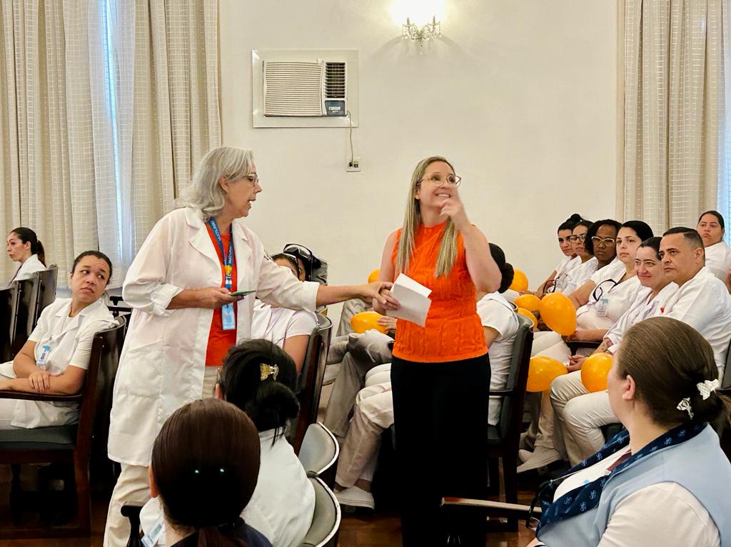 No final dos dois dias de palestras, teve sorteio de brindes que foram doados pelos próprios colaboradores engajados no evento. Além disso, na entrada do Consistório tinham placas com o tema onde eles puderam tirar fotos e divulgar nas redes sociais. Foram distribuídas bexigas laranjas, que é a cor em alusão ao tema e foi feito dinâmica em grupo. Os colaboradores tiveram que estourar os balões que tinham frases sobre a Segurança do Paciente.