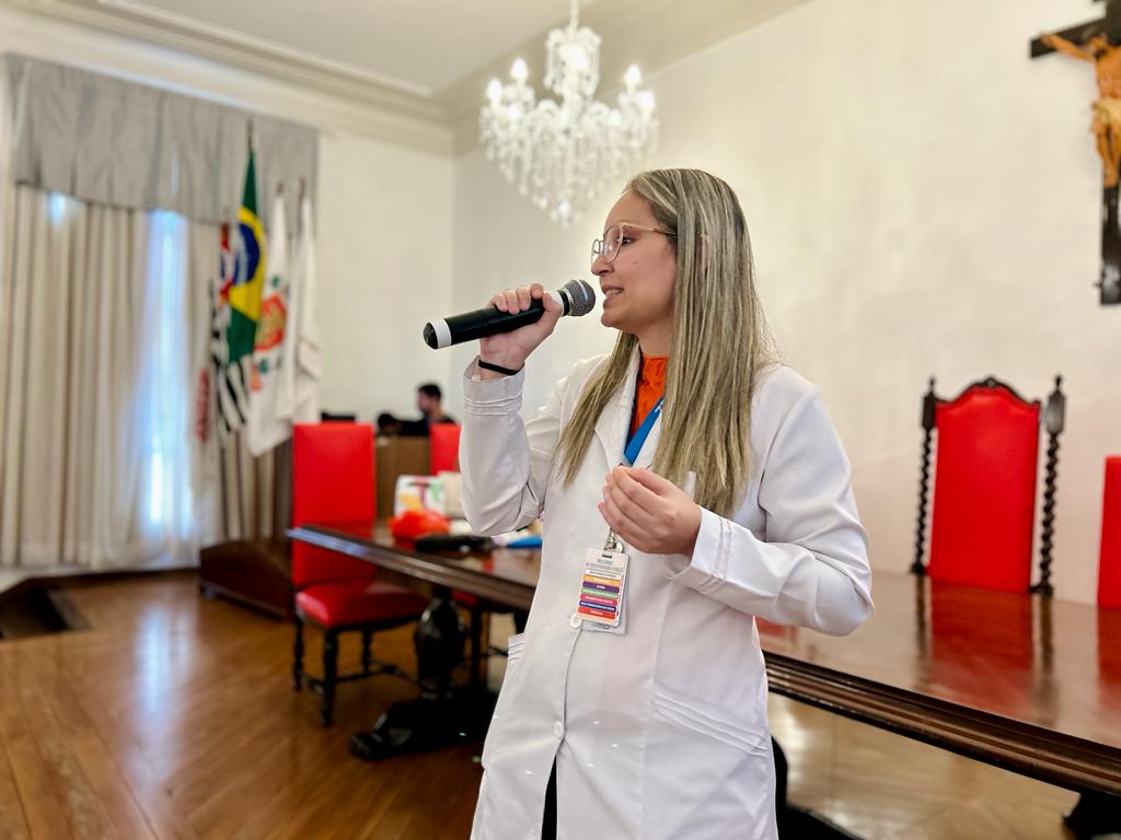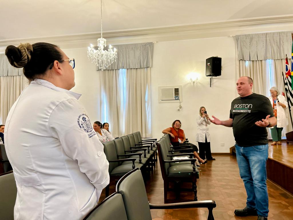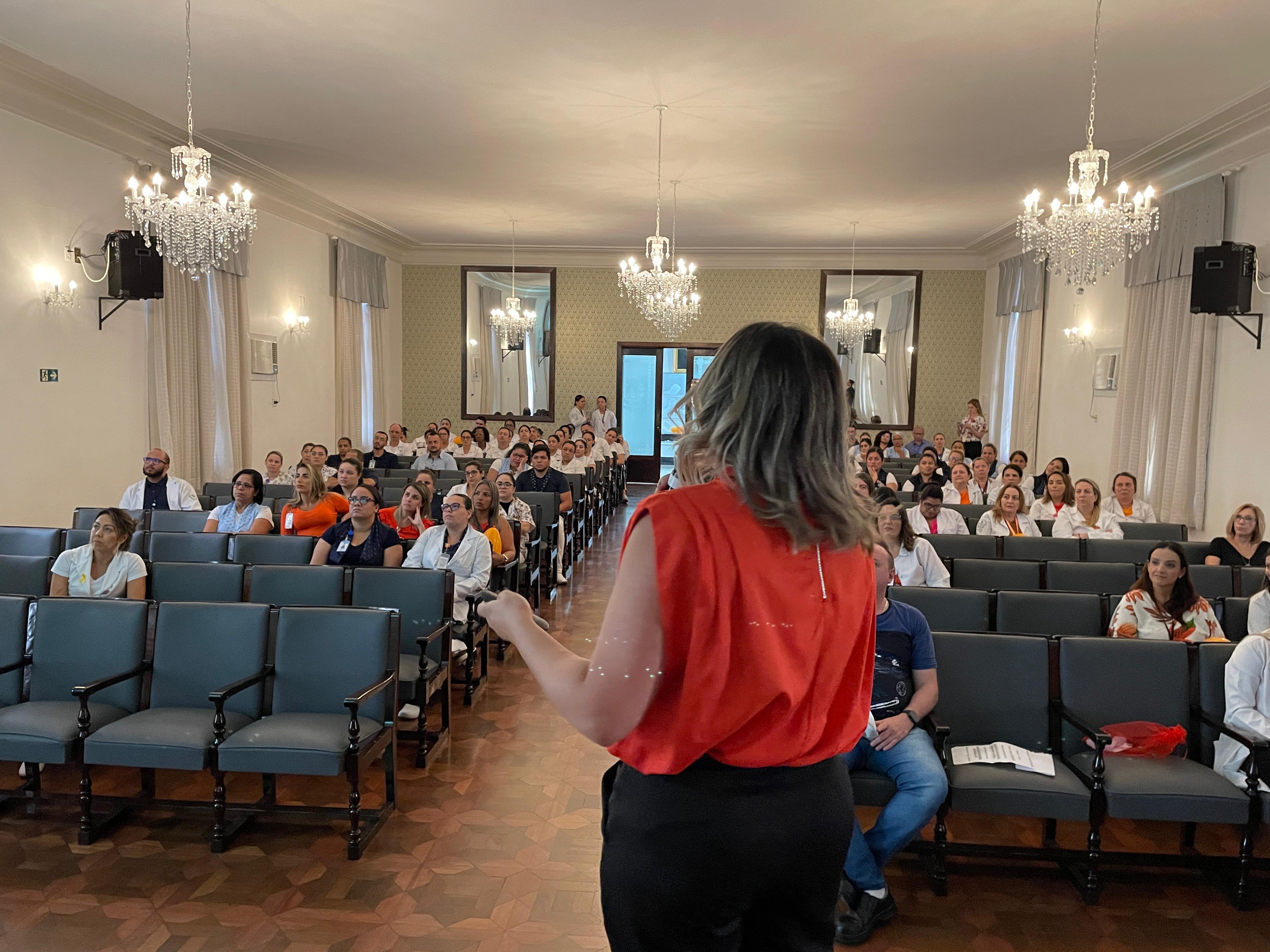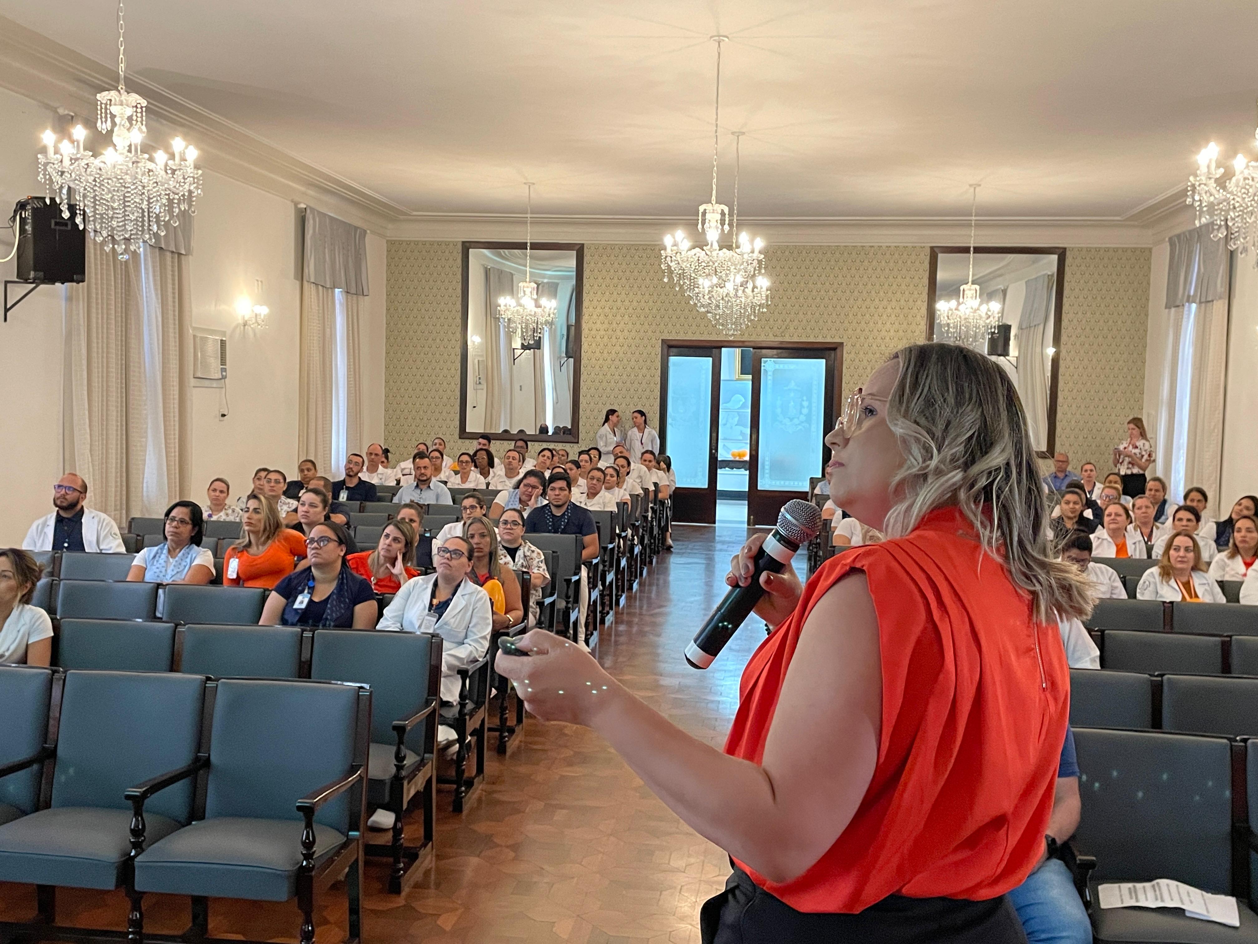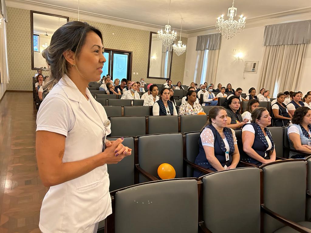 E por último, a Enfermeira Amanda Antunes Sant’Anna do Núcleo de Segurança do Paciente, mostrou para o público, os vídeos gravados com os pacientes atendidos no hospital em que eles falavam sobre o atendimento humanizado e a importância do ouvir.
