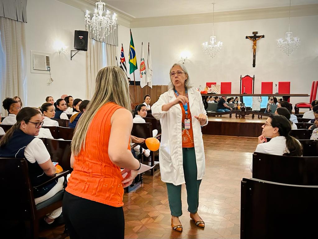 No primeiro dia, após a abertura, a Enfermeira do Núcleo de Segurança do Paciente, Márcia Torelli de Castro, abordou o tema: “Ouvir a voz do paciente”. Depois, a Enfermeira Estomaterapeuta da empresa Hollister, Silene Batista de Souza Santos, falou sobre o programa Hollister Qualivida, que oferece orientações e insumos para os pacientes ostomizados internados da Santa Casa. Após a alta, o atendimento é feito em casa, individualizado, sem distinção de ser SUS ou convênio. No segundo dia de evento, quem palestrou sobre esse mesmo tema foi a Enfermeira Dermatológica da Hollister Cristiane Orlandini.