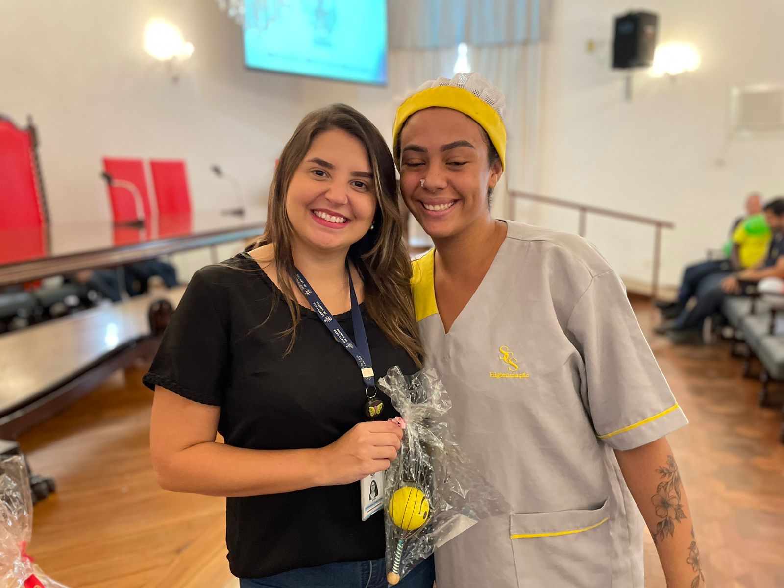 Participantes se divertiram com atividade incentivada pela equipe do RH. Palestras sobre acidentes com perfuro cortantes e alimentação saudável completaram a programação.