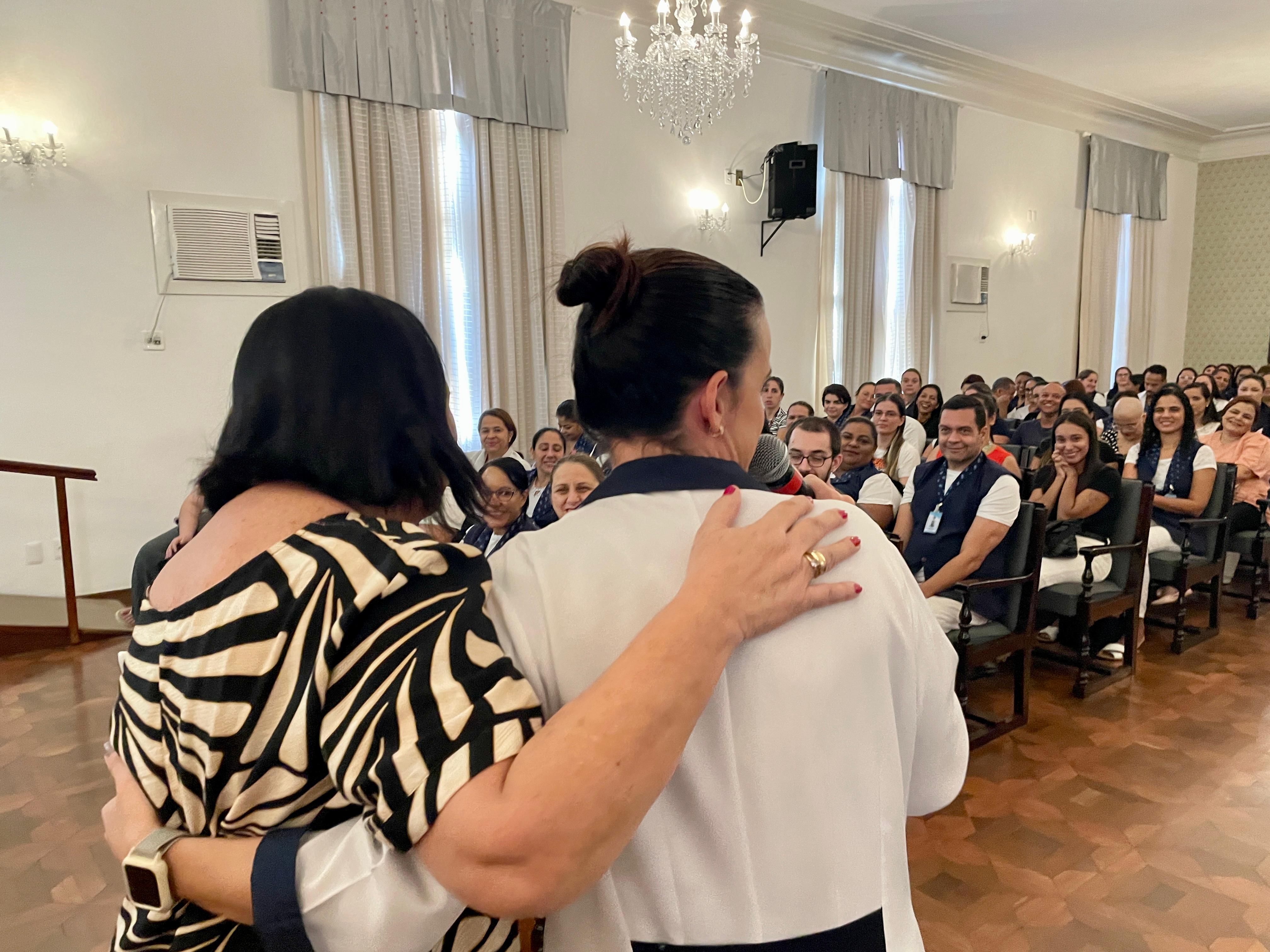 Rita Rocha aproveitou a oportunidade para falar de alguns projetos, como o retorno da folga de aniversário, que beneficiava colaboradores assíduos, mencionando como exemplo o enfermeiro Gilberto, o qual possui um histórico funcional admirável, sem nenhum afastamento nos últimos 5 anos.
