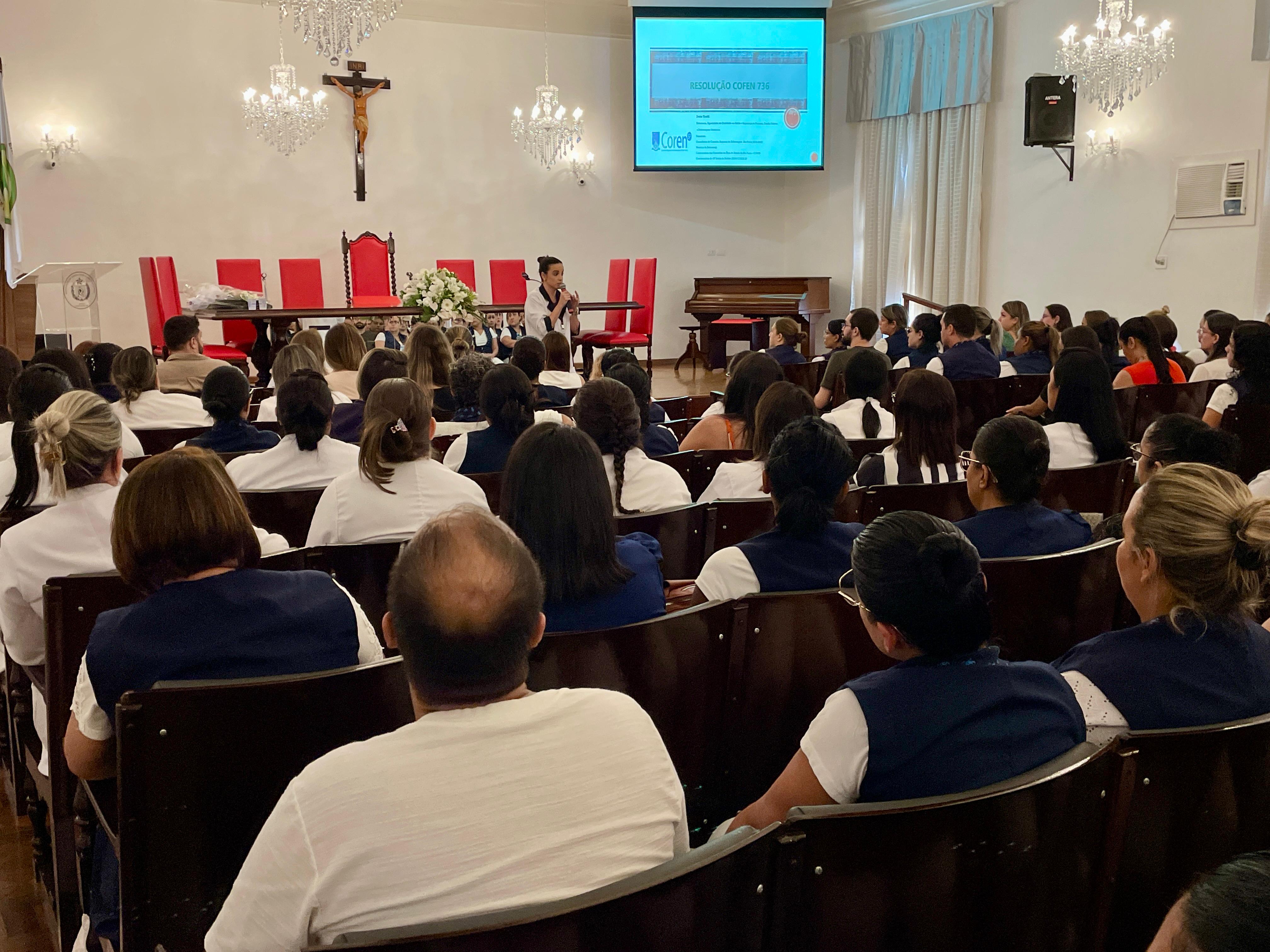 Resolução COFEN 736 e atribuições dos profissionais foram temas do encontro que lotou o consistório da Santa Casa.
