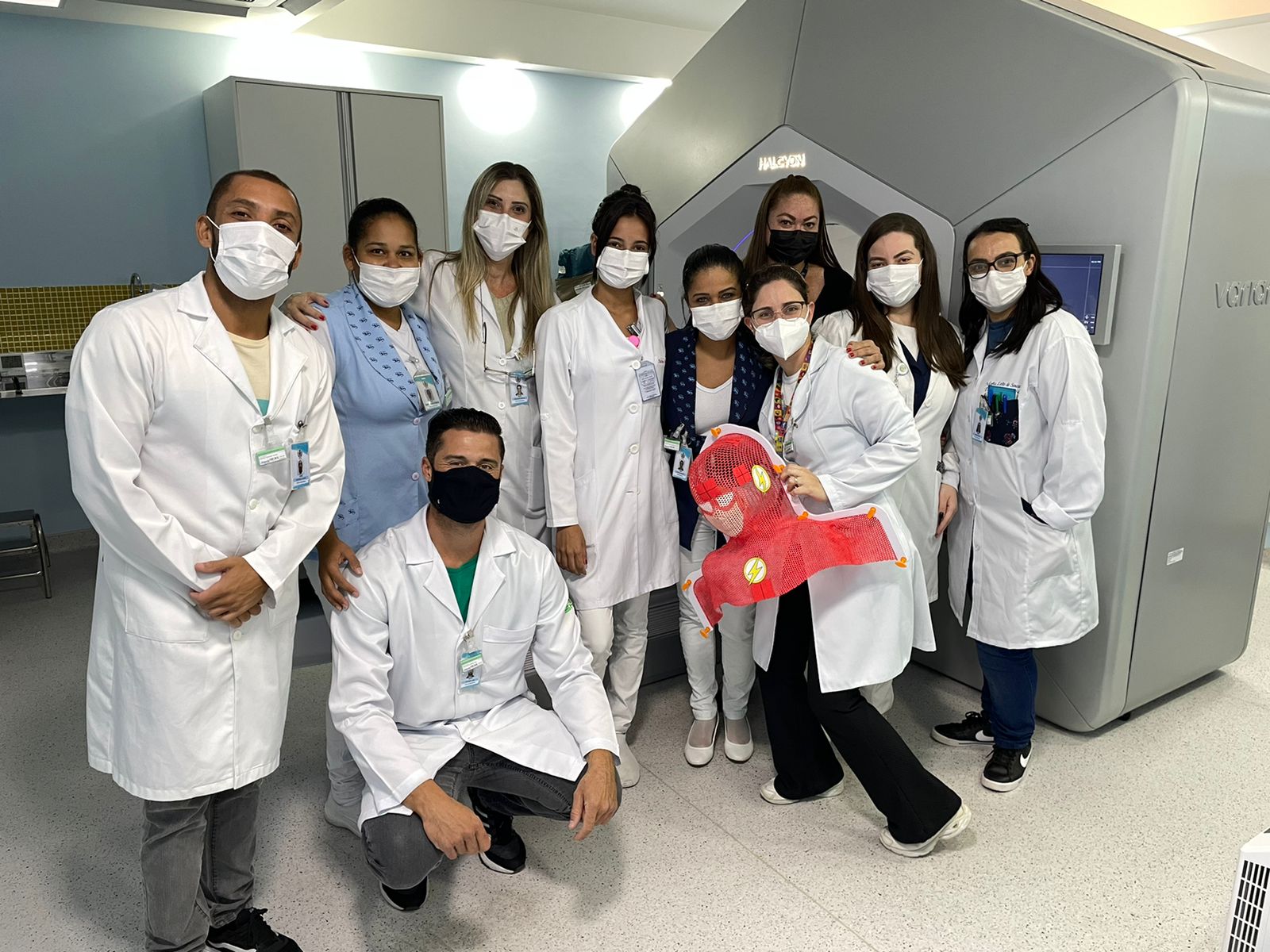 Para colocar em prática, Deborah contou com a ajuda dos colaboradores do serviço de Radioterapia, que ficaram muito entusiasmados com a ideia e se dedicaram na produção da primeira máscara pediátrica ilustrada com o “Flash”, super-herói da DC Comics.