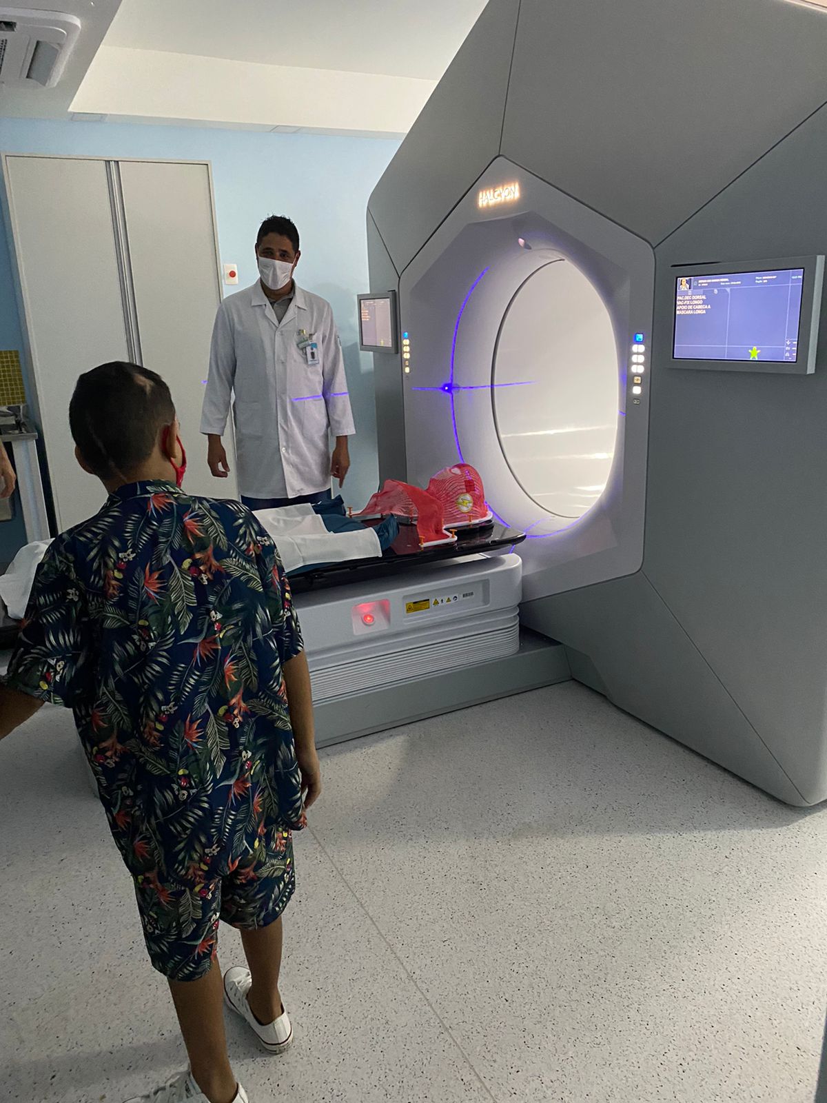 A Radioterapia Pediátrica é um dos procedimentos mais delicados do serviço e requer cuidado especial, que inclui uma simulação com envolvimento de equipe multiprofissional, formada por anestesista e oncopediatra, além de profissionais de enfermagem e de toda equipe da Radioterapia.