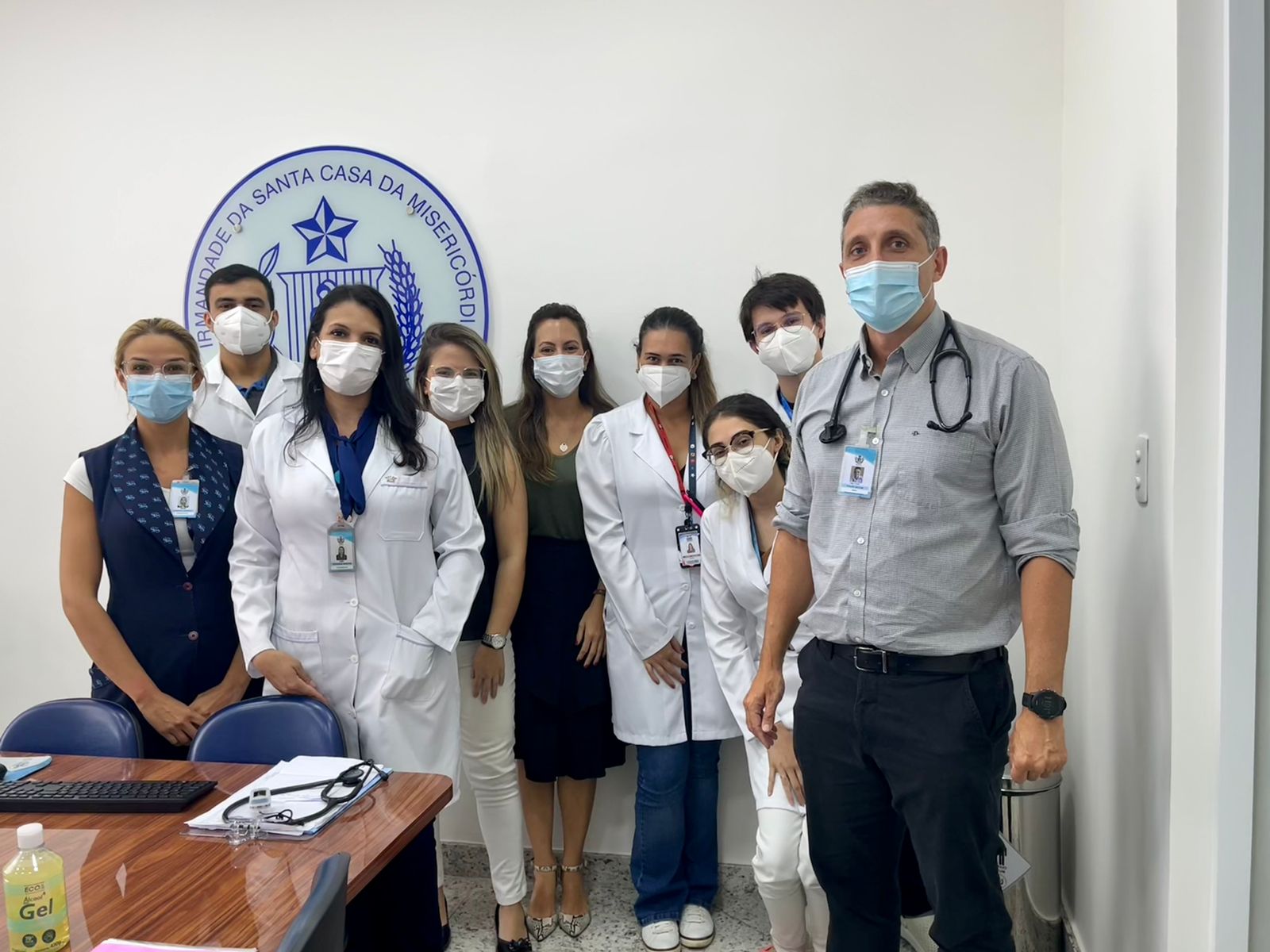 Contemplando este projeto, no dia 28/3, a Santa Casa recebeu a visita da equipe da ARO (Academic Research Organization) do Hospital Israelita Albert Einstein, representada pela Drª. Patrícia Guimarães e Lívia Cordeiro, que tem realizado pesquisas clínicas de grande relevância para a ciência. A equipe foi recebida pelo Diretor Médico e de Ensino da Santa Casa, Dr. Rogério Dedivitis, pelo Coordenador das Equipes Médicas e pesquisador responsável, Dr. Philipe Saccab, e pela Coordenadora de Pesquisas Clínicas, Fernanda Martins.