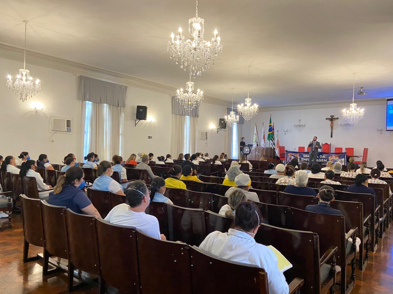 O evento “Semana de Enfermagem 2021” é uma realização da Santa Casa de Santos e apoios da Floricultura Gardênia, Stiletto Calçados, Amanda Cardoso Jóias, Design Gallery e Cine Roxy.