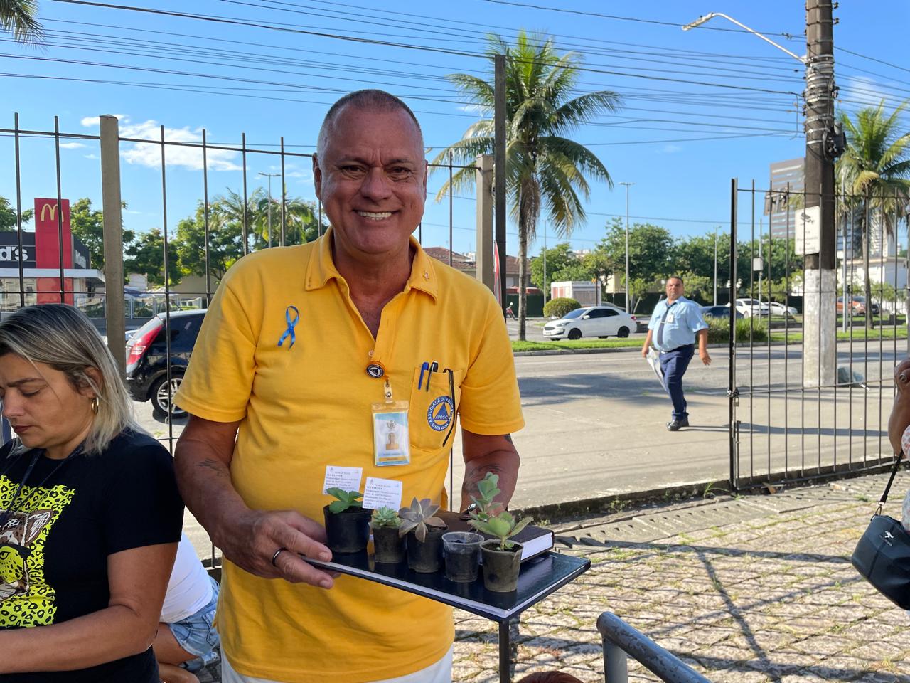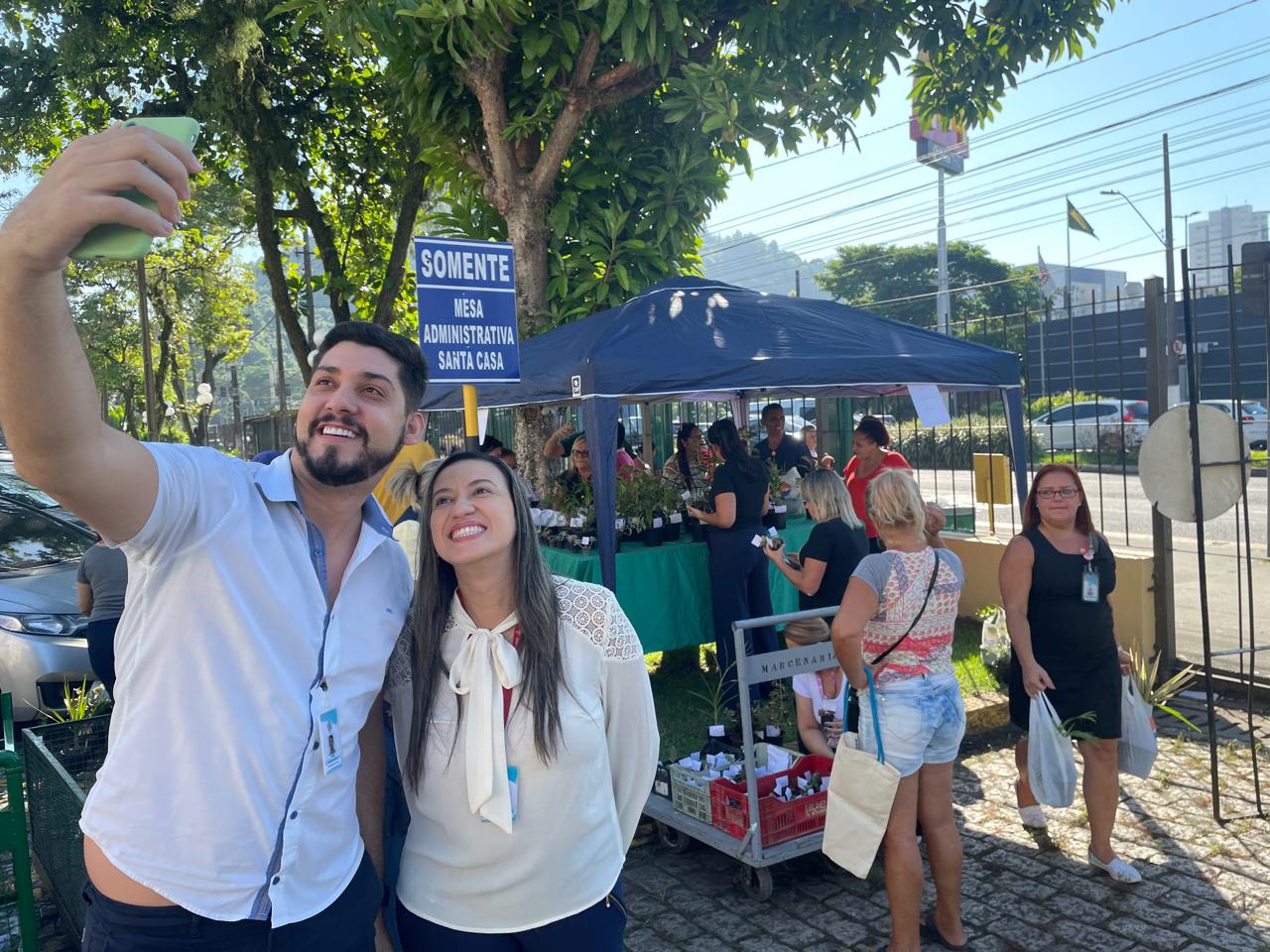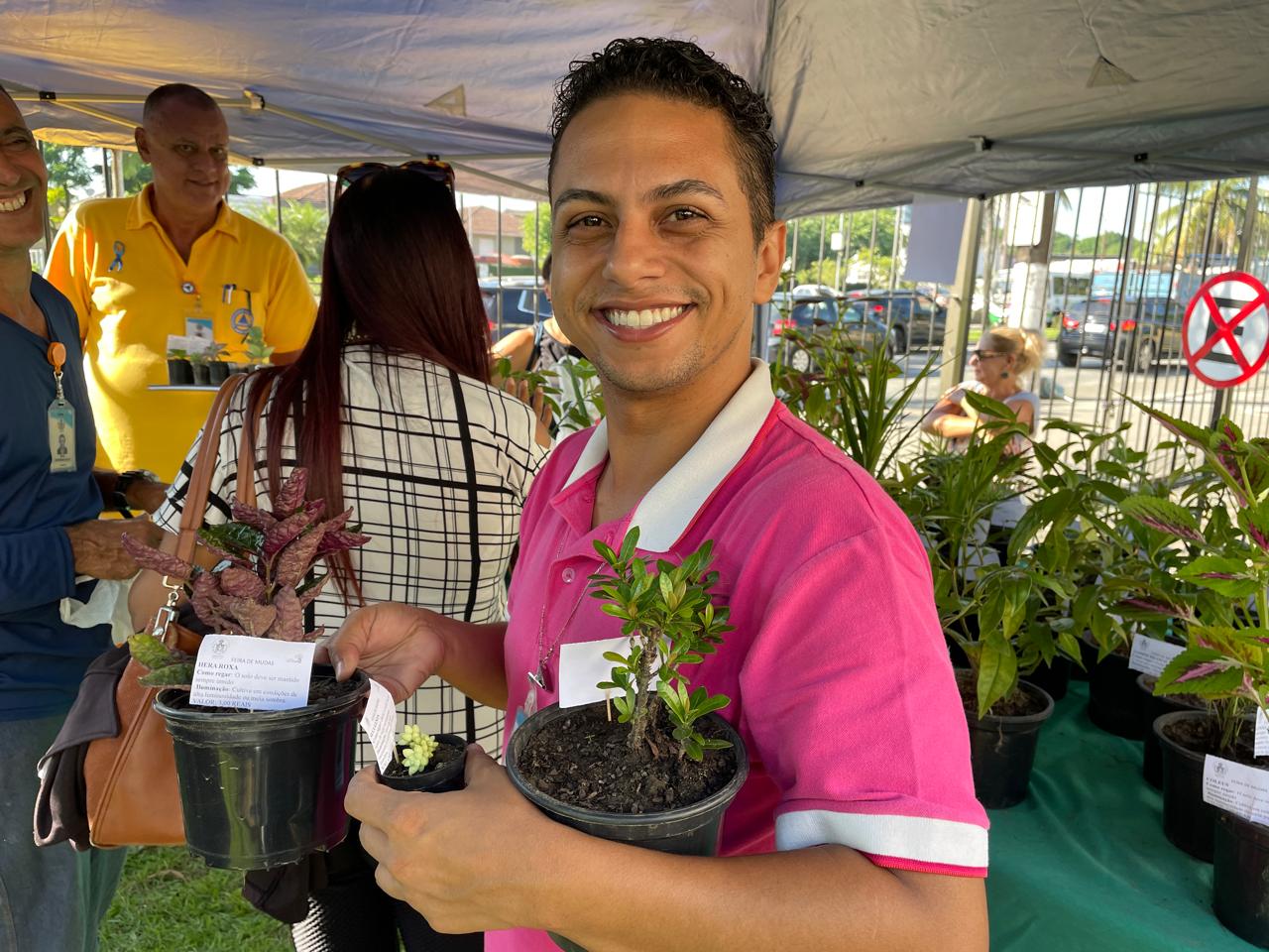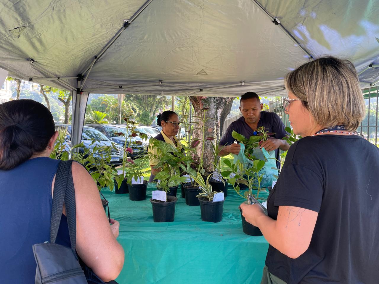 Entre os interessados em adquirir as mudas, estavam funcionários e pessoas que passavam pelo local, como pacientes e visitantes. Destaque para a enfermeira Raquel, da Central de Vagas, que não perde uma feira e sempre compra várias mudinhas.