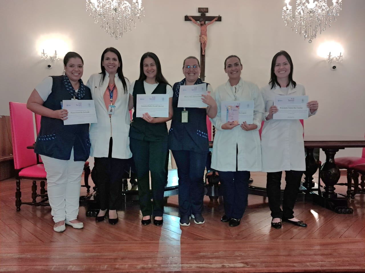 Na tarde de ontem, 16 de abril de 2025, no Consistório da Santa Casa de Santos, 87 profissionais receberam o certificado de conclusão do curso Amigo do Idoso. Este projeto, em parceria com a empresa Pfizer (Senior Heroes), iniciou há cerca de 9 meses, com 6 módulos, e capacitou equipes multiprofissionais para a linha de cuidados com os pacientes idosos.