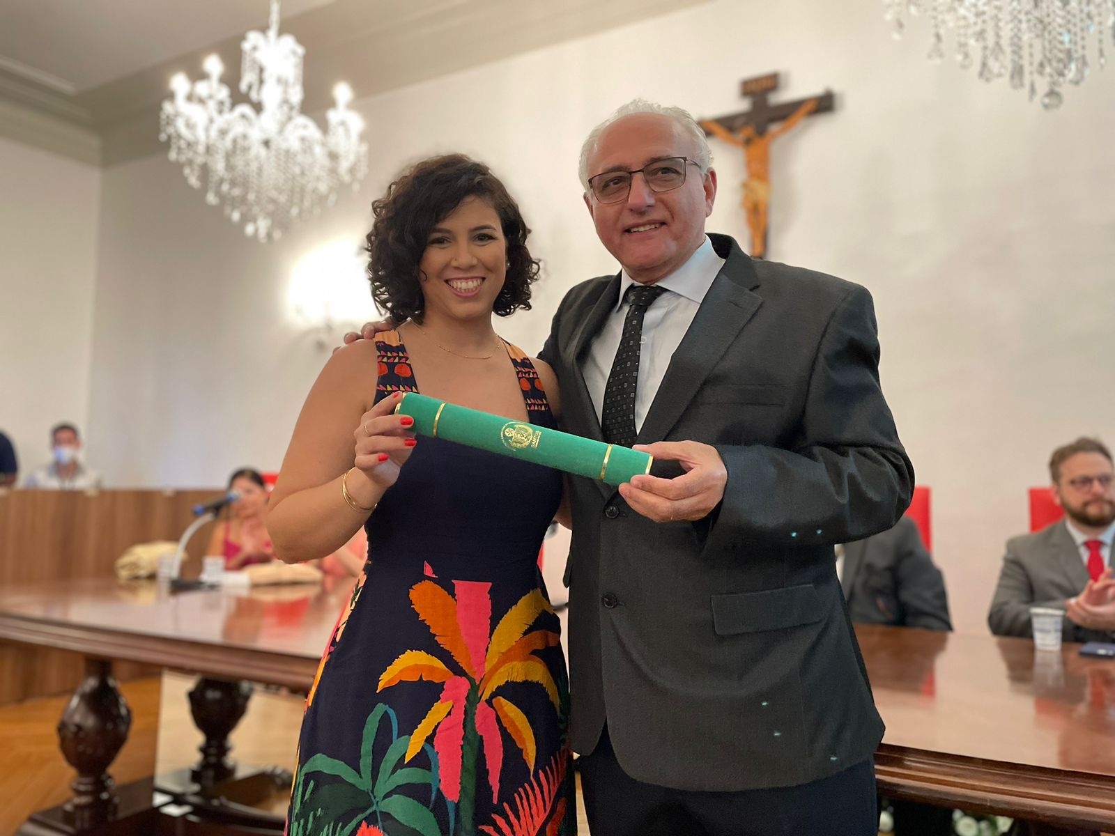 Escolhida como oradora da turma, a Drª. Carolina Yamaguchi Chaude falou em nome dos formandos e fez um discurso emocionado. Ela recordou momentos críticos da pandemia - “Compartilhamos alegrias, dividimos as tristezas, passamos noites em claro. Finalmente podemos estar todos juntos, depois dos exaustivos últimos anos numa luta incansável contra a pandemia”, declarou.