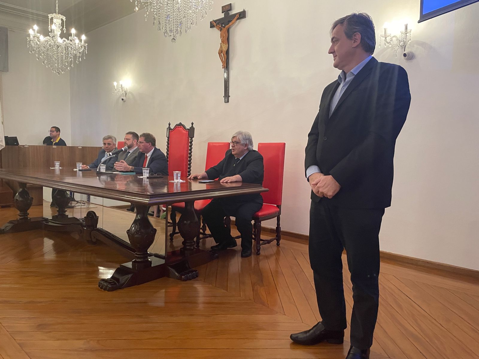 Para encerrar a cerimônia, o vice-diretor clínico Dr. Eloi Guilherme Provinciali Moccellin destacou a importância da Santa Casa para o ensino médico e formação acadêmica. O vice-diretor clínico finalizou seu discurso parabenizando os formandos e médicos preceptores.