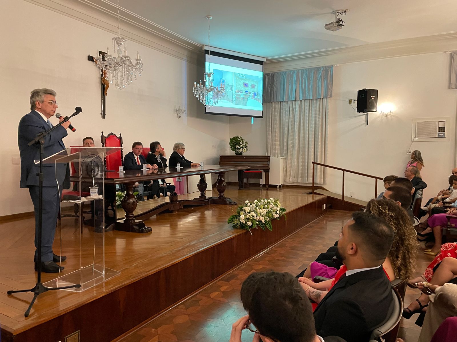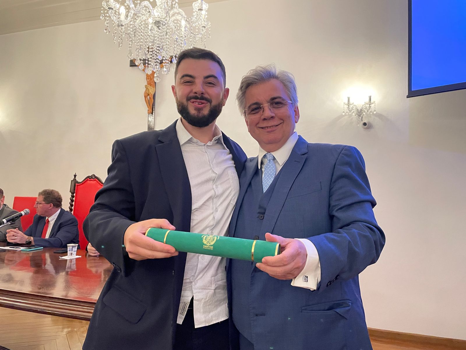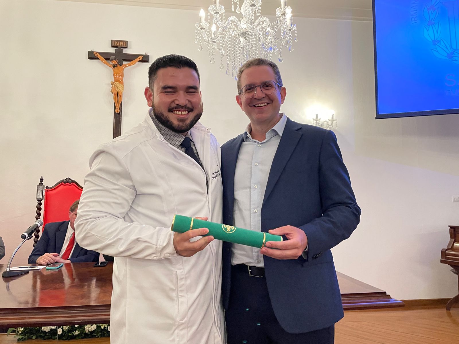 Na noite do dia 2 de fevereiro a Santa Casa de Santos realizou a Cerimônia de Formatura da turma de Residência Médica das especialidades cirúrgicas da instituição. O evento aconteceu no consistório e contou com as presenças do diretor clínico, Dr. Constantino Kader Conde, representando o provedor Ariovaldo Feliciano, do vice-diretor clínico, Dr. Eloi Guilherme Provinciali Moccellin, do coordenador da COREME, Dr. Felipe Souza Thyrso de Lara, do fundador do Centro de Estudos, Dr. Celso Schmalfuss Nogueira, e do médico convidado da cirurgia geral Dr. José Augusto Cyrineu.