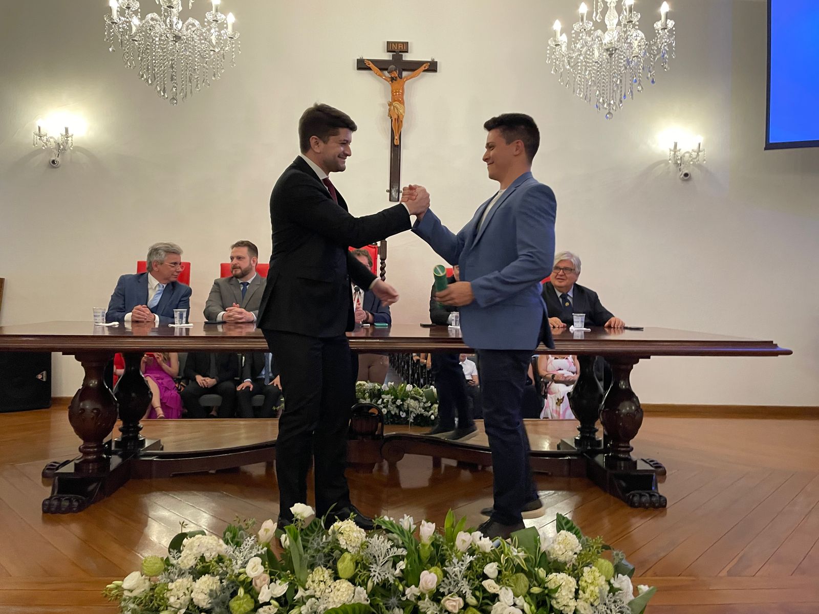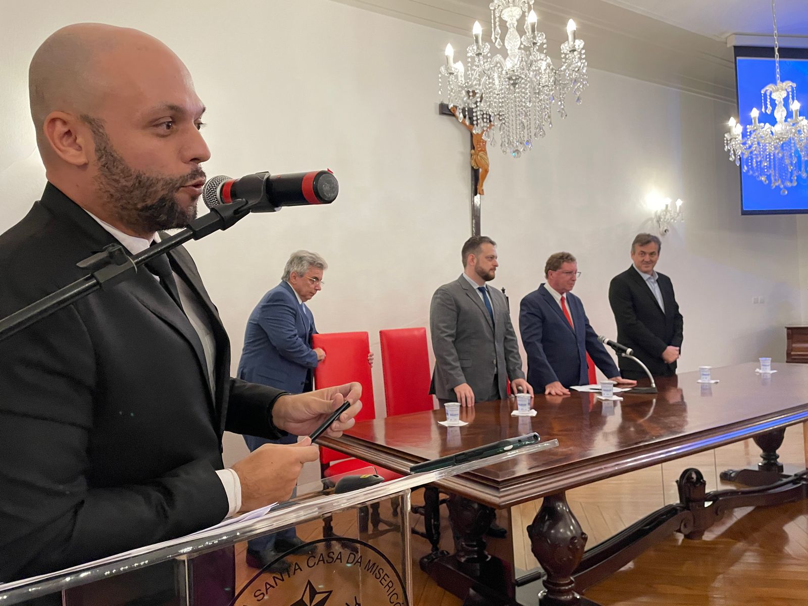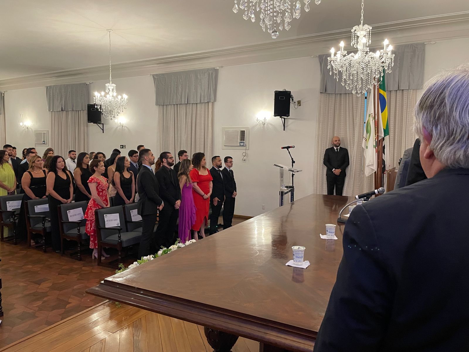 Na noite do dia 2 de fevereiro a Santa Casa de Santos realizou a Cerimônia de Formatura da turma de Residência Médica das especialidades cirúrgicas da instituição. O evento aconteceu no consistório e contou com as presenças do diretor clínico, Dr. Constantino Kader Conde, representando o provedor Ariovaldo Feliciano, do vice-diretor clínico, Dr. Eloi Guilherme Provinciali Moccellin, do coordenador da COREME, Dr. Felipe Souza Thyrso de Lara, do fundador do Centro de Estudos, Dr. Celso Schmalfuss Nogueira, e do médico convidado da cirurgia geral Dr. José Augusto Cyrineu.