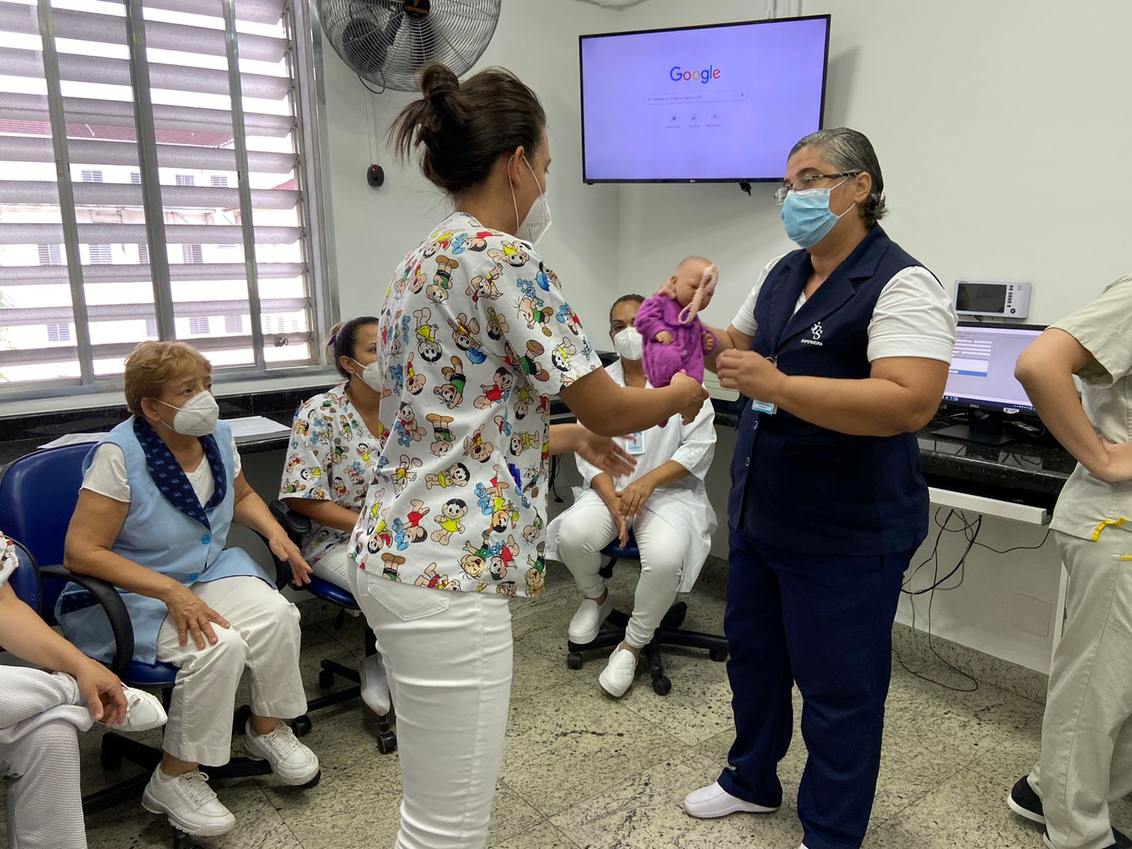 Objetivando promover a assistência de qualidade e manter a equipe de enfermagem sempre atualizada, o Serviço de Educação Continuada da Santa Casa de Santos iniciou esta semana o treinamento com a equipe da maternidade sobre as manobras de desengasgo.