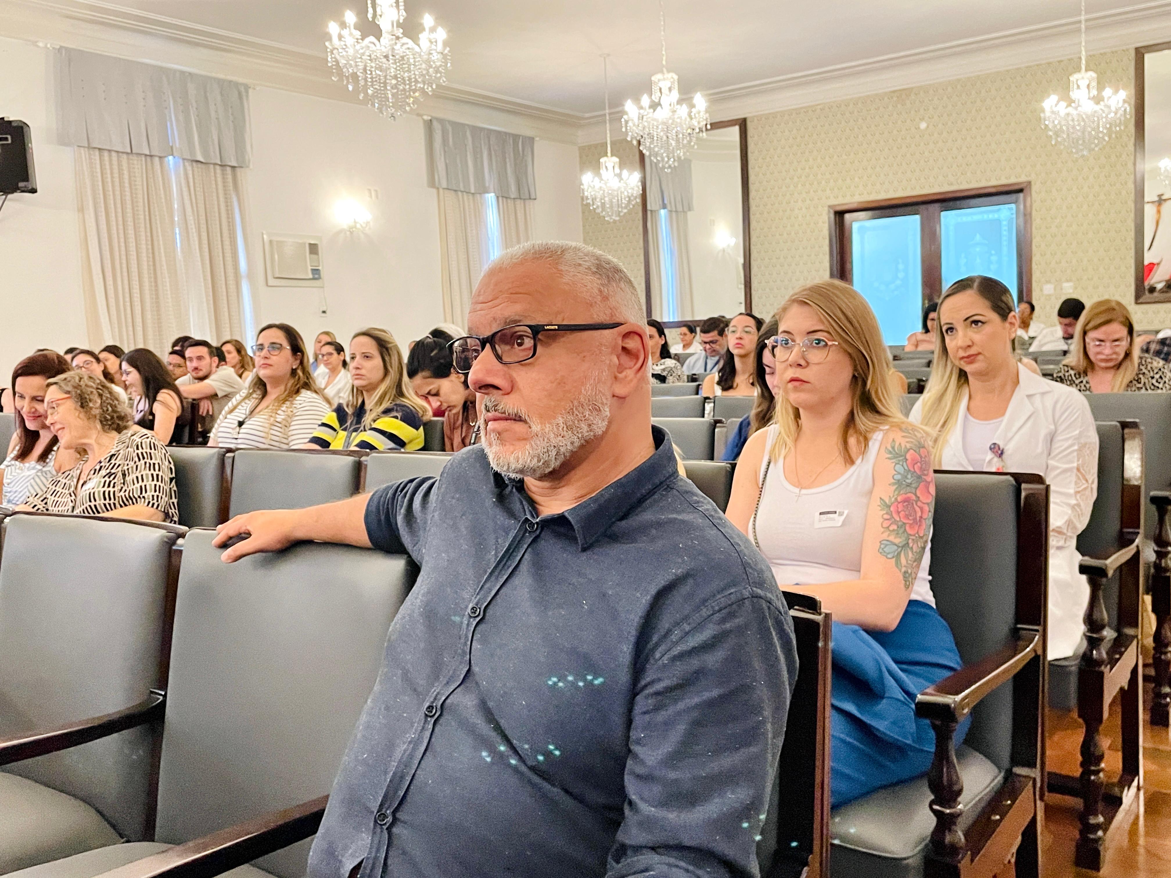 O vice provedor da Santa Casa e presidente da Câmara dos Vereadores de Santos, Carlos Teixeira Filho, fez a abertura oficial do evento e mencionou a Política Municipal de Cuidados Paliativos (Lei nº 4.465, de 11 de abril de 2024), que foi instituída a partir do Projeto de Lei Nº 89/2023 de sua autoria.