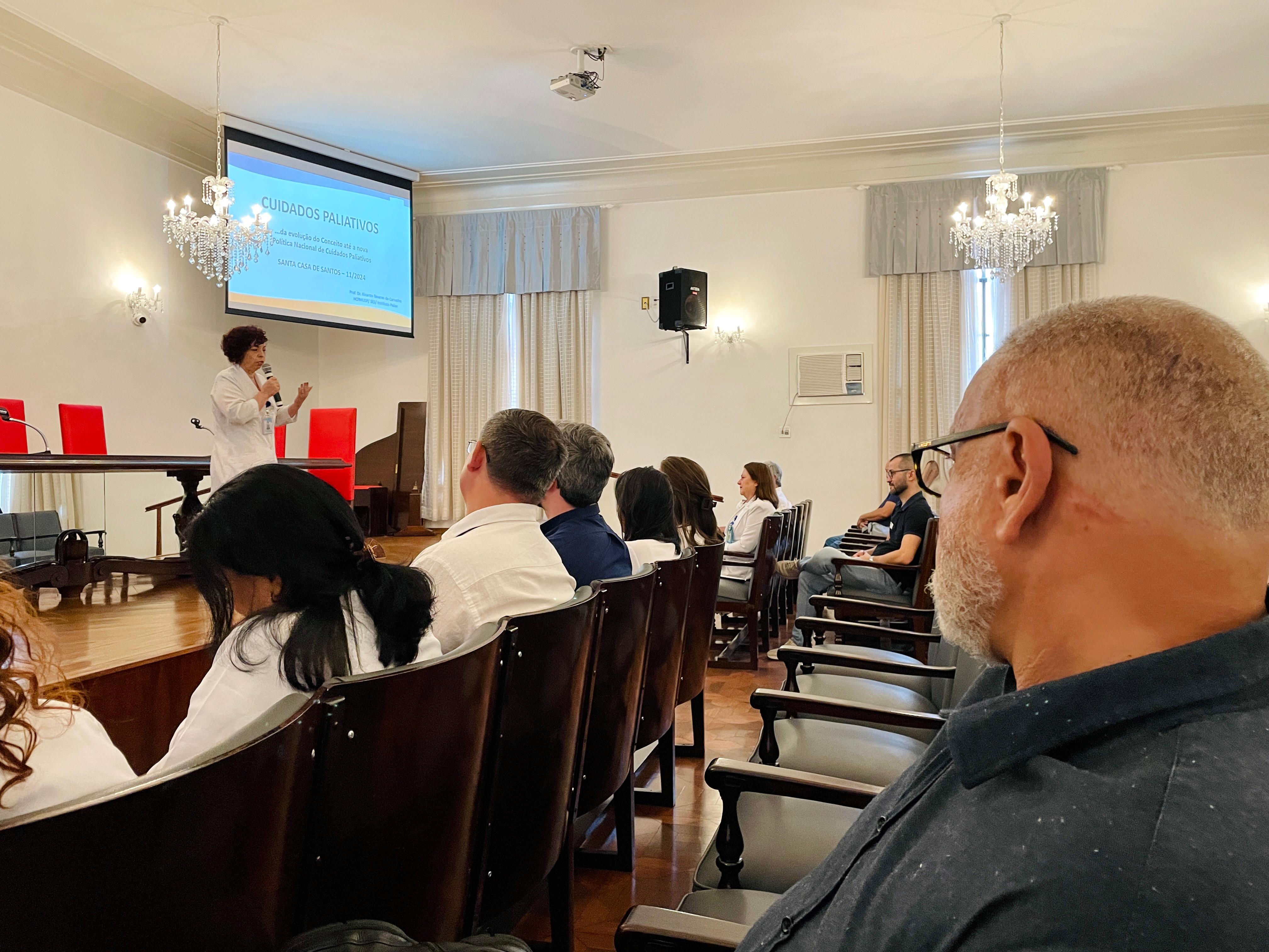 No dia 26/11, a Santa Casa de Santos recebeu o médico referência em Cuidados Paliativos, Dr. Ricardo Tavares, do Instituto Paliar e Coordenador do Núcleo de Cuidados Paliativos da HCFMUSP, para ministrar palestra sobre o tema para os profissionais de saúde da instituição.