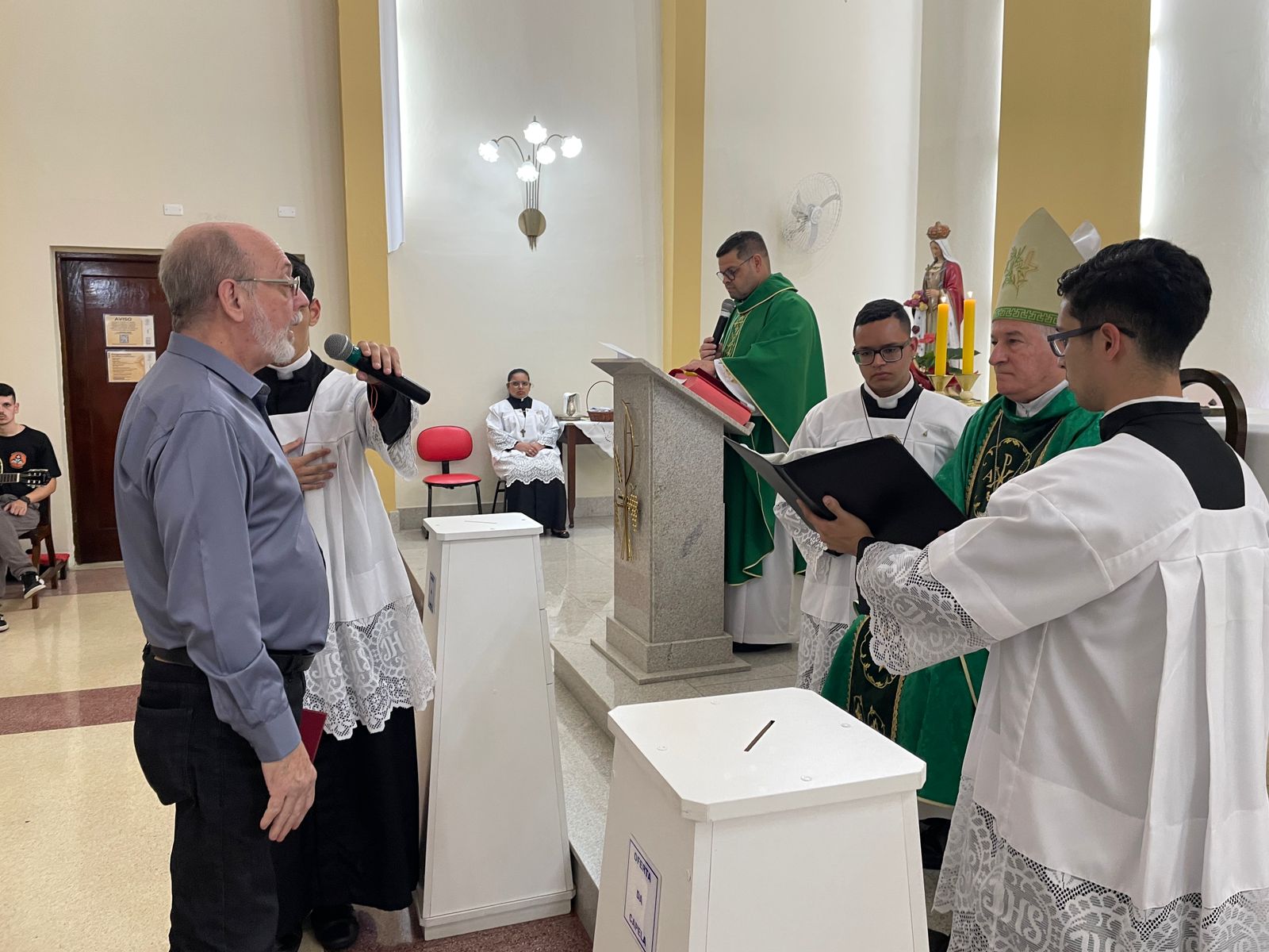 No último sábado, dia 21 de setembro, às 17 horas, a Capela Santa Isabel da Santa Casa de Santos, celebrou a Missa para o Mandato dos Ministros Extraordinários das Exéquias para o Serviço de Luto do hospital. A cerimônia foi presidida por Dom Tarcísio Scaramussa,SDB, Bispo Diocesano de Santos, ao lado do Capelão da Santa Casa, Padre Denilson. O vice provedor da Irmandade, Carlos Teixeira Filho e o Gerente de Obras e Infraestrutura, Bruno Dantas, marcaram presença.