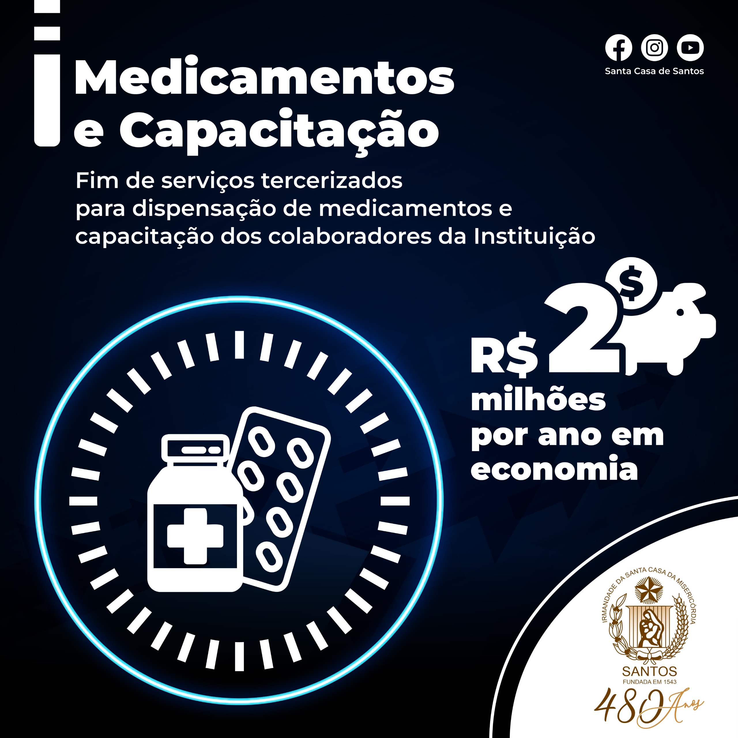 Os setores de Farmácia e Almoxarifado têm uma previsão de economia de quase R$ 2 milhões ao ano, com o fim de serviços terceirizados para dispensação de medicamentos.