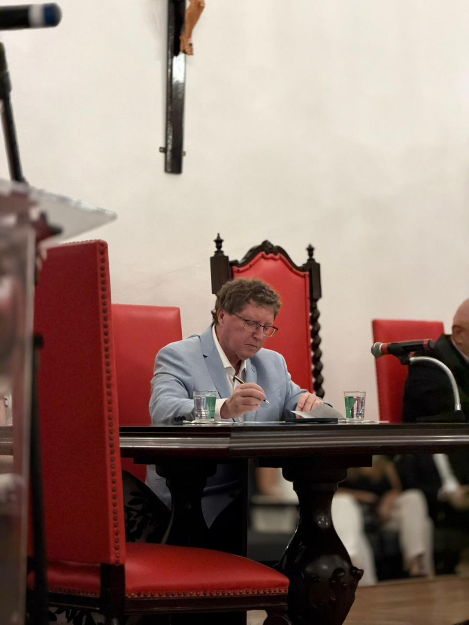 O evento aconteceu no consistório da Irmandade e contou com as presenças da Presidente da Comissão de Controle da Qualidade (CCQ), Eliana Lopes Feliciano, representando o provedor Ariovaldo Feliciano, do Diretor Clínico Dr. Constantino Kader Conde, do Diretor Técnico Dr. Alex Macedo, da Coordenadora de Desenvolvimento Estudantil da Diretoria Clínica, Dra. Rosilene Morales, do Médico Coordenador de Pesquisas, Dr. Carlos Ayres, do Coordenador da COREME Dr. Alessandro Vengjer e do Coordenador do Serviço de Neurologia Dr. Fernando Pierini.